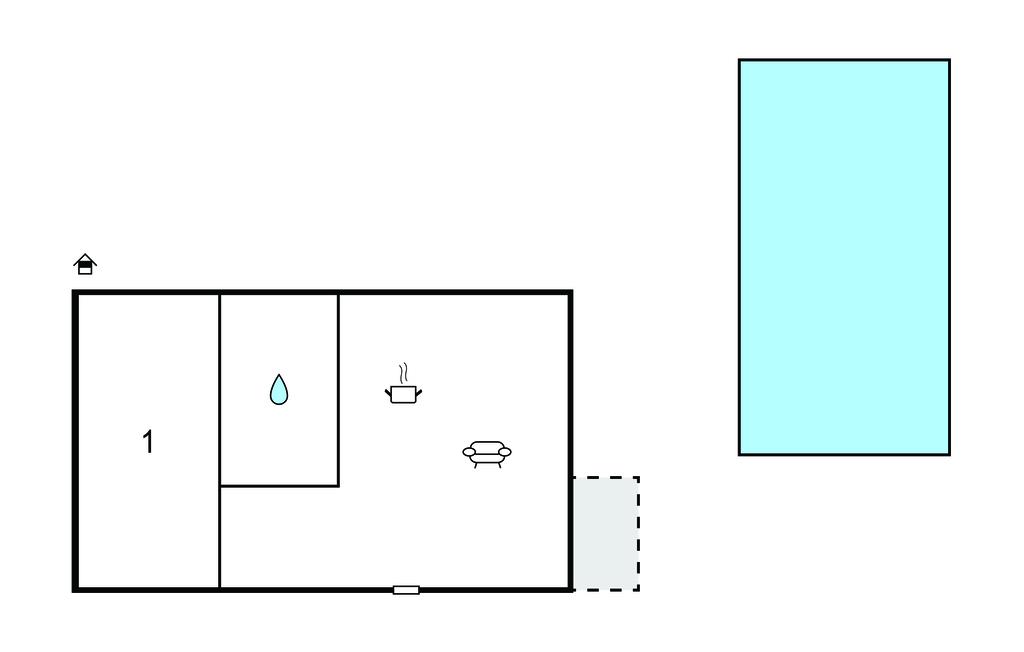 Opholdsstue/køkken 20m2 - 2 Sovepladser. (Sofa, madras eller lignende).