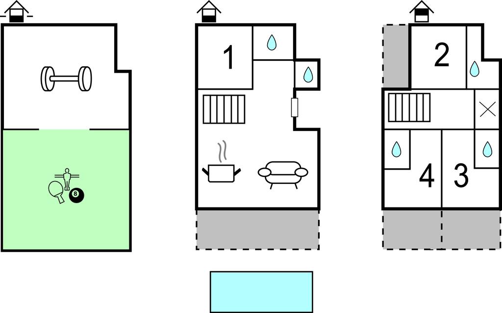 Soveværelse 17m2 (nr. 3) - 2 Sovepladser. (Dobbeltseng(e)). 1 Soveplads. (Madras).