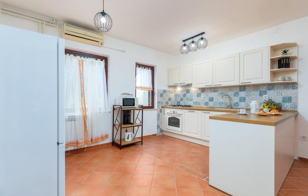 Denne ferielejlighed, i den lille by Fazana, strækker sig over hele to etager der er forbundet med indre trappe. Den er komfortabelt og enkelt indrettet og meget rummelig. I stueplan er der opholdsrum og på første sal soveværelser. Tag en tur ud til øerne og lad jer fortrylle af den uberørte og usædvanlige flora og fauna. I Fazana er der mange spisesteder og cafeer, hvor I kan smage på regionens skønne rettet og nyde den flotte udsigt ud over havet. Pula er kendt for sine mange interessante former for sommerunderholdning og sit amfiteater, hvor der bl.a. afholdes koncerter under aftenhimlens mange stjerner.