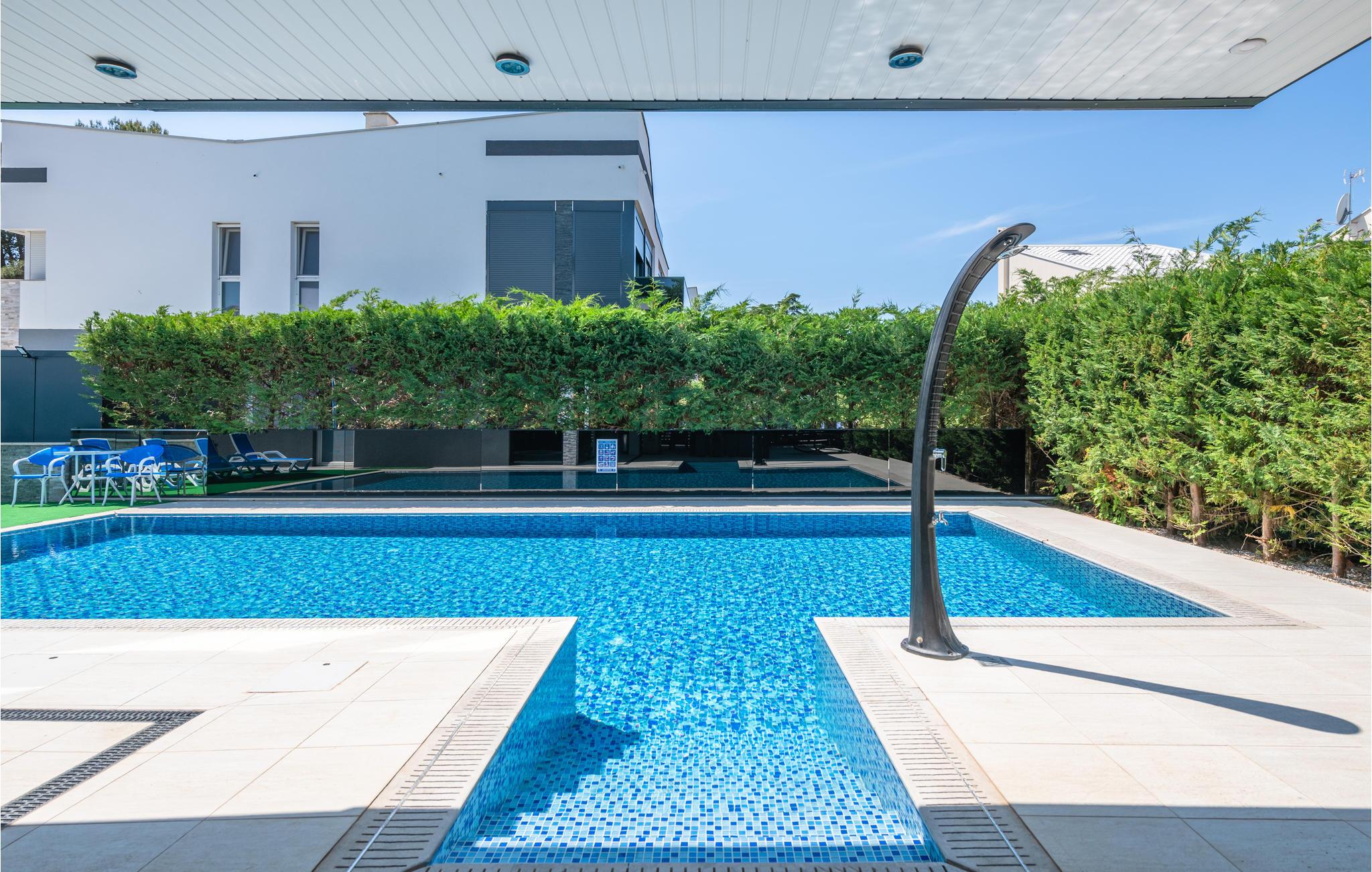 På ejendommen er der en pool med solterrasse samt terrasse med grill til behagelige sommeraftener. Gå ned til stranden, og svøm i det krystalklare hav med udsigt over Brioni-øerne lige overfor. Oplev smukke strandbarer langs kysten og gå til Fažana, hvor I finder fremragende gastronomiske tilbud.
