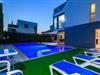 Disse ekstraordinære feriehuse i moderne stil ligger i en førsteklasses beliggenhed tæt på en kiesstrand.