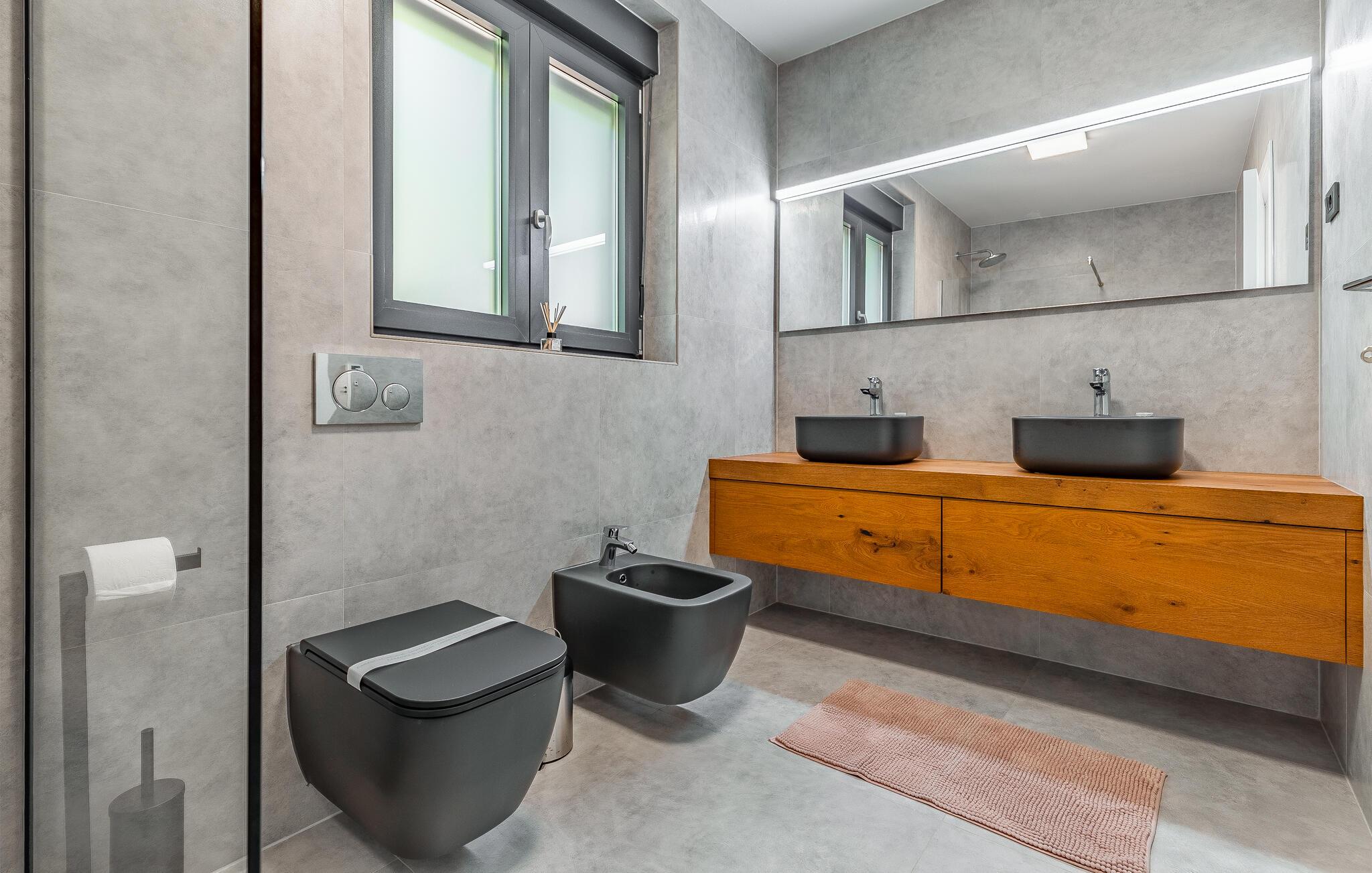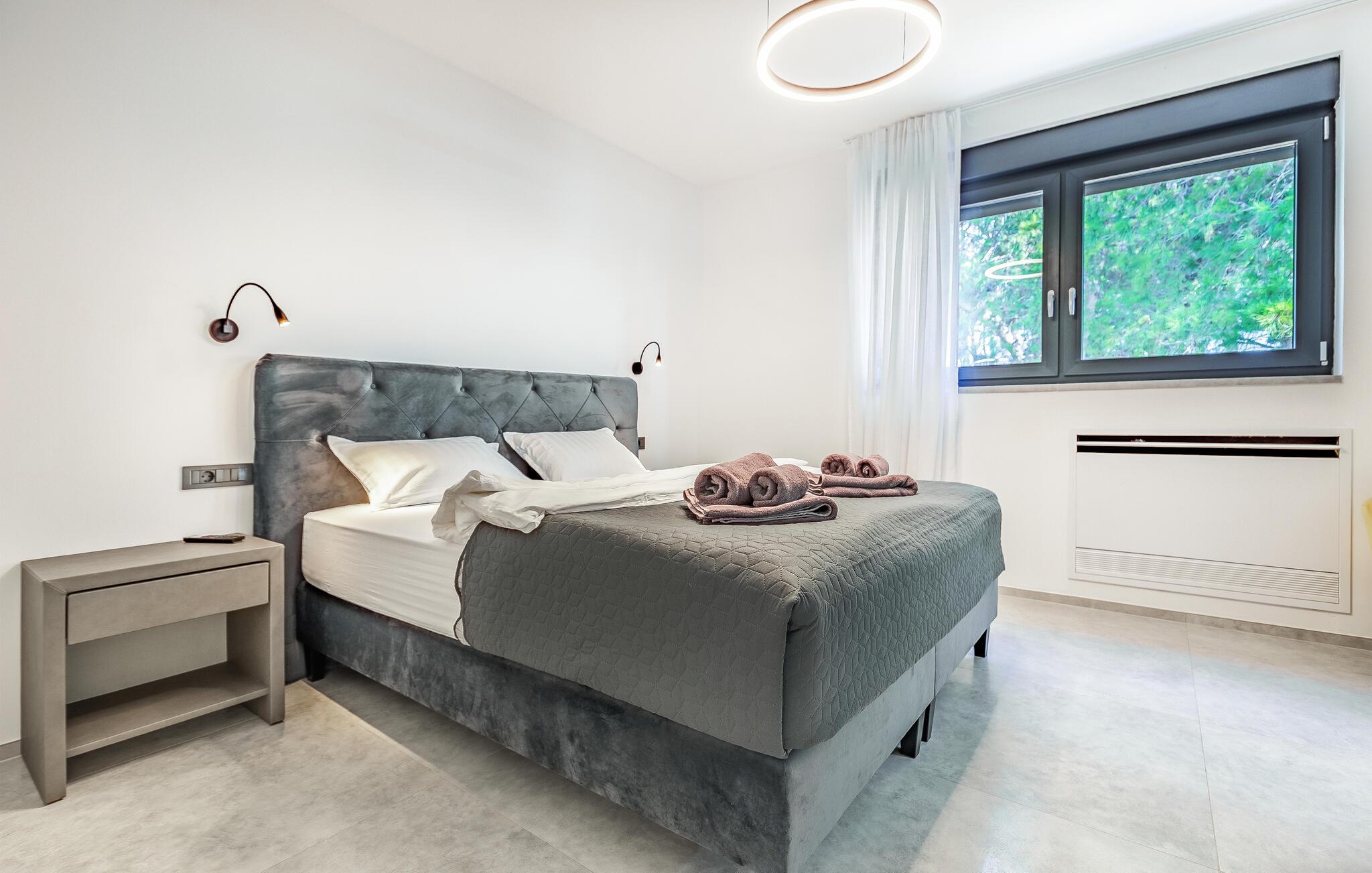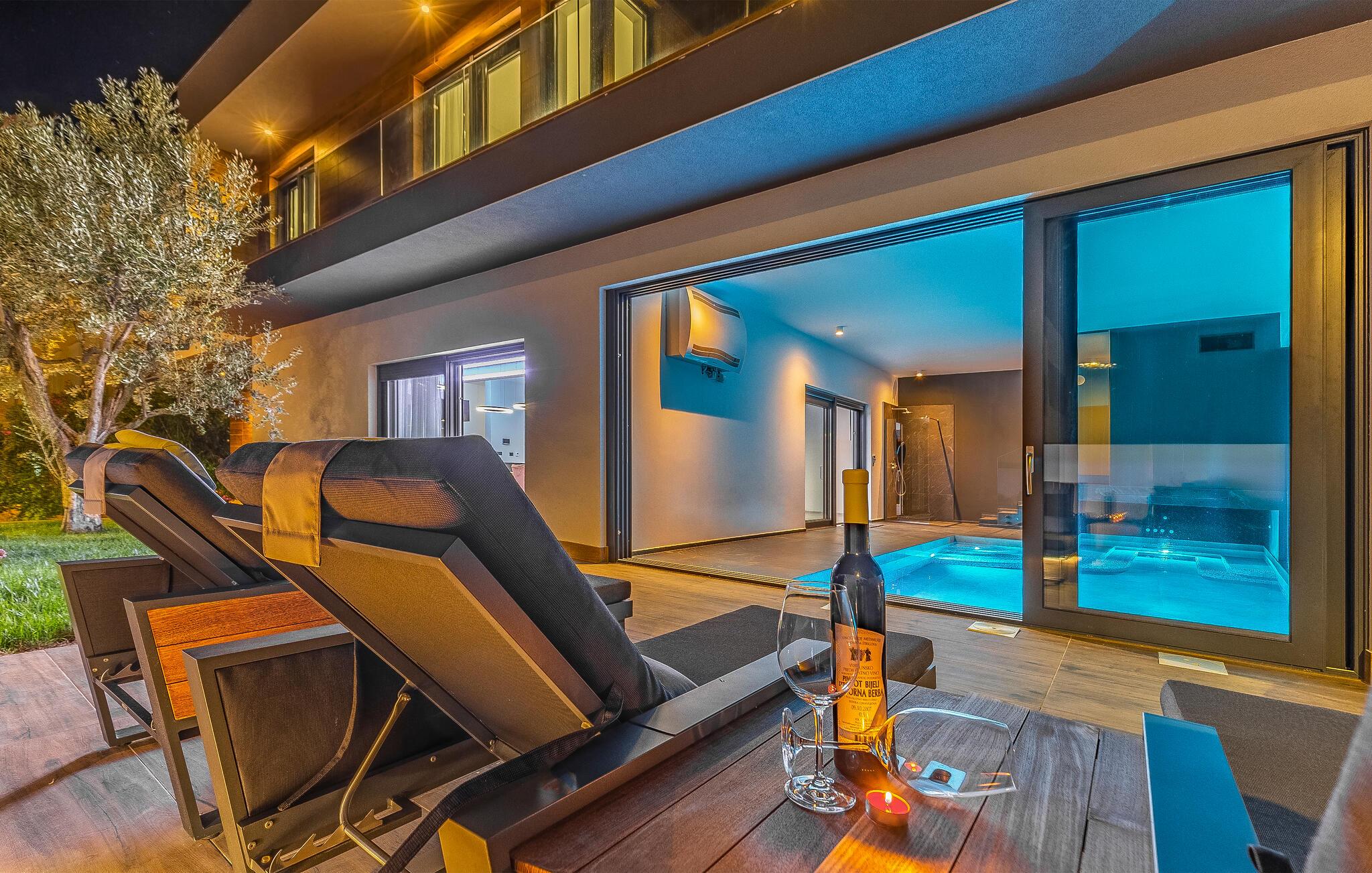 Tilbring ferien i denne luksuriøse villa i Fazana, som vil imponere jer med sit elegante design og kvalitetsløsninger. Den åbne opholdsstue i stueetagen giver jer masser af plads til tid sammen, uanset om I laver mad i det rummelige køkken eller spiller et spil billard. Ovenpå er der private soveværelser med eget badeværelse, nogle med udgang til den store terrasse, ideelt til afslappende yogaøvelser i morgensolen. Slap af i den opvarmede indendørs pool, nyd saunaen eller lounge på liggestolene på den rummelige terrasse.