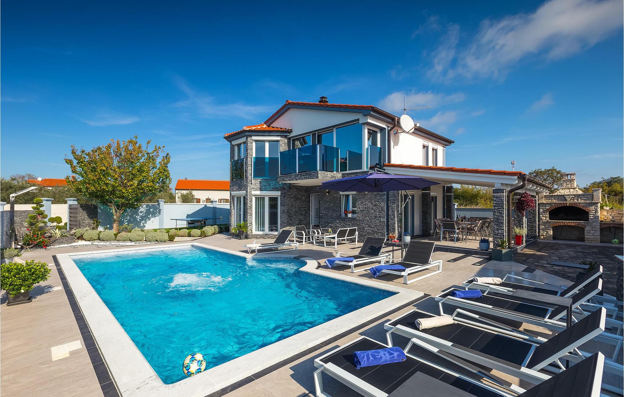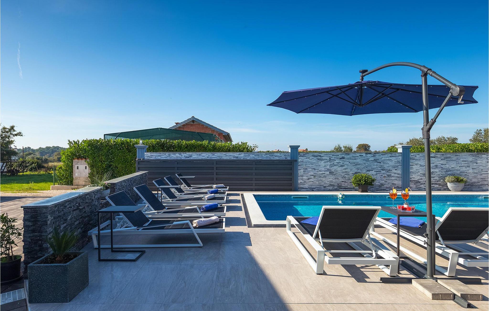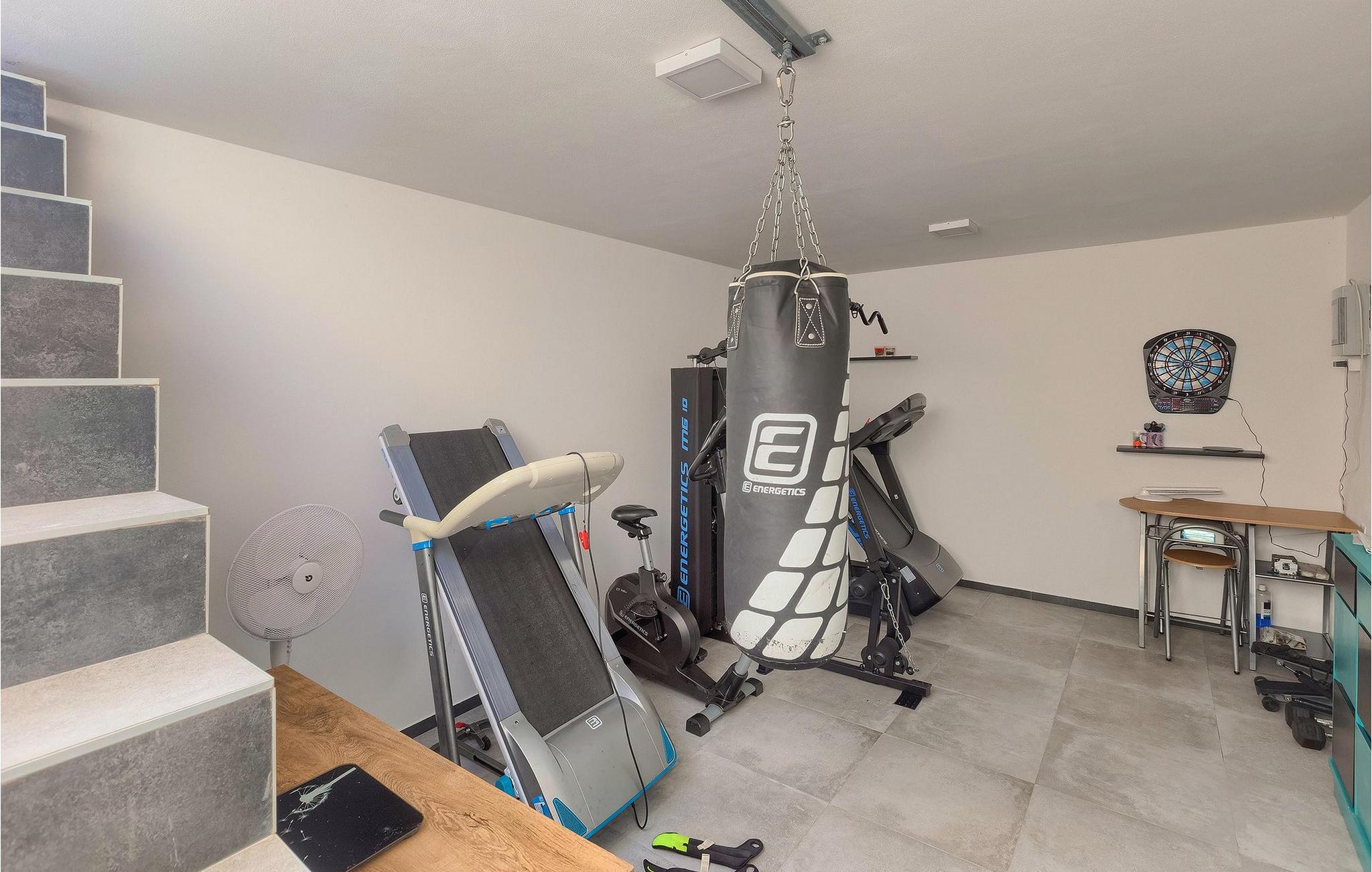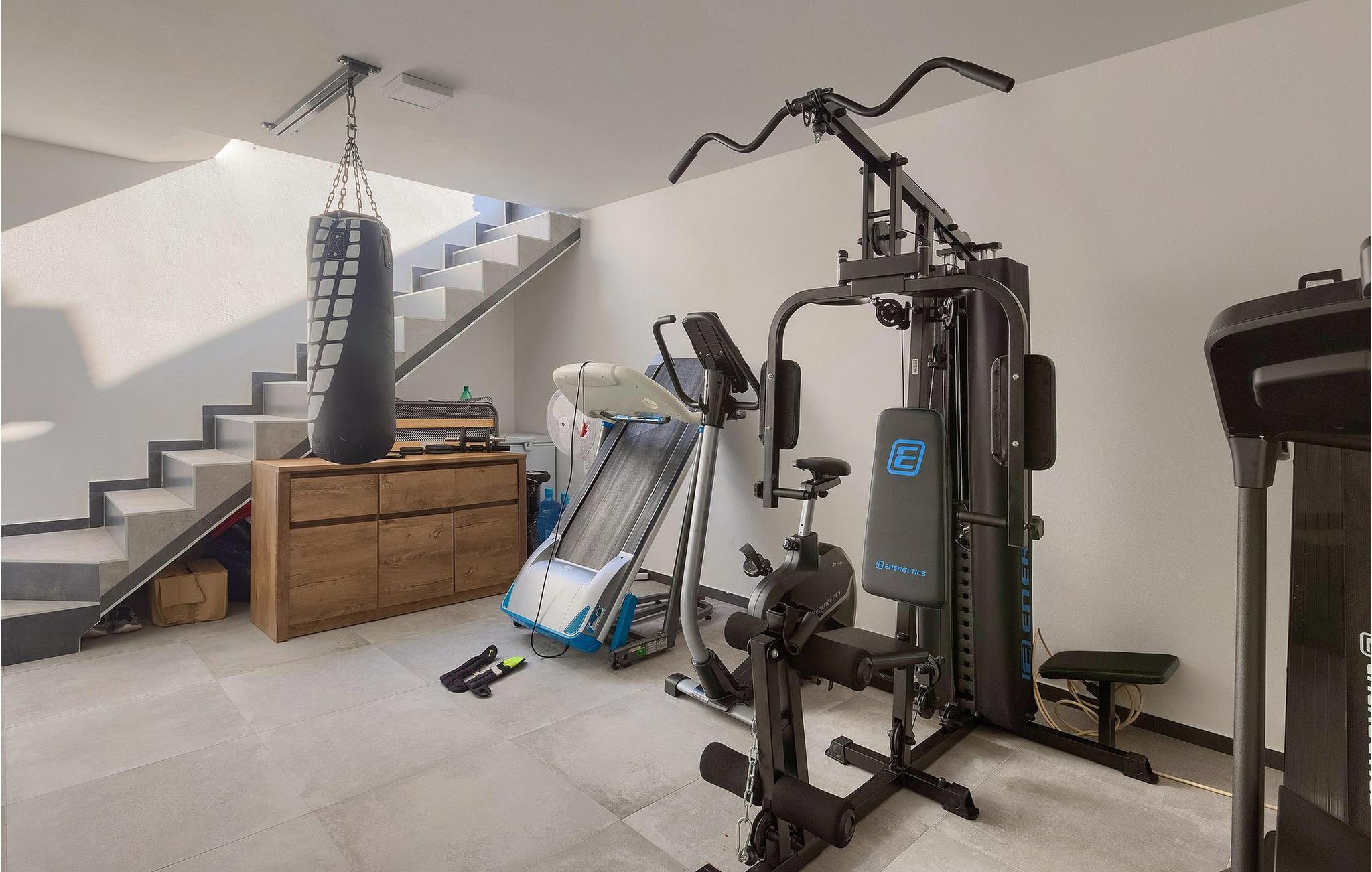 Villa Danijela er en dejlig familievilla beliggende i den lille by Fažana, ideel til en afslappende ferie tilbragt i Istrien. I alt 10 gæster kan bo i villaens 4 smagfuldt indrettede værelser fordelt på 2 etager. Villa Danijelas særlige kendetegn er, at den har to separate enheder forbundet af en udendørs trappe. Du vil være i stand til at tilbringe værdifuld familietid sammen, mens du bevarer dit privatliv på denne måde. Et soveværelse med en dobbeltseng, et med en enkeltseng, et badeværelse med bruser, en rummelig opholds- og spisestue, et fuldt udstyret køkken og adgang til villaens udendørs rum er alle placeret i stueetagen. Vi er sikre på, at du vil tilbringe det meste af din tid udenfor af forskellige årsager. Hovedsageligt på grund af Villa Danijelas topfunktioner som den 38m2 opvarmede private pool, loungeområdet med liggestole, den omhyggeligt vedligeholdte have, trampolin og bordtennis til de unge, og kulgrillområdet til at lave lækre måltider. Når det er sagt, vil gæster i alle aldre have adgang til en række faciliteter for at gøre deres dag både behagelig og afslappende. Kælderen i Villa Danijela har et par træningsartikler som en boksesæk, et løbebånd, indendørs cykler og meget mere, så ud over alt det sjove kan du holde dig aktiv, mens du er på ferie. Ved at tage trappen på bagsiden af villaen kan du få adgang til villaens første sal med soveværelse med dobbeltseng, 1 enkelt soveværelse, 1 badeværelse samt en anden hyggelig stue med køkken, spiseplads og en balkon med en dejlig udsigt. Som en af de ekstra muligheder for overnatning er der et ekstra soveværelse i en separat bygning, der kan rumme 2 gæster. Anlægget har desuden et ekstra toilet med bruser, der har egen indgang. Slap af i den dejlige have, omkring poolen, tilbered grillretter eller bare solbad, mens du er kun 800 m væk fra de første sten- og sandstrande.Villa Danijela ligger i den smukke lille by Fazana, engang en berømt fiskerby og en god start punkt for at nå øen og nationalparken Brijuni. Denne position er perfekt til at besøge turistbyer som Pula (5 km væk) og romantiske Rovinj (30 km væk). Her kan du finde adskillige begivenheder om sommeren som festivalen for sardinfisk, men Fazana tilbyder også et rigt gastronomisk tilbud med et godt udvalg af toprestauranter og taverner ved kysten, der byder på kulinariske lækkerier fra Adriaterhavets middelhavskøkken. Pula blev bygget af romerne i 46 f.Kr. Selvom det er som et friluftsmuseum, er det største monument, du ikke bør gå glip af at besøge, det berømte amfiteater i byens centrum, bygget i det 1. århundrede. Amfiteatret er stadig hjemsted for mange begivenheder fra koncerter, filmvisninger til sportssammenkomster.