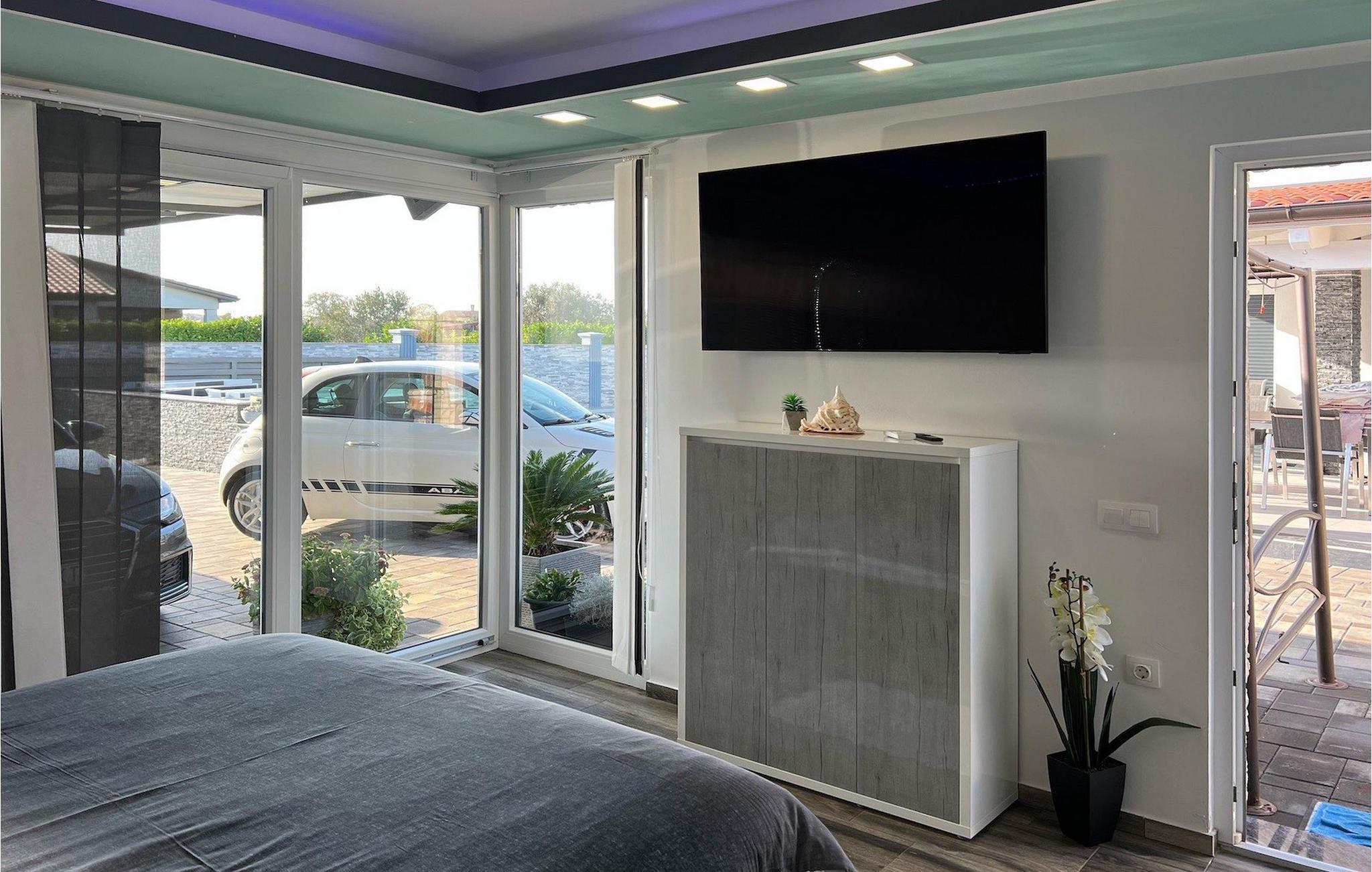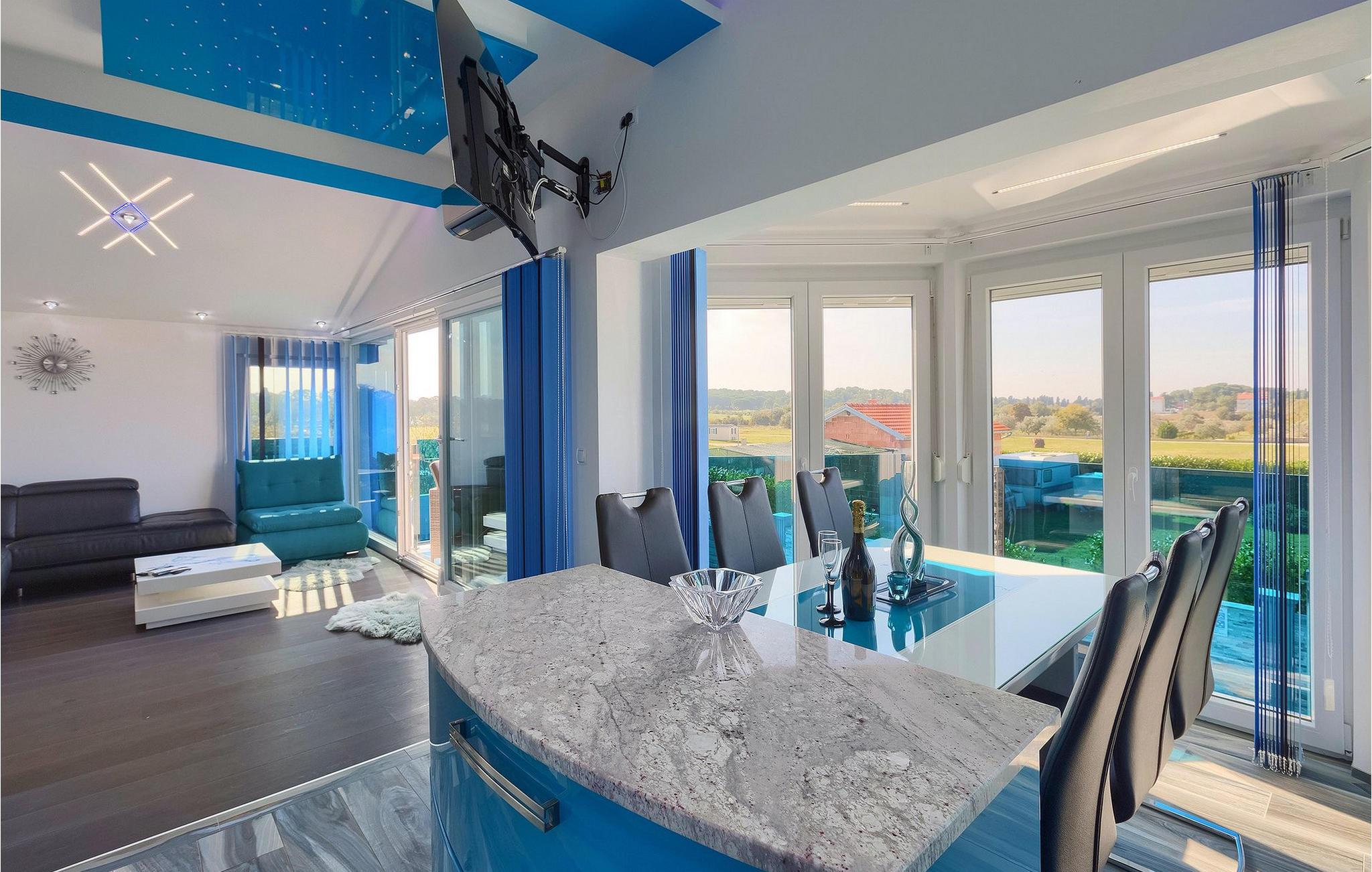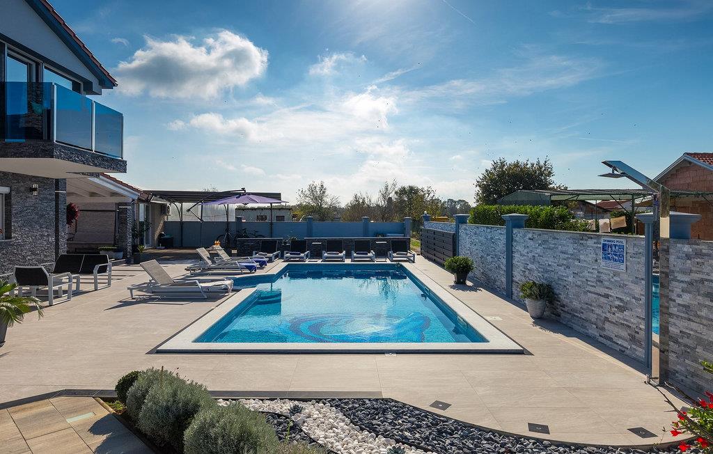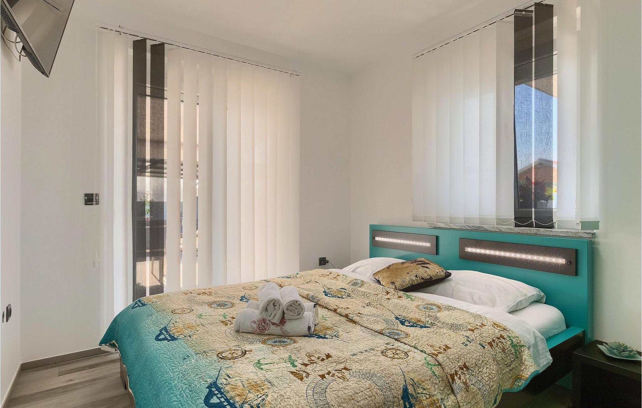 Villa Danijela er en dejlig familievilla beliggende i den lille by Fažana, ideel til en afslappende ferie tilbragt i Istrien. I alt 10 gæster kan bo i villaens 4 smagfuldt indrettede værelser fordelt på 2 etager. Villa Danijelas særlige kendetegn er, at den har to separate enheder forbundet af en udendørs trappe. Du vil være i stand til at tilbringe værdifuld familietid sammen, mens du bevarer dit privatliv på denne måde. Et soveværelse med en dobbeltseng, et med en enkeltseng, et badeværelse med bruser, en rummelig opholds- og spisestue, et fuldt udstyret køkken og adgang til villaens udendørs rum er alle placeret i stueetagen. Vi er sikre på, at du vil tilbringe det meste af din tid udenfor af forskellige årsager. Hovedsageligt på grund af Villa Danijelas topfunktioner som den 38m2 opvarmede private pool, loungeområdet med liggestole, den omhyggeligt vedligeholdte have, trampolin og bordtennis til de unge, og kulgrillområdet til at lave lækre måltider. Når det er sagt, vil gæster i alle aldre have adgang til en række faciliteter for at gøre deres dag både behagelig og afslappende. Kælderen i Villa Danijela har et par træningsartikler som en boksesæk, et løbebånd, indendørs cykler og meget mere, så ud over alt det sjove kan du holde dig aktiv, mens du er på ferie. Ved at tage trappen på bagsiden af villaen kan du få adgang til villaens første sal med soveværelse med dobbeltseng, 1 enkelt soveværelse, 1 badeværelse samt en anden hyggelig stue med køkken, spiseplads og en balkon med en dejlig udsigt. Som en af de ekstra muligheder for overnatning er der et ekstra soveværelse i en separat bygning, der kan rumme 2 gæster. Anlægget har desuden et ekstra toilet med bruser, der har egen indgang. Slap af i den dejlige have, omkring poolen, tilbered grillretter eller bare solbad, mens du er kun 800 m væk fra de første sten- og sandstrande.Villa Danijela ligger i den smukke lille by Fazana, engang en berømt fiskerby og en god start punkt for at nå øen og nationalparken Brijuni. Denne position er perfekt til at besøge turistbyer som Pula (5 km væk) og romantiske Rovinj (30 km væk). Her kan du finde adskillige begivenheder om sommeren som festivalen for sardinfisk, men Fazana tilbyder også et rigt gastronomisk tilbud med et godt udvalg af toprestauranter og taverner ved kysten, der byder på kulinariske lækkerier fra Adriaterhavets middelhavskøkken. Pula blev bygget af romerne i 46 f.Kr. Selvom det er som et friluftsmuseum, er det største monument, du ikke bør gå glip af at besøge, det berømte amfiteater i byens centrum, bygget i det 1. århundrede. Amfiteatret er stadig hjemsted for mange begivenheder fra koncerter, filmvisninger til sportssammenkomster.