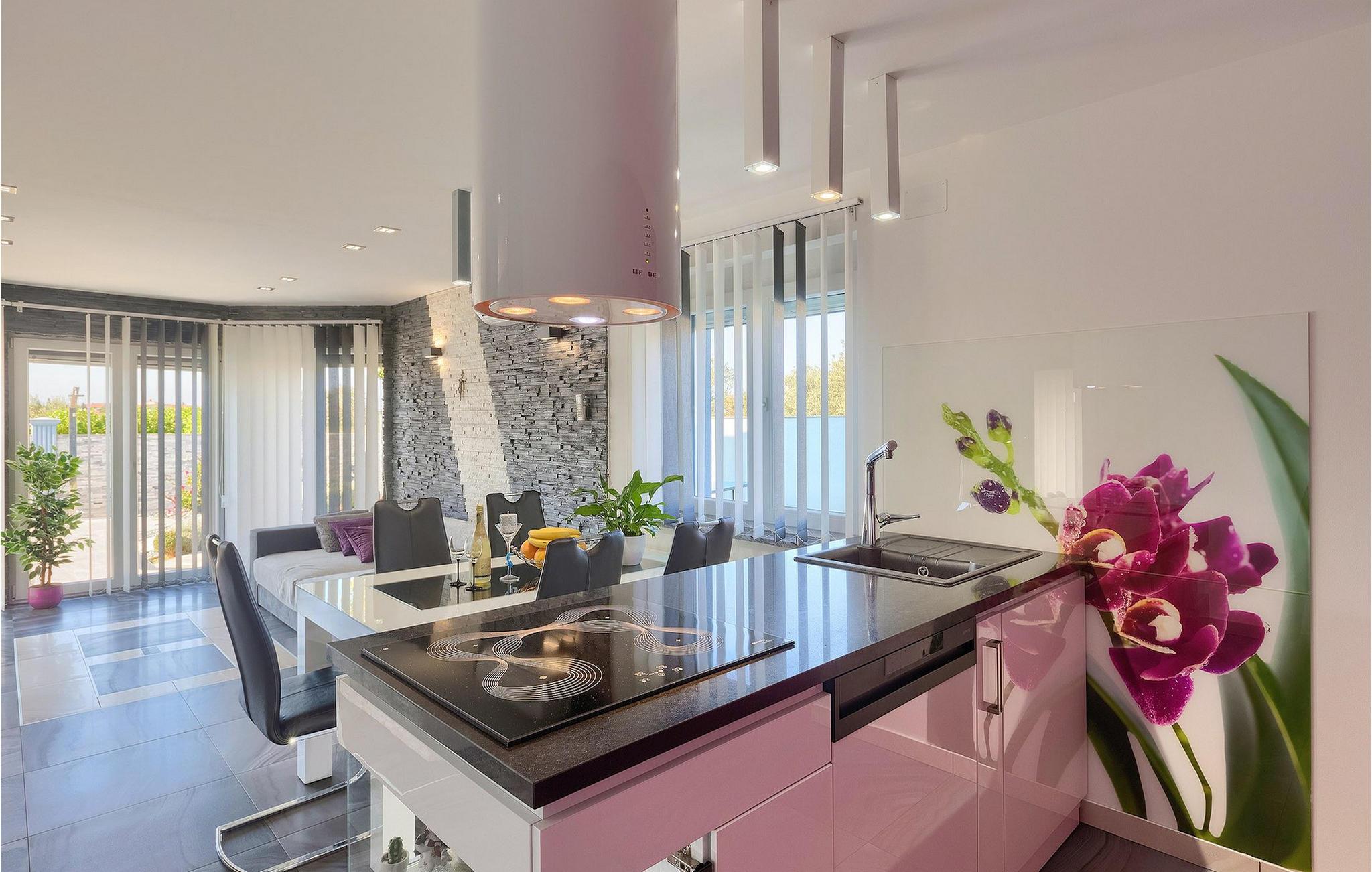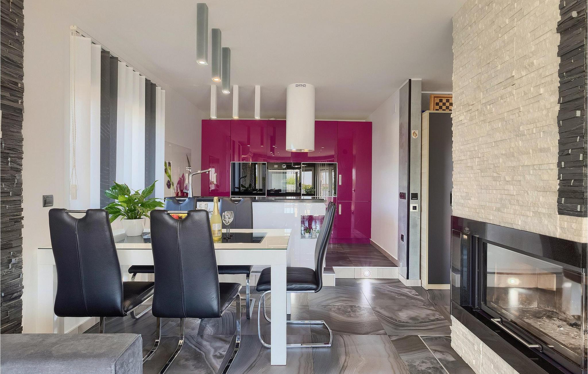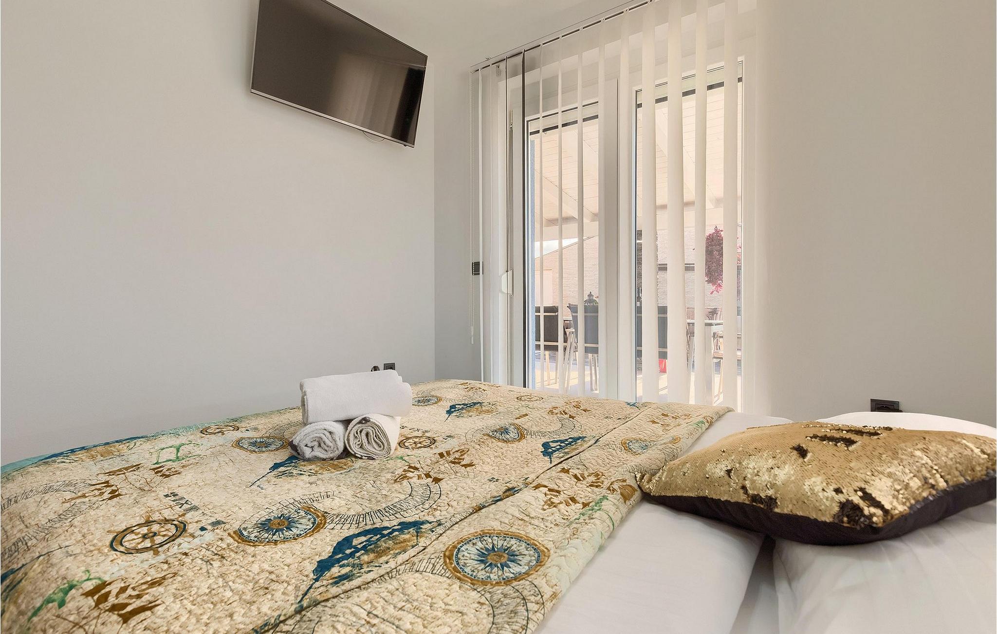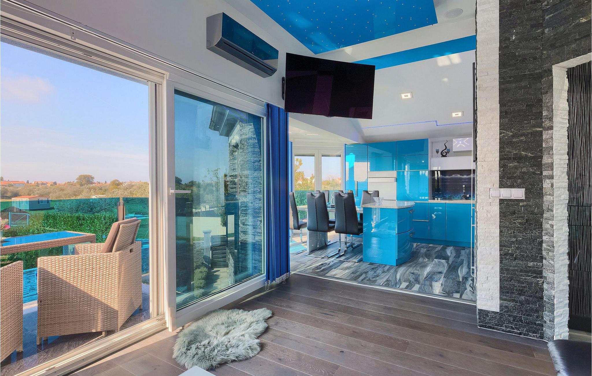 Villa Danijela er en dejlig familievilla beliggende i den lille by Fažana, ideel til en afslappende ferie tilbragt i Istrien. I alt 10 gæster kan bo i villaens 4 smagfuldt indrettede værelser fordelt på 2 etager. Villa Danijelas særlige kendetegn er, at den har to separate enheder forbundet af en udendørs trappe. Du vil være i stand til at tilbringe værdifuld familietid sammen, mens du bevarer dit privatliv på denne måde. Et soveværelse med en dobbeltseng, et med en enkeltseng, et badeværelse med bruser, en rummelig opholds- og spisestue, et fuldt udstyret køkken og adgang til villaens udendørs rum er alle placeret i stueetagen. Vi er sikre på, at du vil tilbringe det meste af din tid udenfor af forskellige årsager. Hovedsageligt på grund af Villa Danijelas topfunktioner som den 38m2 opvarmede private pool, loungeområdet med liggestole, den omhyggeligt vedligeholdte have, trampolin og bordtennis til de unge, og kulgrillområdet til at lave lækre måltider. Når det er sagt, vil gæster i alle aldre have adgang til en række faciliteter for at gøre deres dag både behagelig og afslappende. Kælderen i Villa Danijela har et par træningsartikler som en boksesæk, et løbebånd, indendørs cykler og meget mere, så ud over alt det sjove kan du holde dig aktiv, mens du er på ferie. Ved at tage trappen på bagsiden af villaen kan du få adgang til villaens første sal med soveværelse med dobbeltseng, 1 enkelt soveværelse, 1 badeværelse samt en anden hyggelig stue med køkken, spiseplads og en balkon med en dejlig udsigt. Som en af de ekstra muligheder for overnatning er der et ekstra soveværelse i en separat bygning, der kan rumme 2 gæster. Anlægget har desuden et ekstra toilet med bruser, der har egen indgang. Slap af i den dejlige have, omkring poolen, tilbered grillretter eller bare solbad, mens du er kun 800 m væk fra de første sten- og sandstrande.Villa Danijela ligger i den smukke lille by Fazana, engang en berømt fiskerby og en god start punkt for at nå øen og nationalparken Brijuni. Denne position er perfekt til at besøge turistbyer som Pula (5 km væk) og romantiske Rovinj (30 km væk). Her kan du finde adskillige begivenheder om sommeren som festivalen for sardinfisk, men Fazana tilbyder også et rigt gastronomisk tilbud med et godt udvalg af toprestauranter og taverner ved kysten, der byder på kulinariske lækkerier fra Adriaterhavets middelhavskøkken. Pula blev bygget af romerne i 46 f.Kr. Selvom det er som et friluftsmuseum, er det største monument, du ikke bør gå glip af at besøge, det berømte amfiteater i byens centrum, bygget i det 1. århundrede. Amfiteatret er stadig hjemsted for mange begivenheder fra koncerter, filmvisninger til sportssammenkomster.
