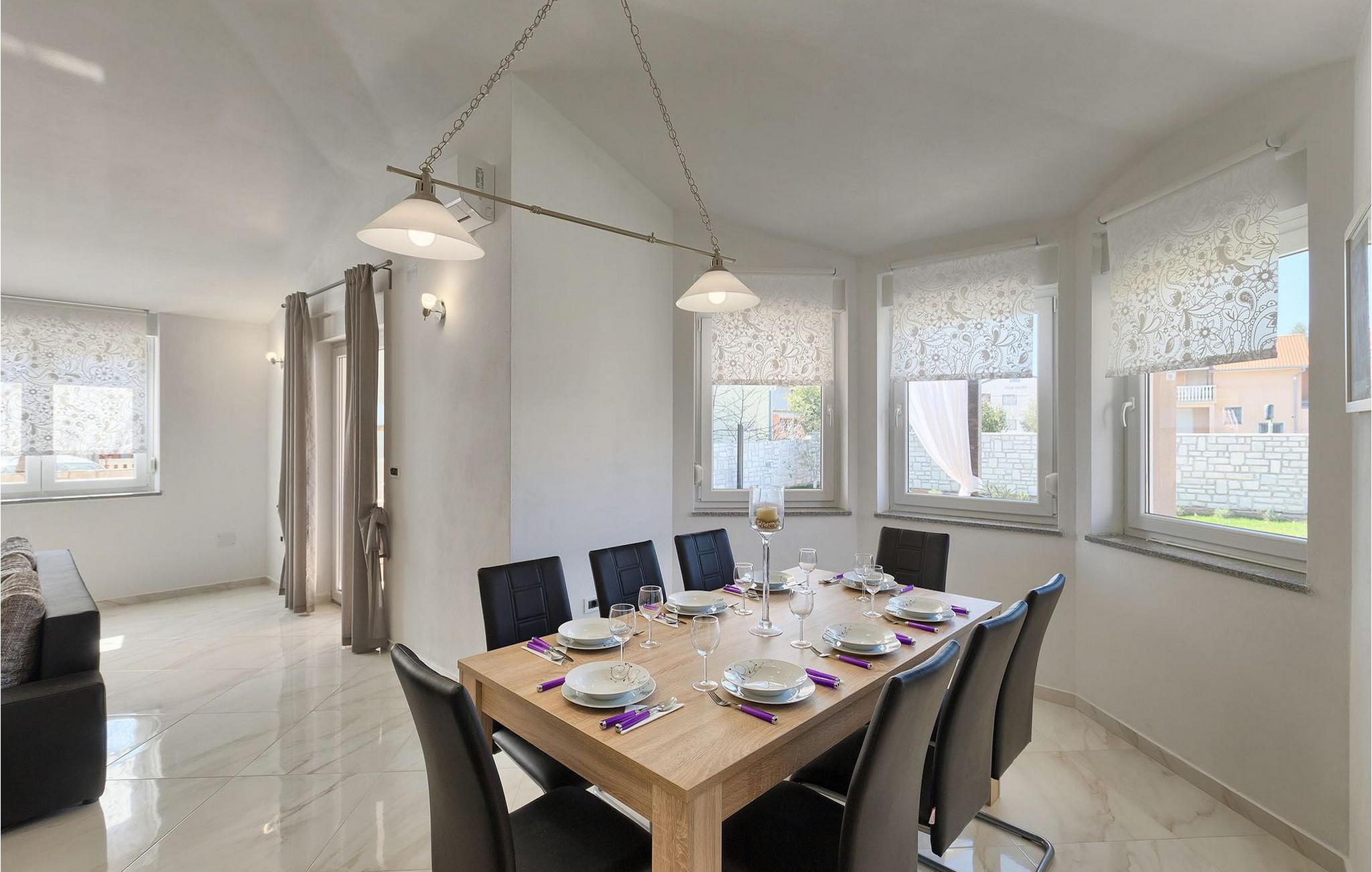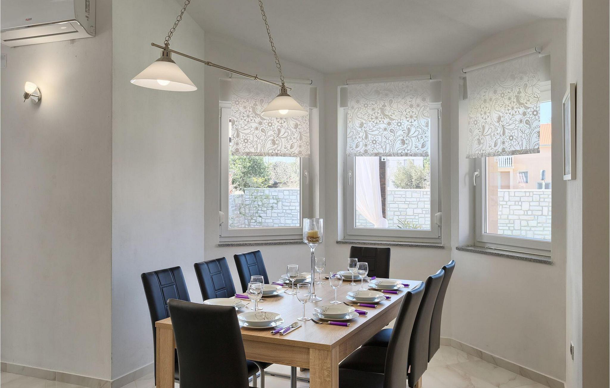 Nyd din tid med at slappe af ved den private pool i denne skønne familie. villa.Smuk villa Rudi er beliggende i Valbandon, et af de to steder, der gør kommunen og byen Fazana. Fazana ligger på den sydvestlige kyst af halvøen Istrien, kun 8 km fra Pula. Byen er kendt for sit fremragende gastronomiske tilbud: ekstra jomfru olivenolie, vin, prosciutto og sardiner. Her kan du også finde omkring 60 cykelstier, hvoraf nogle fører langs den smukke Adriaterhavskyst med udsigt over Brijuni-øerne. Der er også en 4 km lang vandresti langs kysten, ideel til romantiske gåture med din elskede. Fazana er også et sted, hvor du kan nyde forskellige former for vandsport: du kan leje en jetski, speedbåd, padlebåd, kano og cykler. Du kan også prøve windsurfing og dykning. Der er endda en halv ubåd, som du kan udforske den rige undervandsverden med. I nærheden finder du eventyrparken Jangalooz. Du kan tage hele familien med til en tur til badelandet i Pula eller til Dinoparken i Fontana. Den nærliggende nationalpark Brijuni er også en god idé til en tur med hele familien.