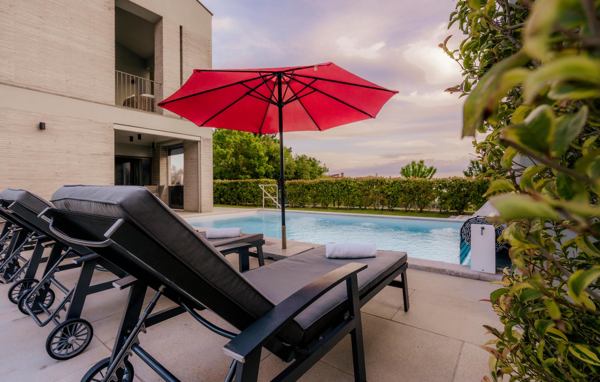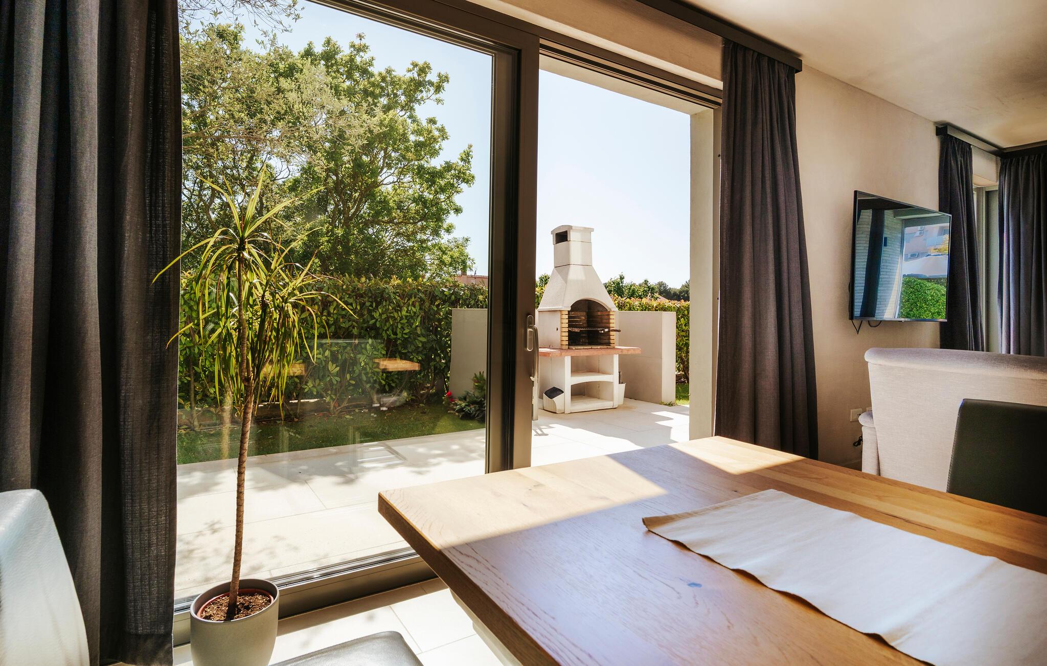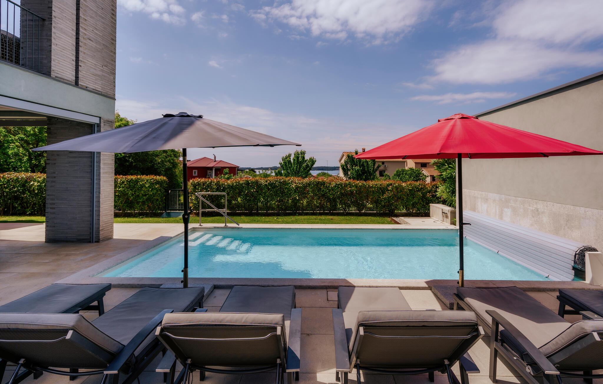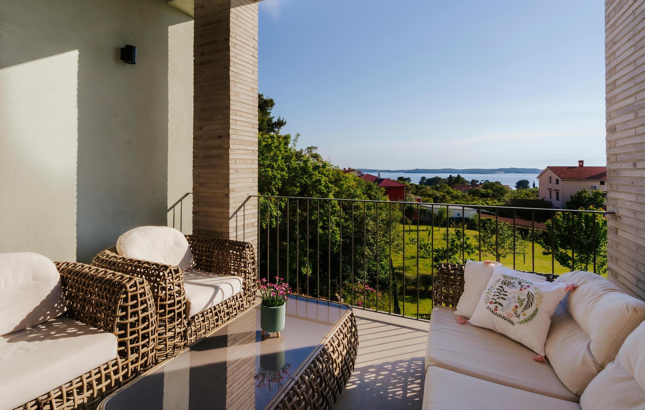 Villa Mima ist eine wunderschöne Villa in Fažana, perfekt geeignet für eine Familie oder Freundesgruppe von 6 Gästen. Die Villa bietet Gästen einen großen Garten und einen privaten Pool für die dringend benötigte Erfrischung an heißen Sommertagen. Erwachsene können es genießen, auf den Liegestühlen zu entspannen und die warme Mittelmeersonne zu genießen, während die Kinder im Pool spielen. Sie können traditionelle Kroatische Speisen auf dem Grill zubereiten und diese Köstlichkeiten im überdachten Essbereich draußen genießen. Für zusätzlichen Spaß stehen den Gästen Citybikes und E-Bikes sowie gegen Aufpreis E-Motorräder zur Erkundung der Umgebung zur Verfügung. Das Innere der Villa Mima ist stilvoll eingerichtet und sehr gut ausgestattet. Dabei finden die Gäste im Erdgeschoss ein geräumiges Wohnzimmer mit TV und Kamin, eine gut ausgestattete Küche und einen gemütlichen Essbereich sowie ein separates WC. Auf der ersten Etage befinden sich 3 Schlafzimmer und ihre 3 en-suite Badezimmer. 2 Schlafzimmer verfügen über Doppelbetten, während das 3. Schlafzimmer über 2 Einzelbetten verfügt, die zusammengeschoben werden können. Jedes Badezimmer verfügt über eine Dusche, während alle Schlafzimmer über einen Fernseher verfügen und voll klimatisiert sind. Die Gäste können ihren ersten Morgenkaffee von den Balkonen im Obergeschoss mit schönem Meerblick genießen. Die Villa Mima liegt außerdem nur 400 m vom Strand entfernt, was zusätzlichen Spaß für die ganze Reisegruppe bedeutet. Wenn Sie während Ihres Urlaubs in Istrien hervorrageFažana ist ein ausgezeichnetes Urlaubsziel für alle, die schöne Strände, klares Meer, ein warmes mediterranes Klima und freundliche und hilfsbereite Einheimische suchen. Dieses Urlaubsziel hat eine interessante Geschichte und Tradition, seine Straßen sind gefüllt mit dem, was viele als "wahren istrischen Charme" bezeichnen, und die Stadt hat ein ausgezeichnetes Angebot für alle Gastronomieliebhaber. Fažana, wie auch Istrien im Allgemeinen, ist bekannt für sein Olivenöl, Fischgerichte, Trüffelgerichte und eine Vielzahl anderer traditioneller Spezialitäten. Sie können in exquisiten Restaurants direkt an der Küste der Stadt speisen und die warmen Sommerabende mit Ihrer Liebsten bei einem romantischen Spaziergang genießen. Die natürliche Schönheit dieser Stadt und der umliegenden Strände sollte nicht übersehen werden. Viele Strände sind für Kinder geeignet, sodass dem Familienurlaub Ihrer Träume nichts im Wege stehen sollte. Diese Lage ist auch ideal für Tagesausflüge in andere großartige Städte wie Pula und Rovinj sowie den atemberaubenden Nationalpark Brijuni. Sie werden es nicht bereuen, wenn Sie Ihren Urlaub in Istrien und Fažana verbringen. Istrien wartet auf Sie!