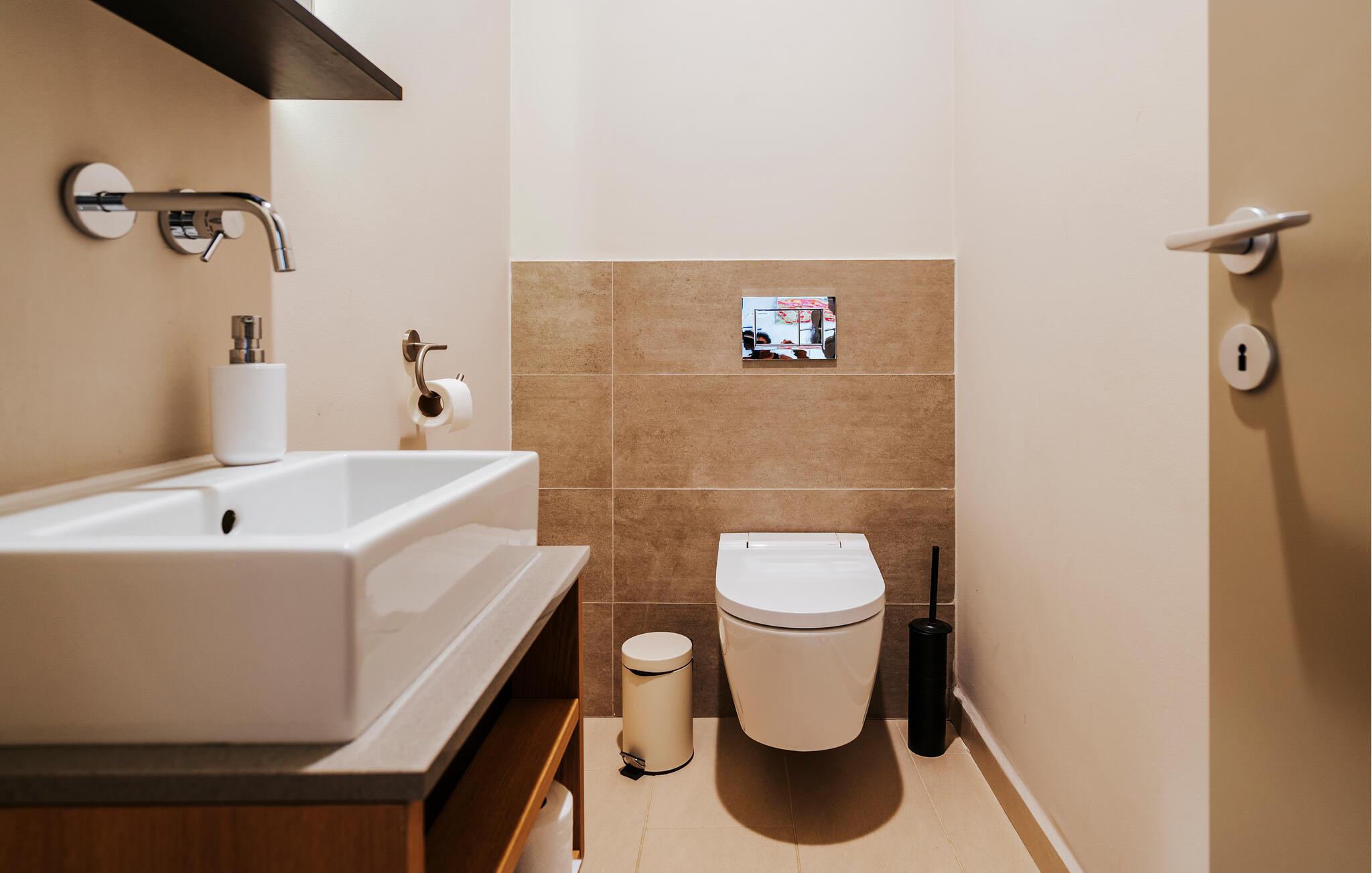 Badezimmer (nr. 1) - WC. Warmes und kaltes Wasser. Dusche