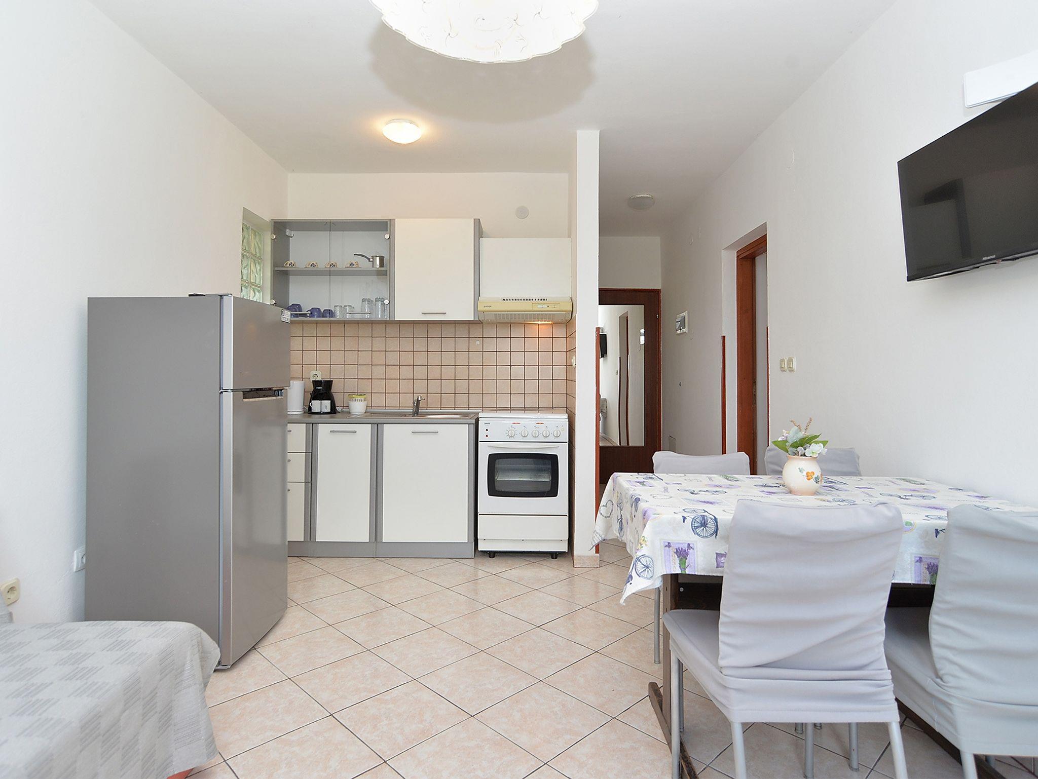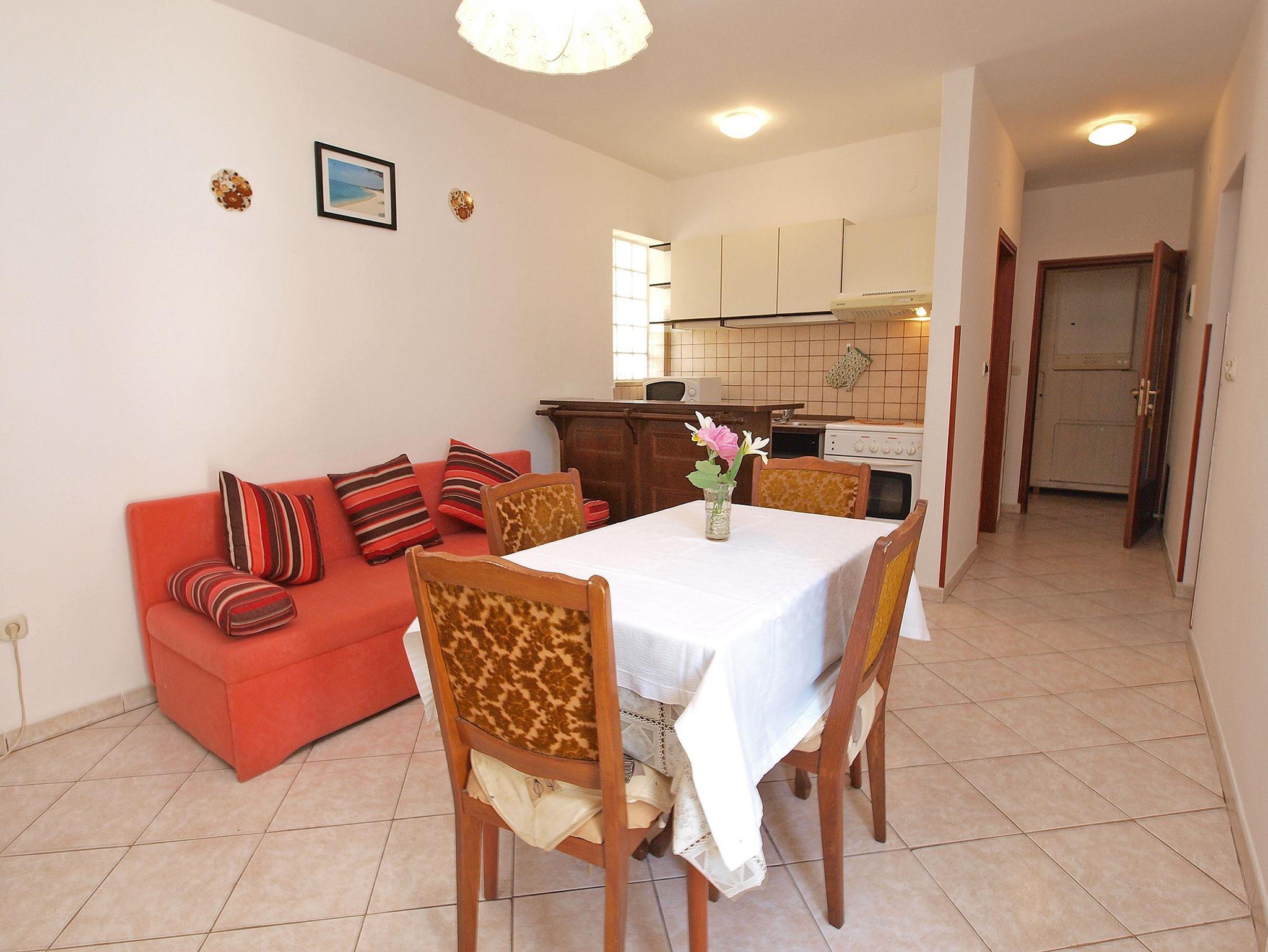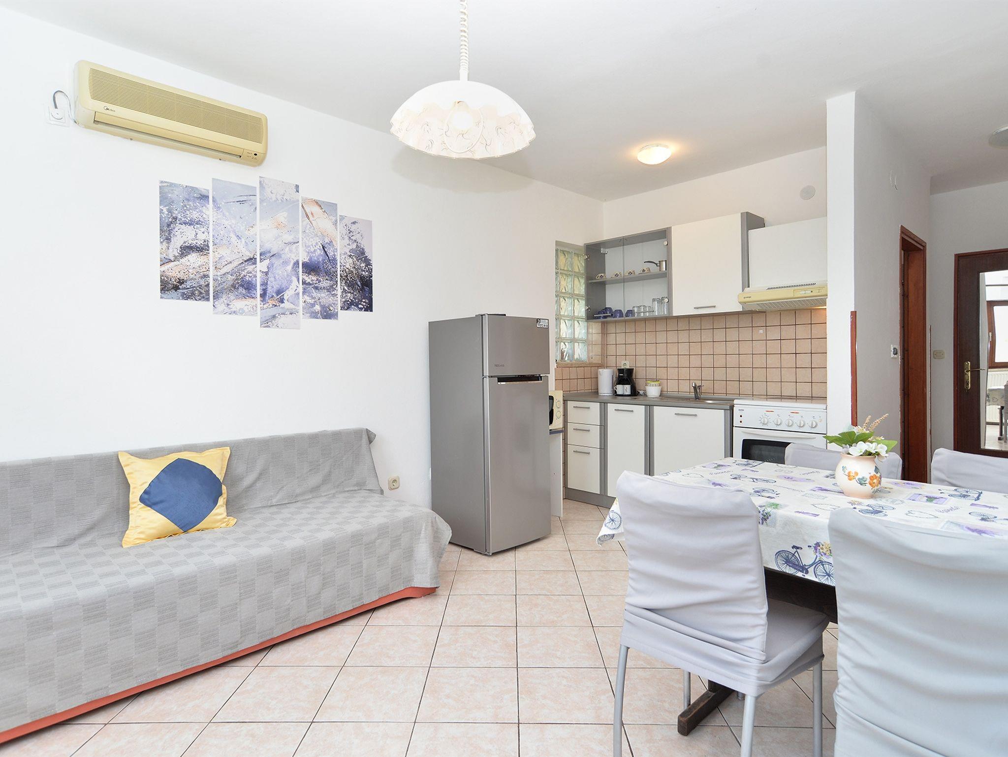 Ferienwohnung bietet Platz für 4 Gäste. Die Betten sind in Schlafzimmern, die es 1 gibt, und in Esszimmer, innerhalb einer Gesamtfläche von 34m2, angeordnet. Die Gäste haben eine eigene Terrasse zur Verfügung, auf der sie in warmen Sommernächten genießen können. Es ist erlaubt, Speisen auf dem Gemeinschafts-Grill vorzubereiten. IM PREIS INBEGRIFFEN: Kurtaxe, Endreinigung, Klimatisierung, Parkplatz, Internet, Kinderbett, Föhn. Die Verfügbarkeit zusätzlicher Dienstleistungen in Ihrem reservierten Termin und die Preise derselben (falls nicht aufgeführt) müssen im Voraus überprüft werden. Zusätzliche Dienstleistungen die in der Zahlungsaufforderung nicht aufgeführt sind werden direkt beim Vermieter bezahlt, angenommen der Gast nutzt auch diese.
