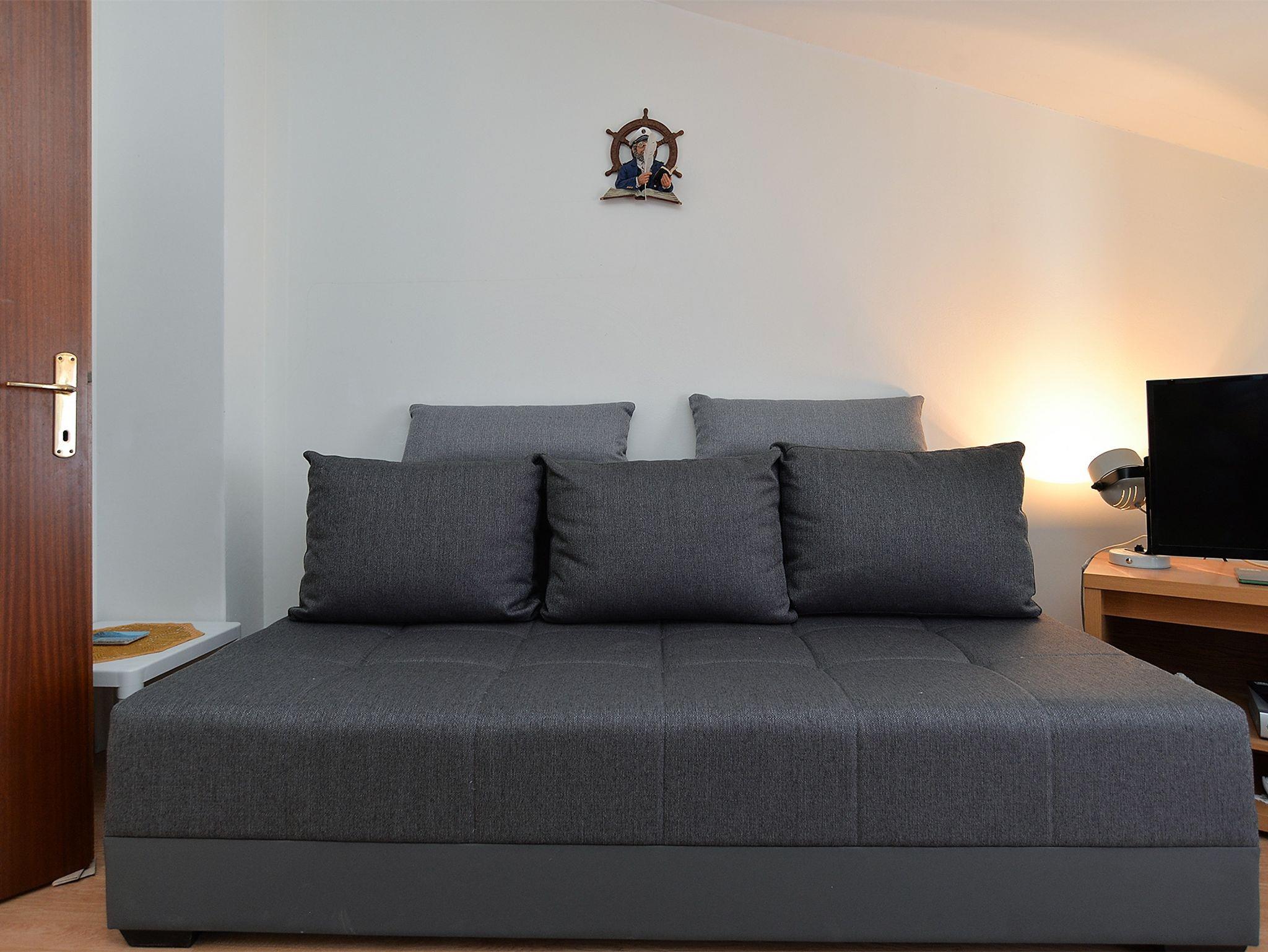 Ferienwohnung bietet Platz für 4 Gäste. Die Betten sind in Schlafzimmern, die es 2 gibt, innerhalb einer Gesamtfläche von 60m2, angeordnet. Die Gäste haben eine eigene Terrasse zur Verfügung, auf der sie in warmen Sommernächten genießen können. Das Apartment bietet Meerblick. Es ist erlaubt, Speisen auf dem Gemeinschafts-Grill vorzubereiten. IM PREIS INBEGRIFFEN: Kurtaxe, Endreinigung, Klimatisierung, Parkplatz, Internet, Bügeleisen. Die Verfügbarkeit zusätzlicher Dienstleistungen in Ihrem reservierten Termin und die Preise derselben (falls nicht aufgeführt) müssen im Voraus überprüft werden. Zusätzliche Dienstleistungen die in der Zahlungsaufforderung nicht aufgeführt sind werden direkt beim Vermieter bezahlt, angenommen der Gast nutzt auch diese.