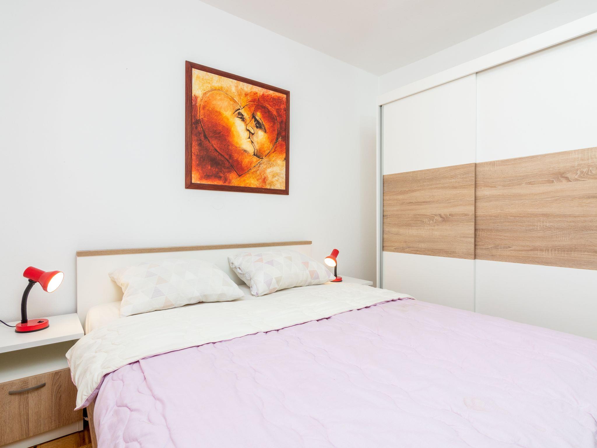 Ferienwohnung bietet Platz für 6 Gäste. Die Betten sind in Schlafzimmern, die es 3 gibt, und in Wohnzimmer, innerhalb einer Gesamtfläche von 68m2, angeordnet. Die Gäste haben eine eigene Terrasse zur Verfügung, auf der sie in warmen Sommernächten genießen können. Es ist erlaubt, Speisen auf dem Gemeinschafts-Grill vorzubereiten. In der Unterkunftseinheit besteht die Möglichkeit des Mitbringens von Haustieren gegen Aufpreis. IM PREIS INBEGRIFFEN: Kurtaxe, Endreinigung, Klimatisierung, Zentralheizung, Parkplatz, Internet, Bügeleisen, Bügelbrett, Föhn. VERBINDLICHE ZUSÄTZLICHE KOSTEN: Aufzahlung für Kurzaufenthalte (prozentualer Zuschlag pro Nächtigungsanzahl: 30% - 1, 20% - 2, 10% - 3). UNVERBINDLICHE ZUSÄTZLICHE KOSTEN: Haustiere (5,00 € pro Nacht). Die Verfügbarkeit zusätzlicher Dienstleistungen in Ihrem reservierten Termin und die Preise derselben (falls nicht aufgeführt) müssen im Voraus überprüft werden. Zusätzliche Dienstleistungen die in der Zahlungsaufforderung nicht aufgeführt sind werden direkt beim Vermieter bezahlt, angenommen der Gast nutzt auch diese.