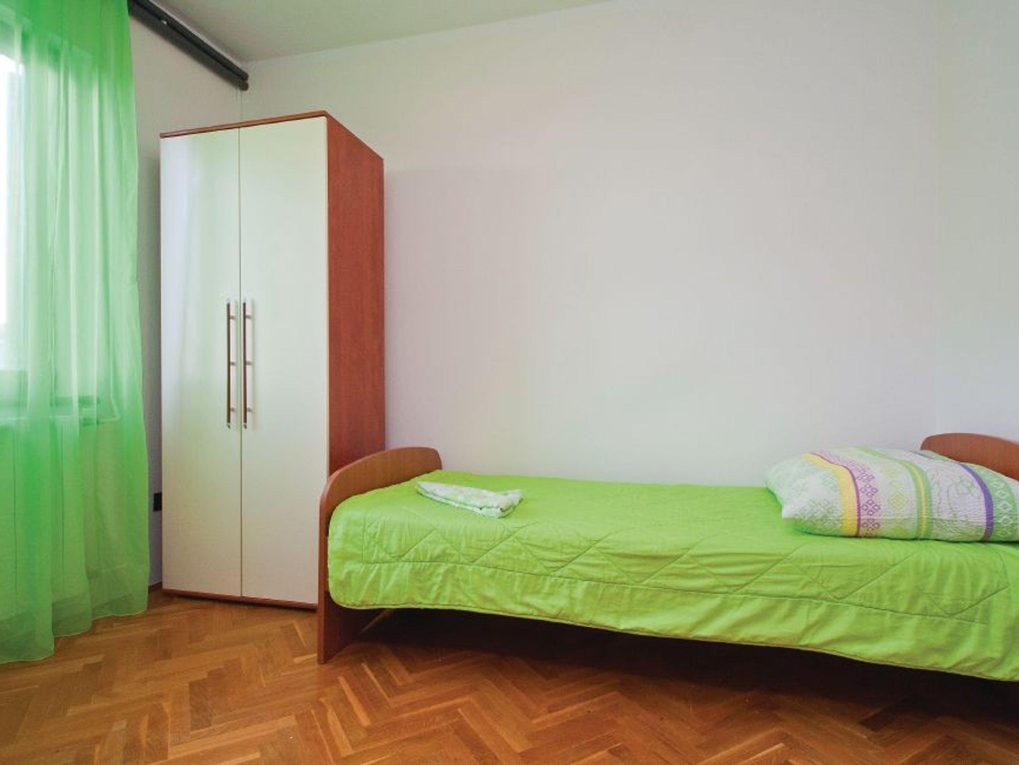 Ferienwohnung bietet Platz für 6 Gäste. Die Betten sind in Schlafzimmern, die es 3 gibt, und in Wohnzimmer, innerhalb einer Gesamtfläche von 80m2, angeordnet. Die Gäste haben eine eigene Terrasse zur Verfügung, auf der sie in warmen Sommernächten genießen können. Für vollen Genuss und Entspannung gibt es einen privaten Grill für Gäste dieser Unterkunft. IM PREIS INBEGRIFFEN: Kurtaxe, Endreinigung, Klimatisierung, Zentralheizung, Parkplatz, Internet, Bügeleisen, Bügelbrett, Föhn. VERBINDLICHE ZUSÄTZLICHE KOSTEN: Aufzahlung für Kurzaufenthalte (prozentualer Zuschlag pro Nächtigungsanzahl: 30% - 1, 20% - 2, 10% - 3). Die Verfügbarkeit zusätzlicher Dienstleistungen in Ihrem reservierten Termin und die Preise derselben (falls nicht aufgeführt) müssen im Voraus überprüft werden. Zusätzliche Dienstleistungen die in der Zahlungsaufforderung nicht aufgeführt sind werden direkt beim Vermieter bezahlt, angenommen der Gast nutzt auch diese.