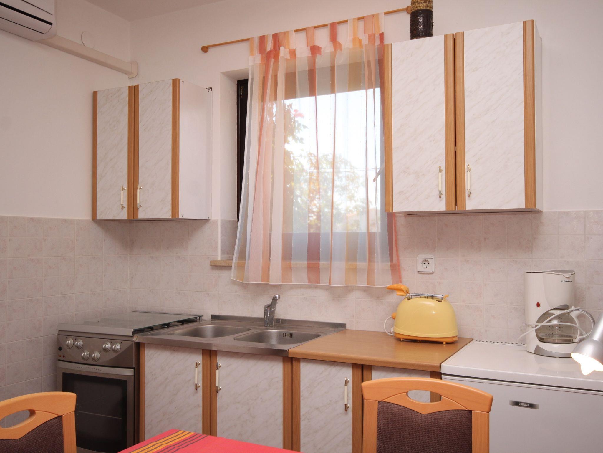 Ferienwohnung bietet Platz für 3 Gäste. Die Betten sind in Schlafzimmern, die es 1 gibt, und in Wohnzimmer, innerhalb einer Gesamtfläche von 34m2, angeordnet. Die Gäste haben eine eigene Terrasse zur Verfügung, auf der sie in warmen Sommernächten genießen können. Es ist erlaubt, Speisen auf dem Gemeinschafts-Grill vorzubereiten. IM PREIS INBEGRIFFEN: Kurtaxe, Endreinigung, Klimatisierung, Parkplatz, Internet, Bügeleisen, Föhn, tragbarer Grill. VERBINDLICHE ZUSÄTZLICHE KOSTEN: Aufzahlung für Kurzaufenthalte (prozentualer Zuschlag pro Nächtigungsanzahl: 30% - 1, 20% - 2, 10% - 3). Die Verfügbarkeit zusätzlicher Dienstleistungen in Ihrem reservierten Termin und die Preise derselben (falls nicht aufgeführt) müssen im Voraus überprüft werden. Zusätzliche Dienstleistungen die in der Zahlungsaufforderung nicht aufgeführt sind werden direkt beim Vermieter bezahlt, angenommen der Gast nutzt auch diese. Ermäßigung auf den Grundpreis: Gratistag 14=13 (bei einem Aufenthalt von 14 Tagen oder mehr erhalten Sie einen Gratistag für den Aufenthalt bis 31.12.26).