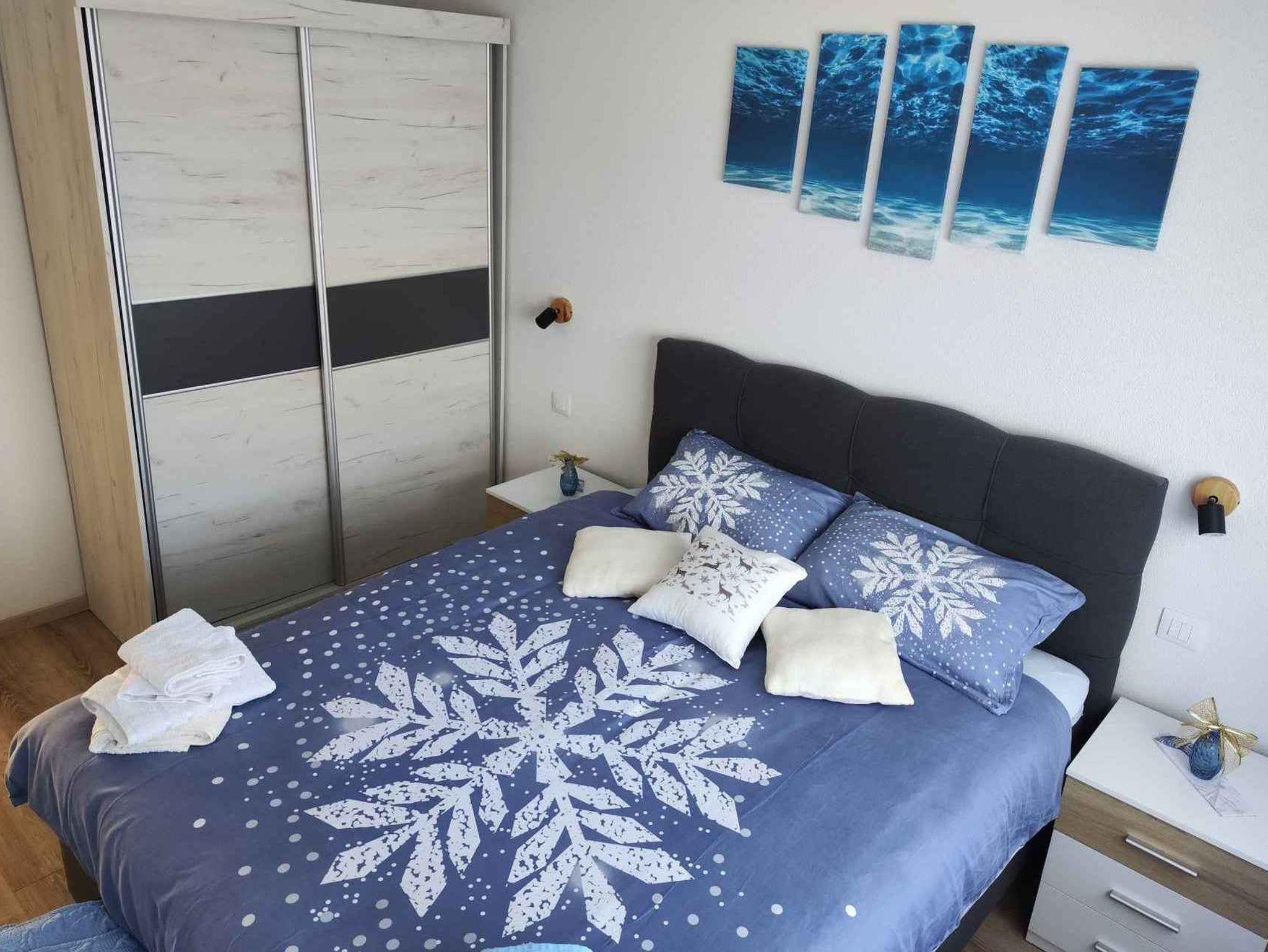 Ferienwohnung bietet Platz für 4 Gäste. Die Betten sind in Schlafzimmern, die es 2 gibt, innerhalb einer Gesamtfläche von 68m2, angeordnet. Die Gäste haben einen eigenen Balkon zur Verfügung, auf der sie in warmen Sommernächten genießen können. Das Apartment bietet Meerblick. In der Unterkunftseinheit besteht die Möglichkeit des Mitbringens von Haustieren, und die Dienstleistung ist im Preis der Unterkunft enthalten. IM PREIS INBEGRIFFEN: Kurtaxe, Endreinigung, Klimatisierung, Parkplatz, Internet, Haustiere, Kinderbett, Zusatzbett, Bügeleisen, Bügelbrett, Föhn. VERBINDLICHE ZUSÄTZLICHE KOSTEN: Aufzahlung für Kurzaufenthalte (prozentualer Zuschlag pro Nächtigungsanzahl: 30% - 1, 20% - 2, 10% - 3). Die Verfügbarkeit zusätzlicher Dienstleistungen in Ihrem reservierten Termin und die Preise derselben (falls nicht aufgeführt) müssen im Voraus überprüft werden. Zusätzliche Dienstleistungen die in der Zahlungsaufforderung nicht aufgeführt sind werden direkt beim Vermieter bezahlt, angenommen der Gast nutzt auch diese. Ermäßigung auf den Grundpreis: Gratistag 14=13 (bei einem Aufenthalt von 14 Tagen oder mehr erhalten Sie einen Gratistag für den Aufenthalt bis 31.12.26).