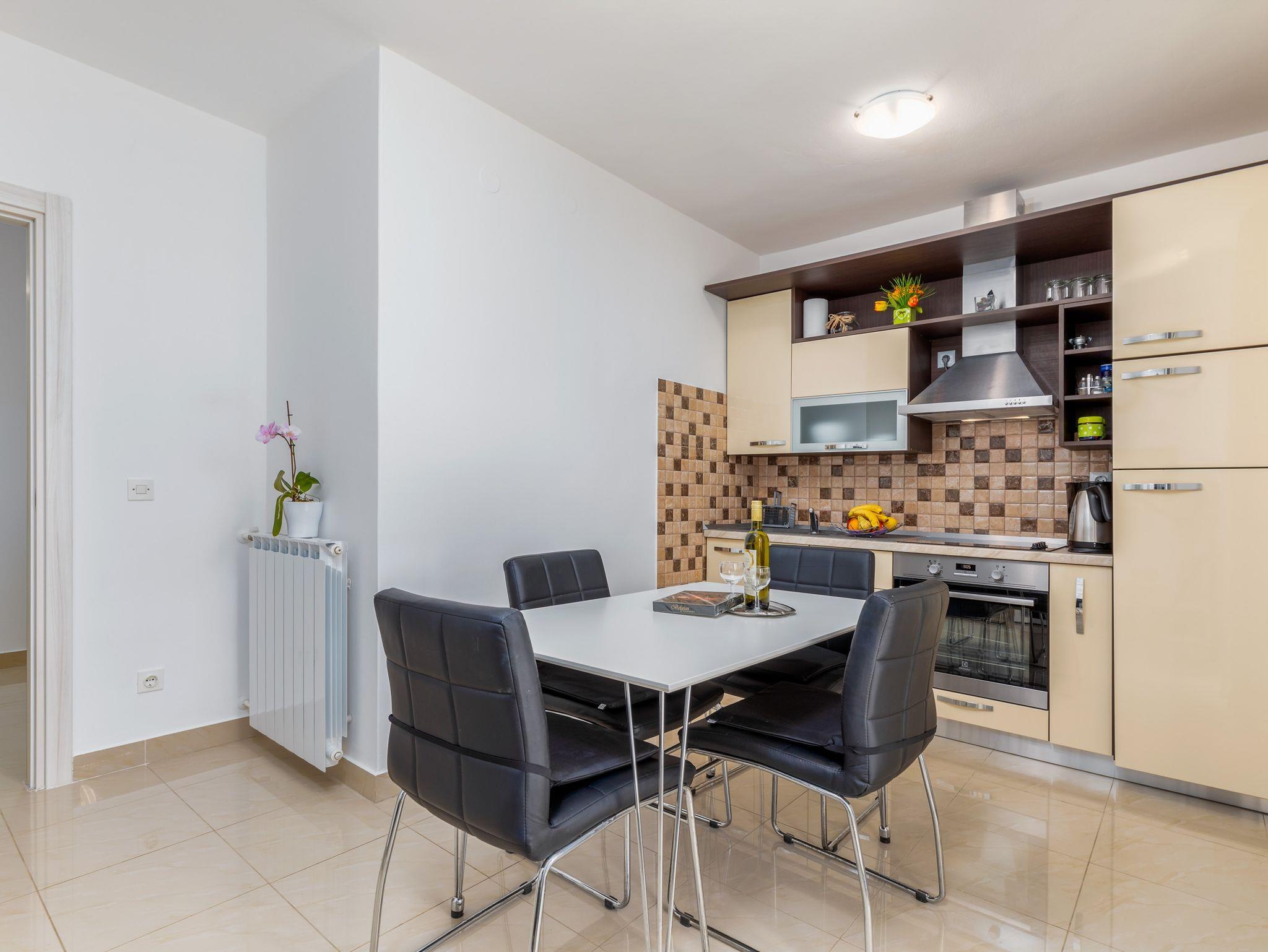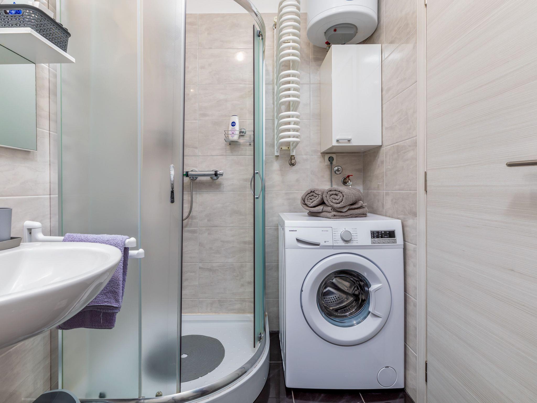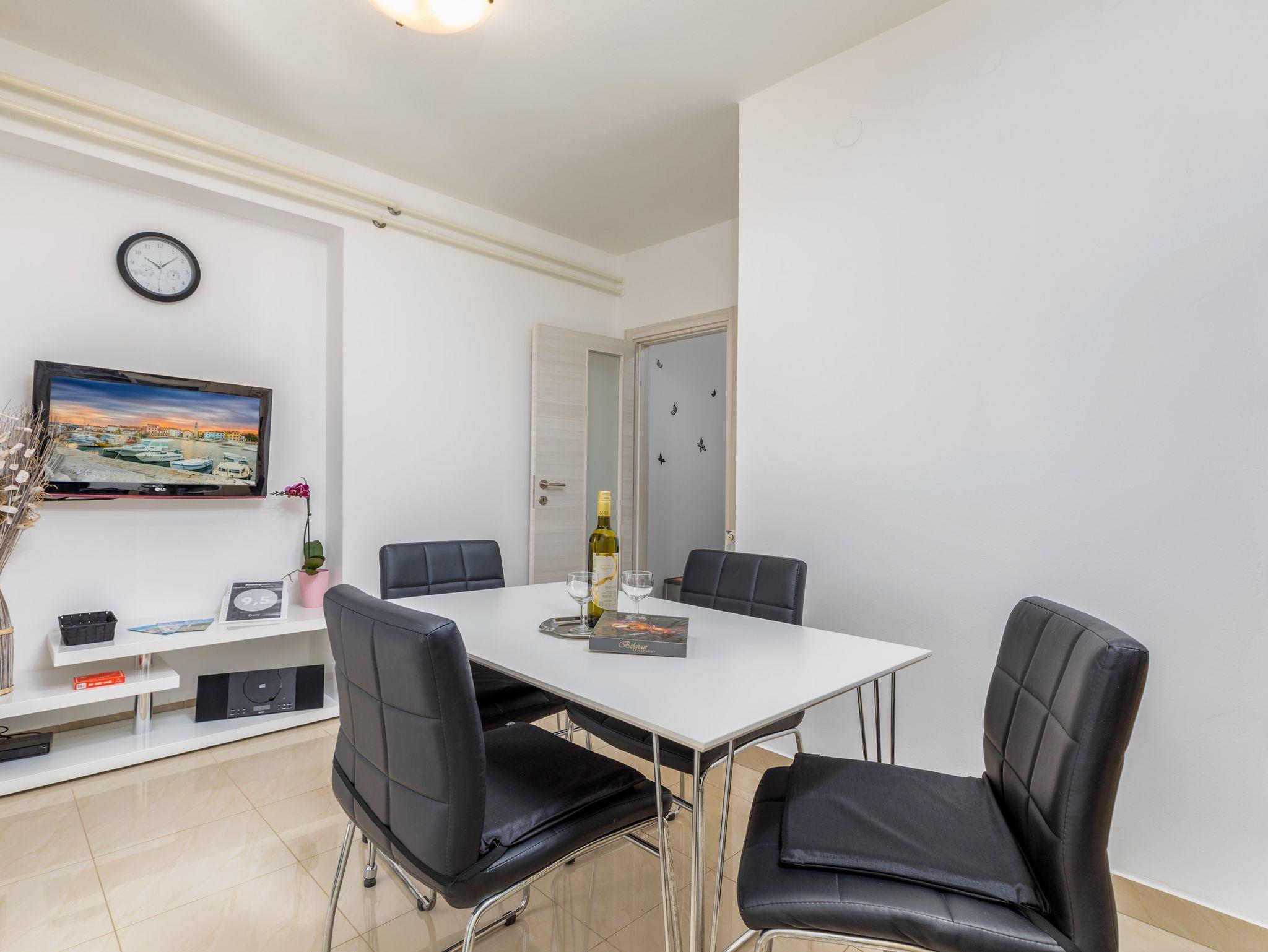 Ferienwohnung bietet Platz für 4 Gäste. Die Betten sind in Schlafzimmern, die es 2 gibt, innerhalb einer Gesamtfläche von 44m2, angeordnet. Die Gäste haben eine eigene Terrasse zur Verfügung, auf der sie in warmen Sommernächten genießen können. Es ist erlaubt, Speisen auf dem Gemeinschafts-Grill vorzubereiten. IM PREIS INBEGRIFFEN: Kurtaxe, Endreinigung, Klimatisierung, Parkplatz, Internet, Kinderbett, Bügeleisen, Bügelbrett, Föhn. VERBINDLICHE ZUSÄTZLICHE KOSTEN: Aufzahlung für Kurzaufenthalte (prozentualer Zuschlag pro Nächtigungsanzahl: 30% - 1, 20% - 2, 10% - 3). UNVERBINDLICHE ZUSÄTZLICHE KOSTEN: Zentralheizung (5,00 € pro Nacht). Die Verfügbarkeit zusätzlicher Dienstleistungen in Ihrem reservierten Termin und die Preise derselben (falls nicht aufgeführt) müssen im Voraus überprüft werden. Zusätzliche Dienstleistungen die in der Zahlungsaufforderung nicht aufgeführt sind werden direkt beim Vermieter bezahlt, angenommen der Gast nutzt auch diese.