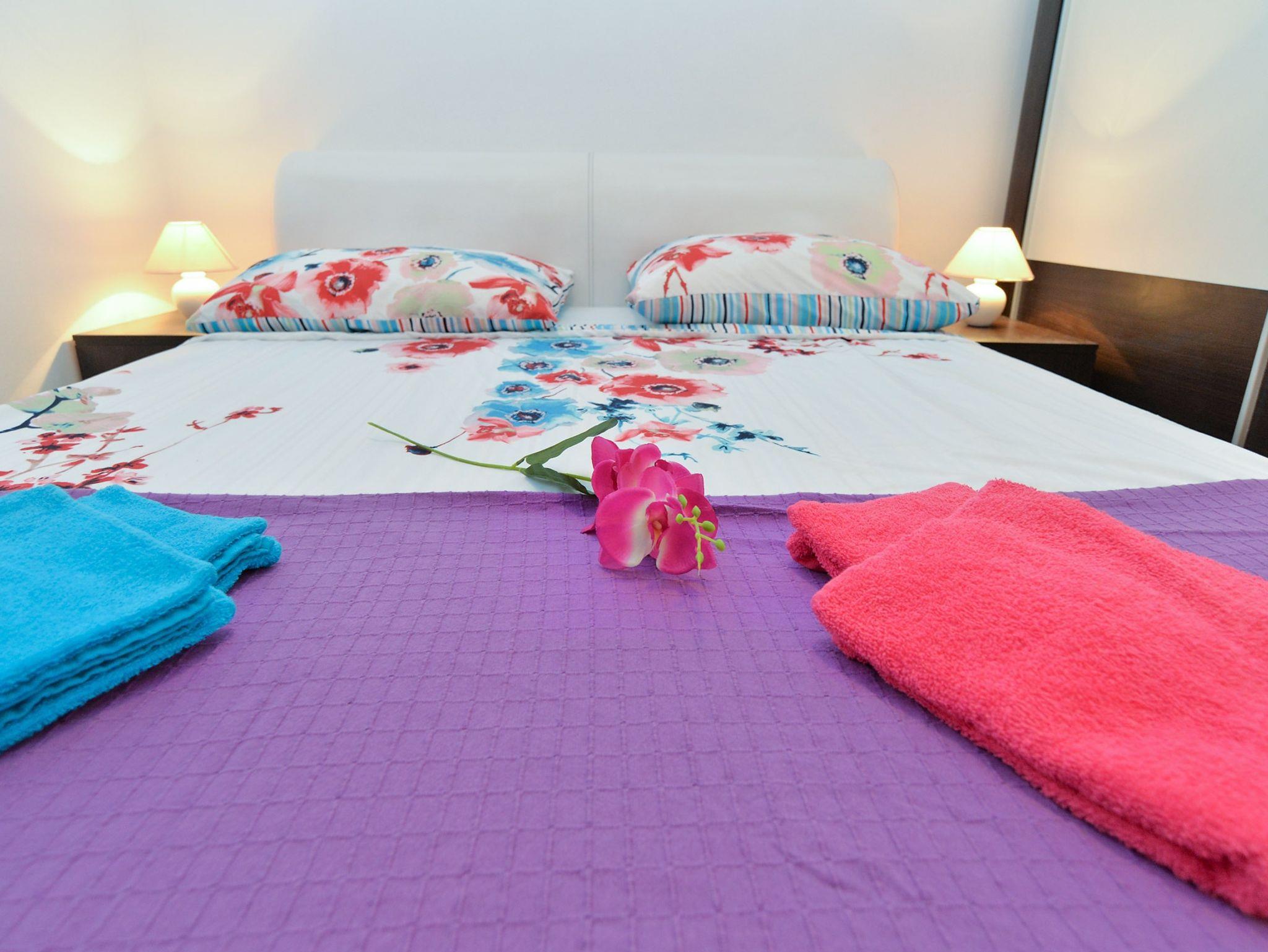 Ferienwohnung bietet Platz für 8 Gäste. Die Betten sind in Schlafzimmern, die es 3 gibt, und in Wohnzimmer, innerhalb einer Gesamtfläche von 85m2, angeordnet. Die Gäste haben eine eigene Terrasse zur Verfügung, auf der sie in warmen Sommernächten genießen können. Es ist erlaubt, Speisen auf dem Gemeinschafts-Grill vorzubereiten. Während ihres Aufenthalts können Gäste das gemeinsam zur Nutzung stehende Schwimmbad benutzen. In der Unterkunftseinheit besteht die Möglichkeit des Mitbringens von Haustieren gegen Aufpreis. In der gebuchten Unterkunftseinheit zahlt man am Ort ein Depositum ( der Preis ist an der Internetseite angeführt ). IM PREIS INBEGRIFFEN: Kurtaxe, Endreinigung, Klimatisierung, Pool, Parkplatz, Internet. VERBINDLICHE ZUSÄTZLICHE KOSTEN: Kaution (300,00 € Einmalzahlung). UNVERBINDLICHE ZUSÄTZLICHE KOSTEN: Haustiere (10,00 € pro Nacht). Die Verfügbarkeit zusätzlicher Dienstleistungen in Ihrem reservierten Termin und die Preise derselben (falls nicht aufgeführt) müssen im Voraus überprüft werden. Zusätzliche Dienstleistungen die in der Zahlungsaufforderung nicht aufgeführt sind werden direkt beim Vermieter bezahlt, angenommen der Gast nutzt auch diese.