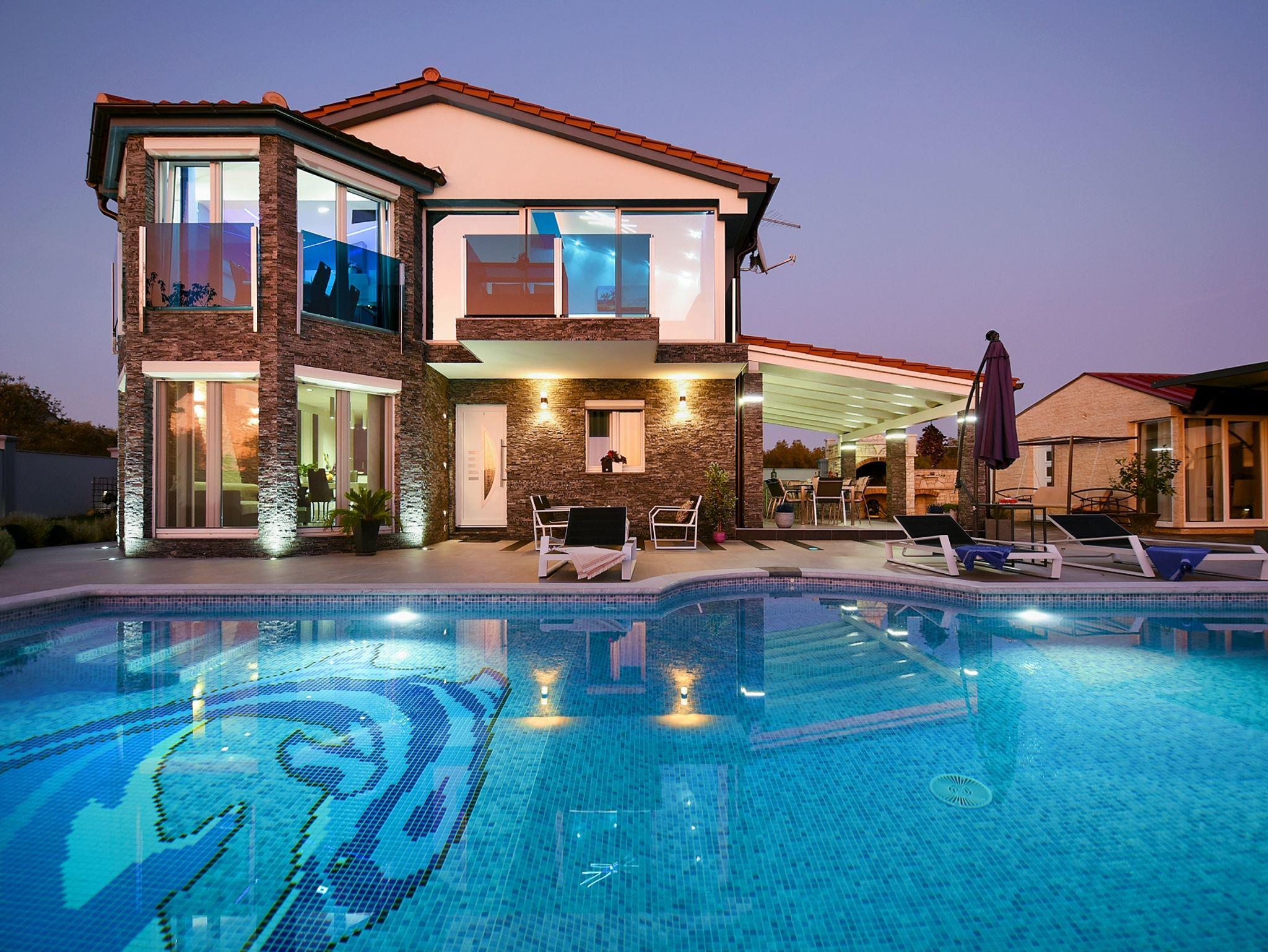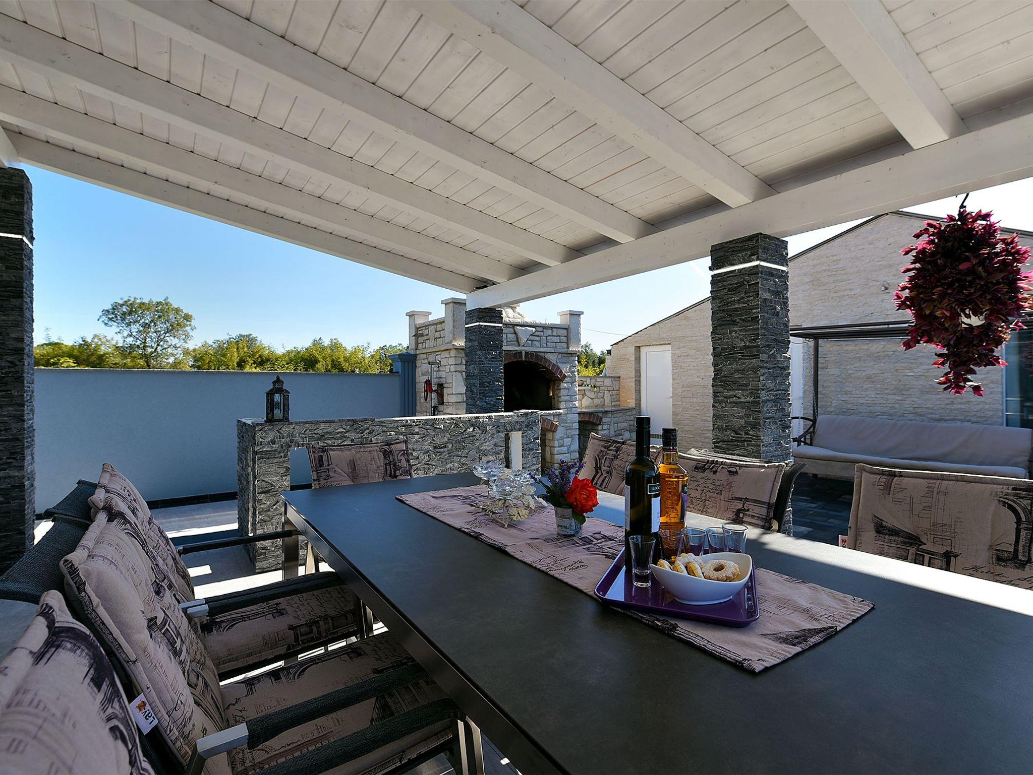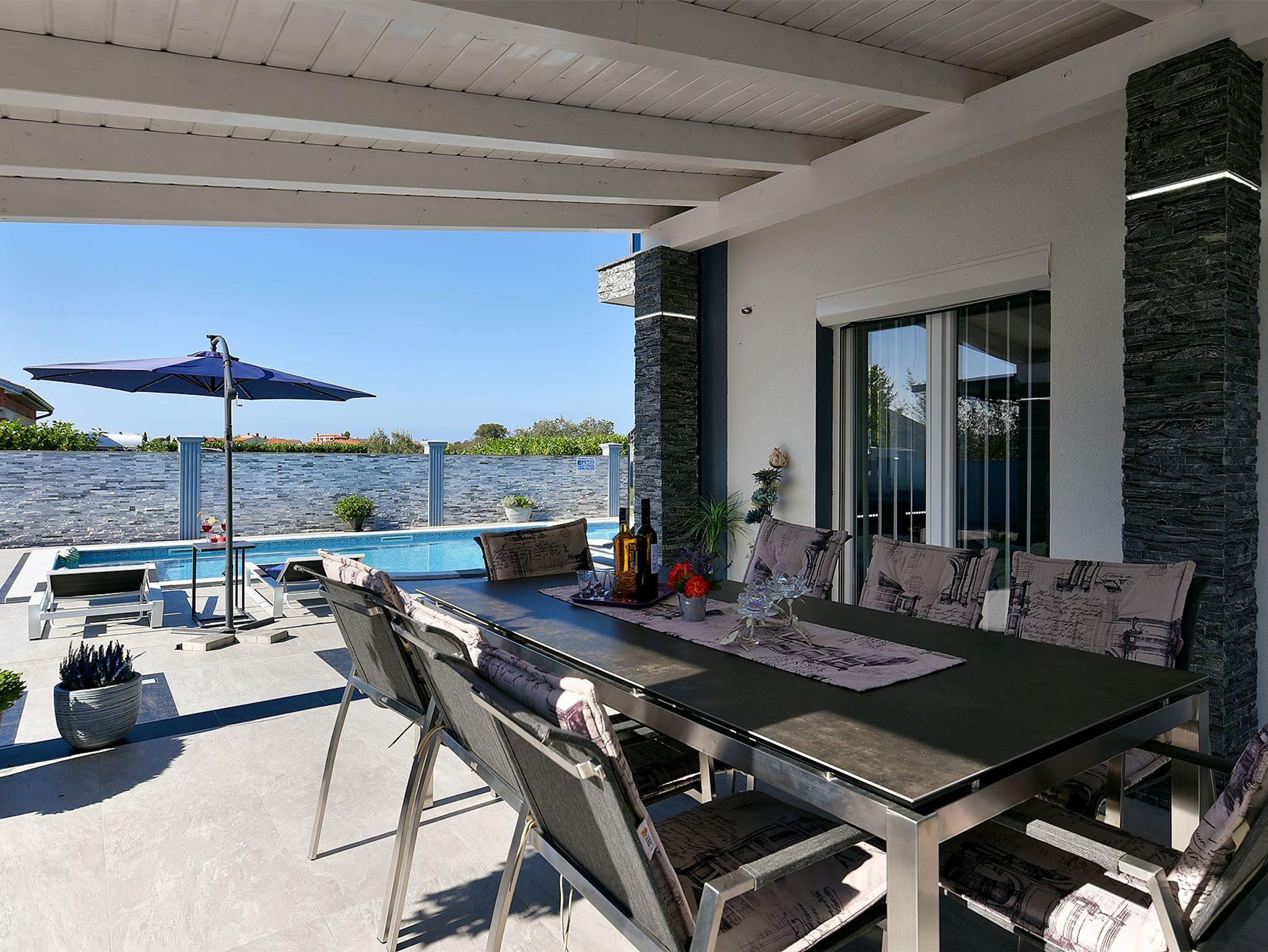 Haus bietet Platz für 10 Gäste. Die Betten sind in Schlafzimmern, die es 4 gibt, und in Wohnzimmer, innerhalb einer Gesamtfläche von 112m2, angeordnet. Die Gäste haben eine eigene Terrasse zur Verfügung, auf der sie in warmen Sommernächten genießen können. Für vollen Genuss und Entspannung gibt es einen privaten Grill für Gäste dieser Unterkunft. Während ihres Aufenthalts können sich Gäste im privaten Schwimmbad entspannen. Räume der gebuchten Unterkunftseinheit werden nicht in eine Ganze verbunden. In der gebuchten Unterkunftseinheit zahlt man am Ort ein Depositum ( der Preis ist an der Internetseite angeführt ). IM PREIS INBEGRIFFEN: Kurtaxe, Endreinigung, Klimatisierung, Pool, Parkplatz, Internet, Bügeleisen, Föhn. VERBINDLICHE ZUSÄTZLICHE KOSTEN: Kaution (300,00 € Einmalzahlung). Die Verfügbarkeit zusätzlicher Dienstleistungen in Ihrem reservierten Termin und die Preise derselben (falls nicht aufgeführt) müssen im Voraus überprüft werden. Zusätzliche Dienstleistungen die in der Zahlungsaufforderung nicht aufgeführt sind werden direkt beim Vermieter bezahlt, angenommen der Gast nutzt auch diese.