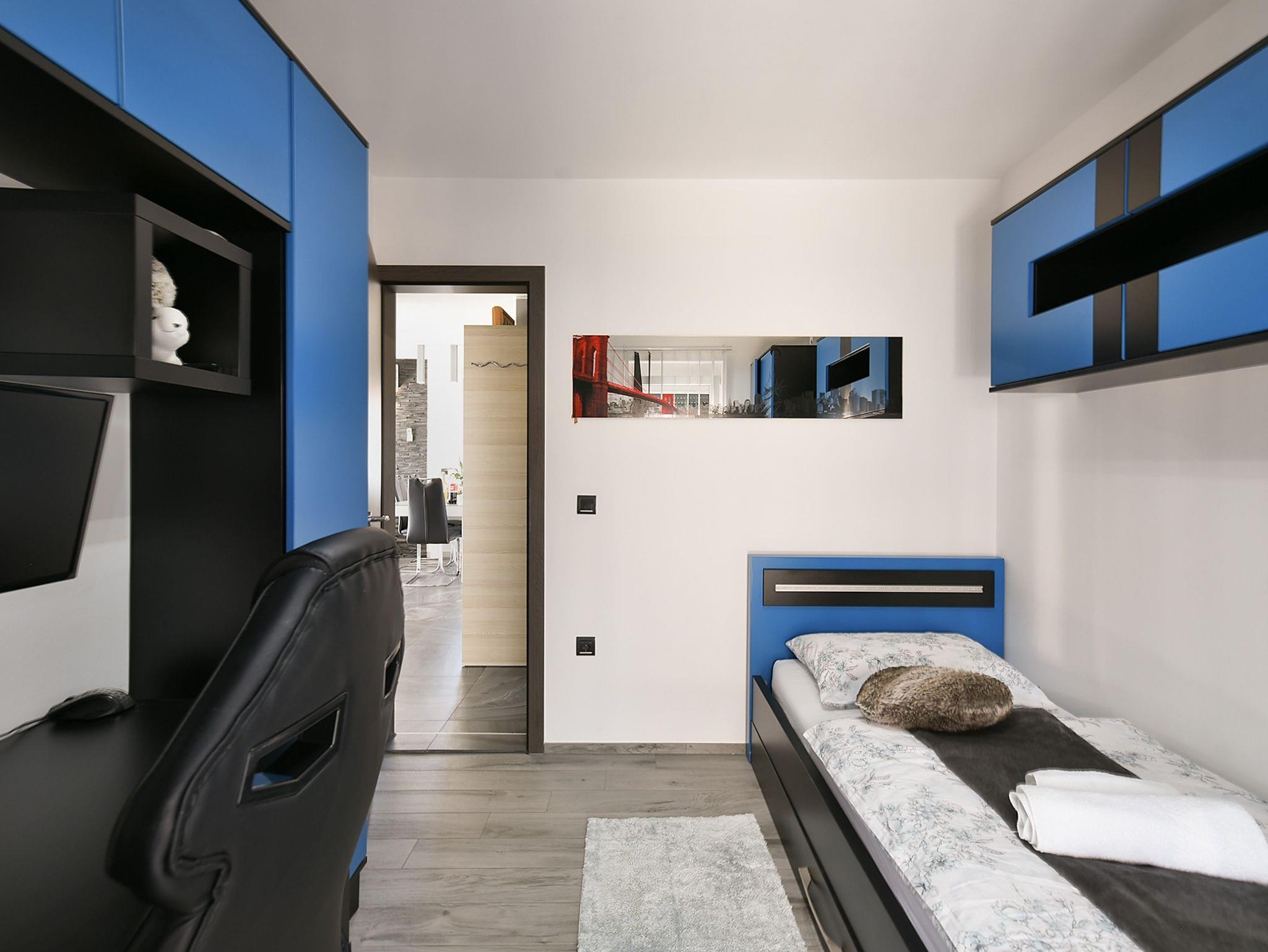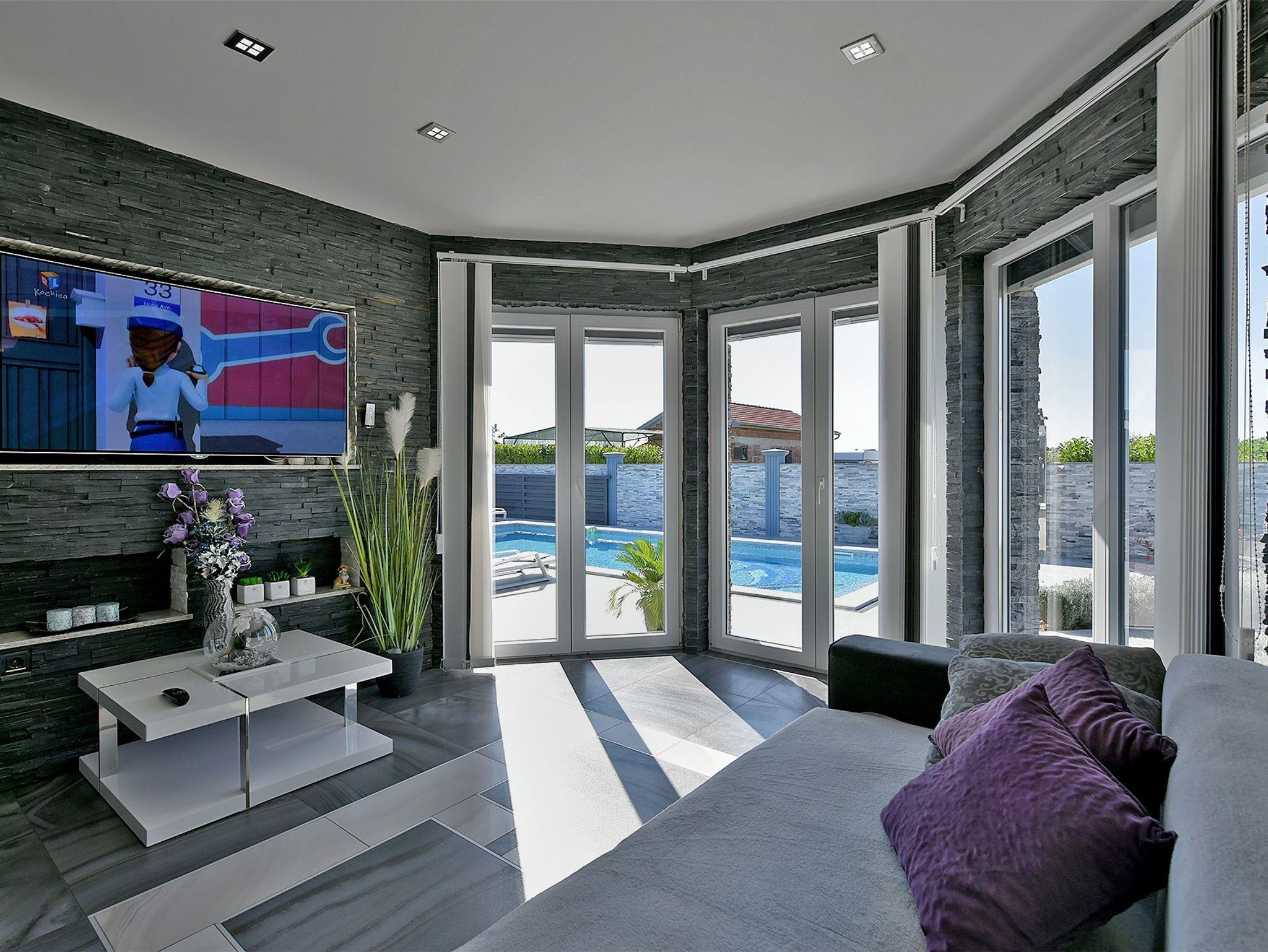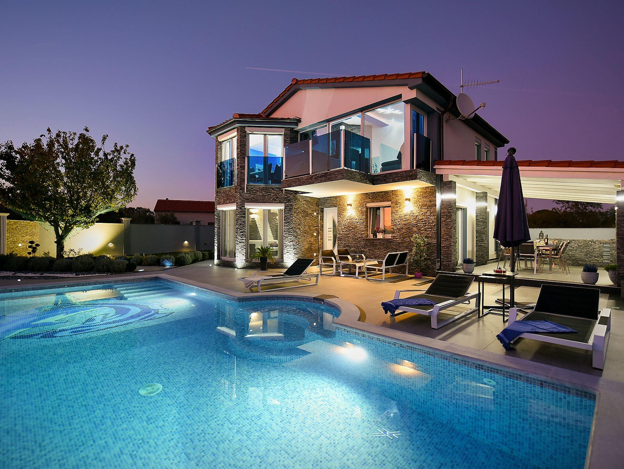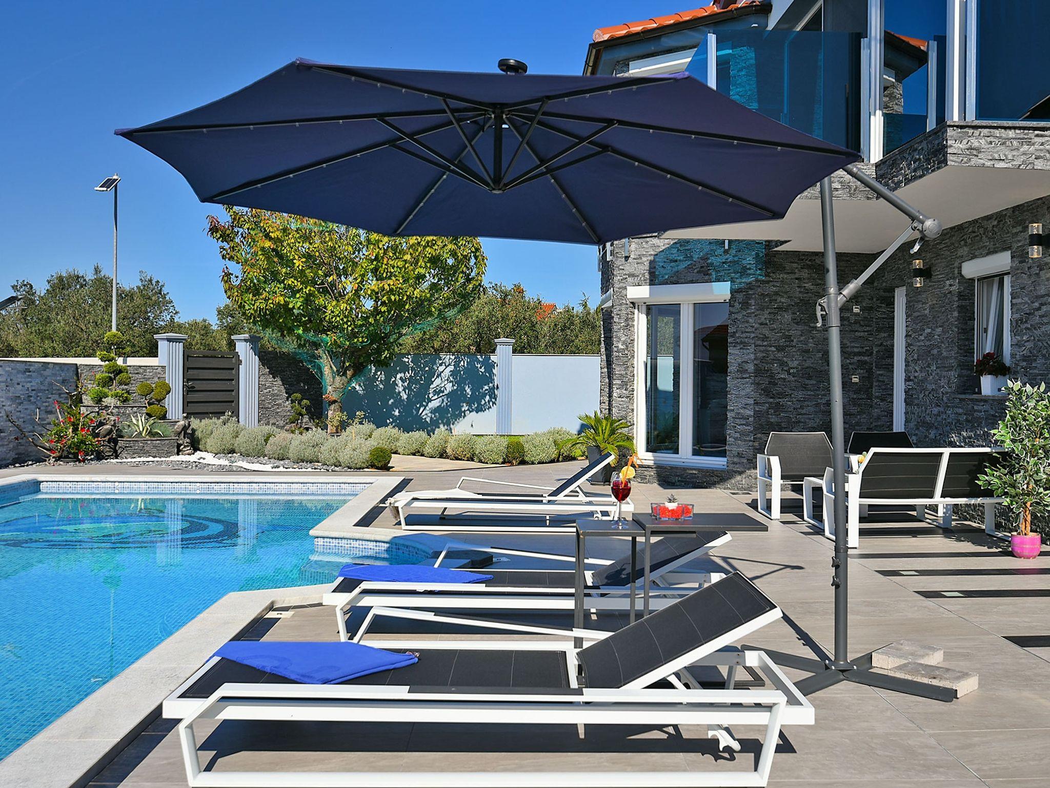Haus bietet Platz für 10 Gäste. Die Betten sind in Schlafzimmern, die es 4 gibt, und in Wohnzimmer, innerhalb einer Gesamtfläche von 112m2, angeordnet. Die Gäste haben eine eigene Terrasse zur Verfügung, auf der sie in warmen Sommernächten genießen können. Für vollen Genuss und Entspannung gibt es einen privaten Grill für Gäste dieser Unterkunft. Während ihres Aufenthalts können sich Gäste im privaten Schwimmbad entspannen. Räume der gebuchten Unterkunftseinheit werden nicht in eine Ganze verbunden. In der gebuchten Unterkunftseinheit zahlt man am Ort ein Depositum ( der Preis ist an der Internetseite angeführt ). IM PREIS INBEGRIFFEN: Kurtaxe, Endreinigung, Klimatisierung, Pool, Parkplatz, Internet, Bügeleisen, Föhn. VERBINDLICHE ZUSÄTZLICHE KOSTEN: Kaution (300,00 € Einmalzahlung). Die Verfügbarkeit zusätzlicher Dienstleistungen in Ihrem reservierten Termin und die Preise derselben (falls nicht aufgeführt) müssen im Voraus überprüft werden. Zusätzliche Dienstleistungen die in der Zahlungsaufforderung nicht aufgeführt sind werden direkt beim Vermieter bezahlt, angenommen der Gast nutzt auch diese.