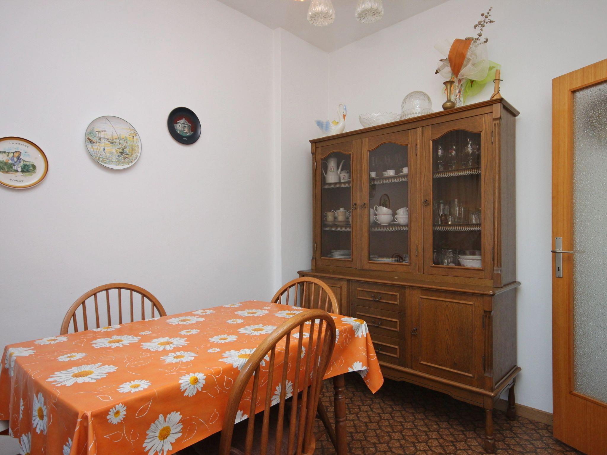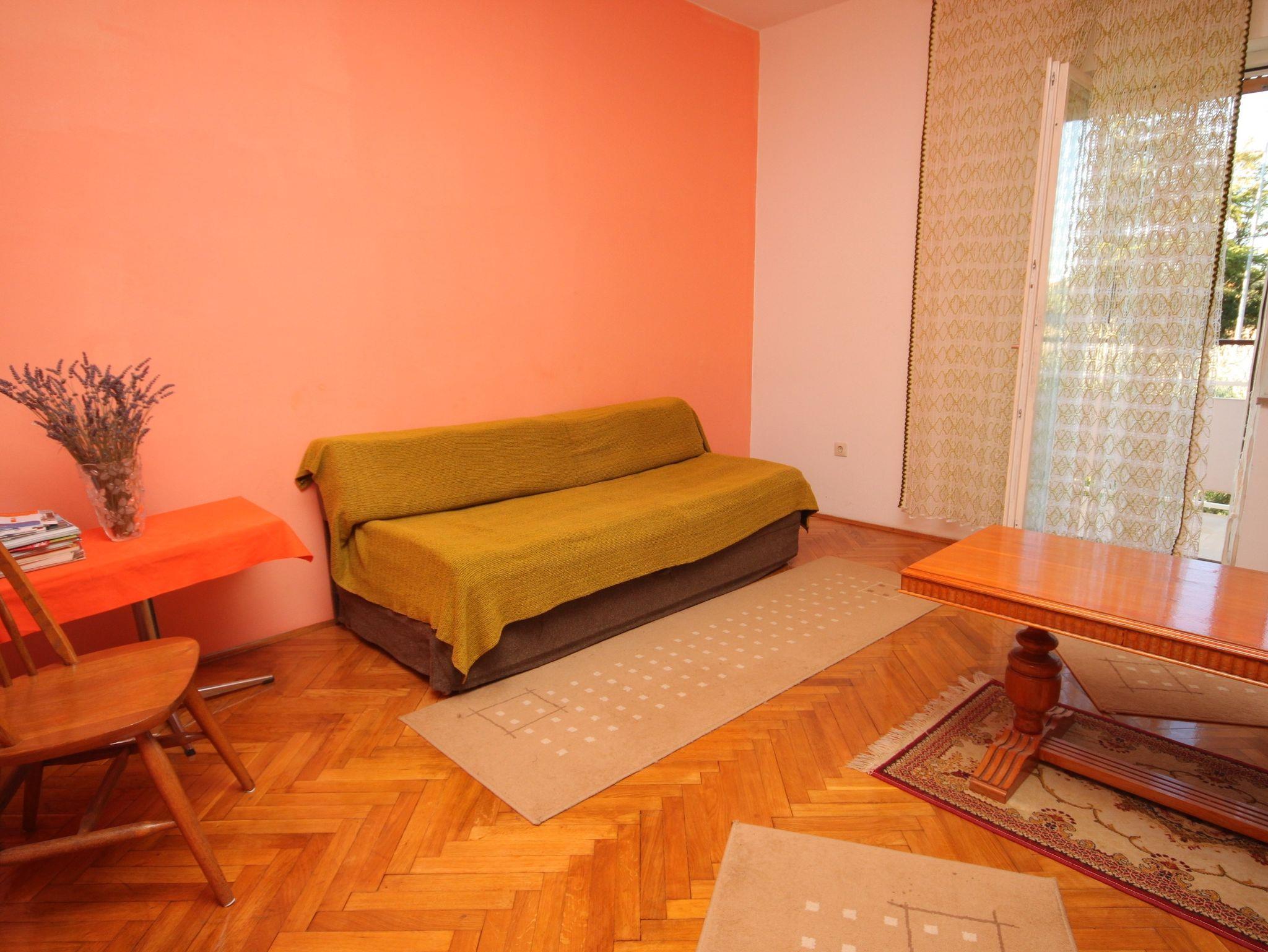 Ferienwohnung bietet Platz für 5 Gäste. Die Betten sind in Schlafzimmern, die es 2 gibt, und in Wohnzimmer, innerhalb einer Gesamtfläche von 74m2, angeordnet. Die Gäste haben eine eigene Terrasse zur Verfügung, auf der sie in warmen Sommernächten genießen können. Für vollen Genuss und Entspannung gibt es einen privaten Grill für Gäste dieser Unterkunft. IM PREIS INBEGRIFFEN: Kurtaxe, Endreinigung, Parkplatz, Internet, Bügeleisen, Bügelbrett, Föhn. VERBINDLICHE ZUSÄTZLICHE KOSTEN: Aufzahlung für Kurzaufenthalte (prozentualer Zuschlag pro Nächtigungsanzahl: 30% - 1, 20% - 2, 10% - 3). UNVERBINDLICHE ZUSÄTZLICHE KOSTEN: Klimatisierung (10,00 € pro Nacht), Wäschewaschen (5,00 € Waschen). Die Verfügbarkeit zusätzlicher Dienstleistungen in Ihrem reservierten Termin und die Preise derselben (falls nicht aufgeführt) müssen im Voraus überprüft werden. Zusätzliche Dienstleistungen die in der Zahlungsaufforderung nicht aufgeführt sind werden direkt beim Vermieter bezahlt, angenommen der Gast nutzt auch diese.
