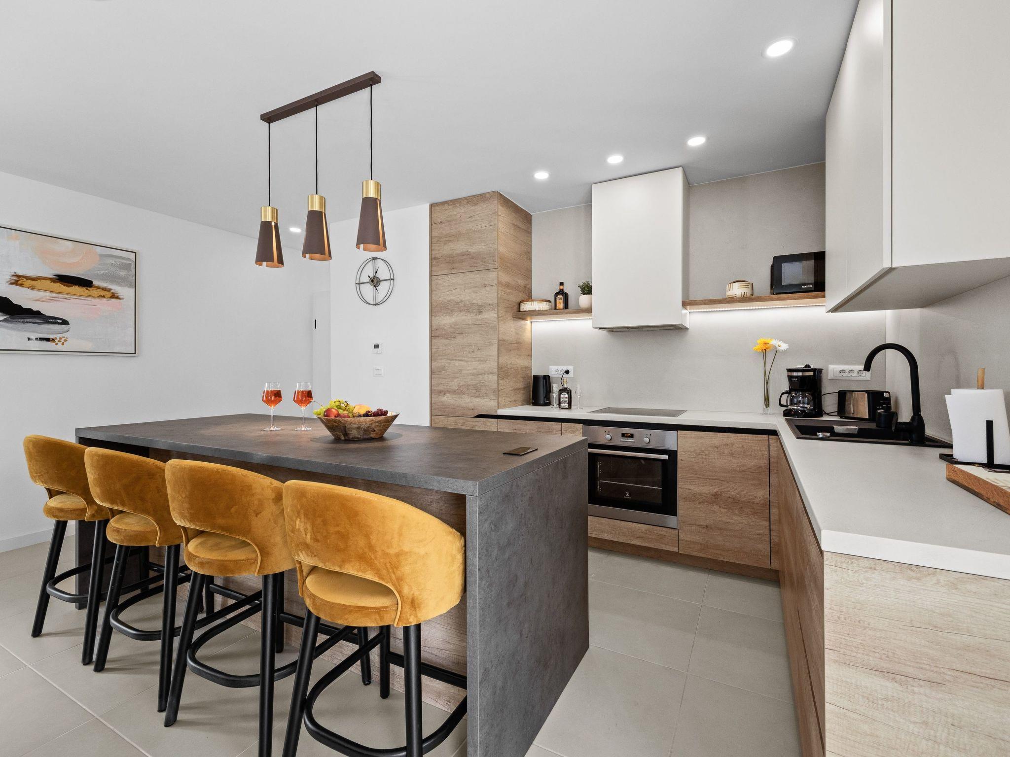 Inside this welcoming haven, each room is equipped with underfloor heating, ensuring a cozy environment regardless of the season. The villa comes fully furnished with essential modern conveniences such as a washing machine and a clothes dryer, both for exclusive use within the property. For those who enjoy preparing their own meals, the kitchen is a delight, featuring a dishwasher, coffee machine, and electric kettle, making both cooking and cleanup a breeze.