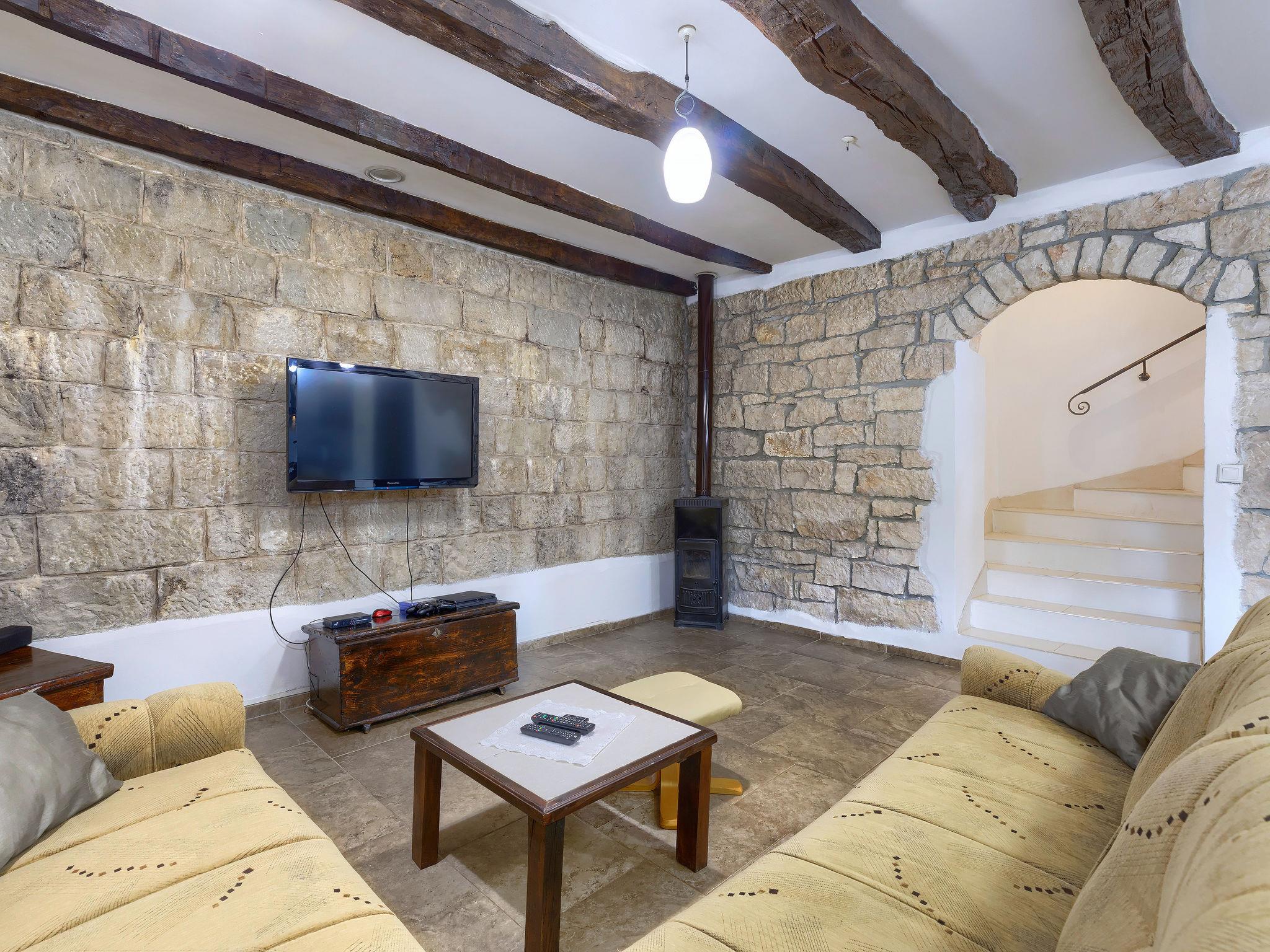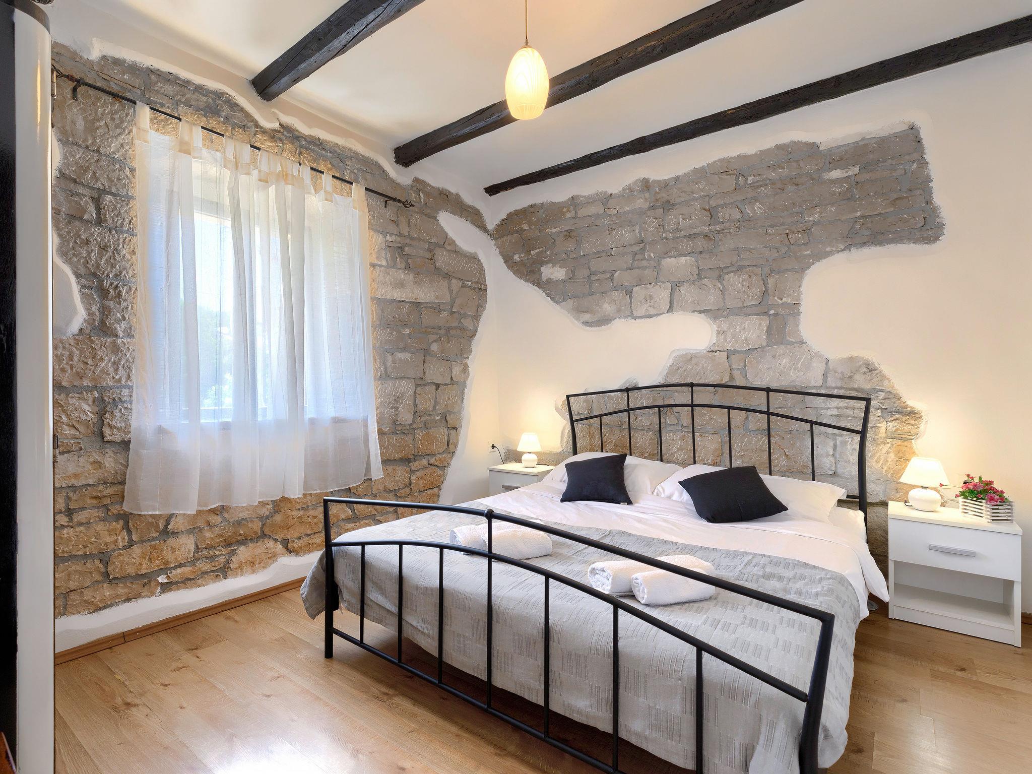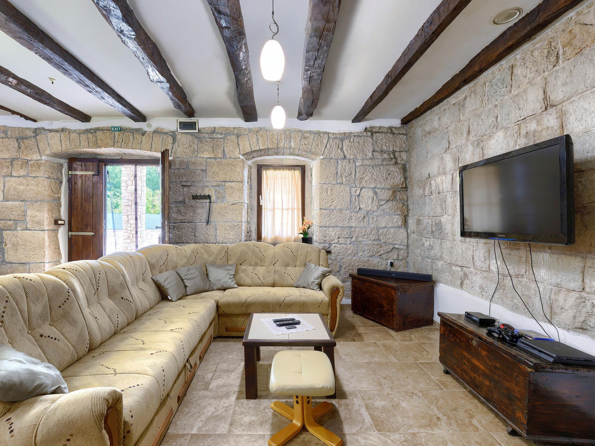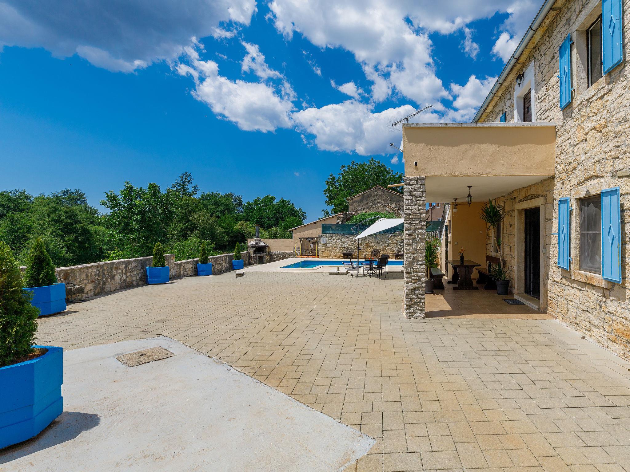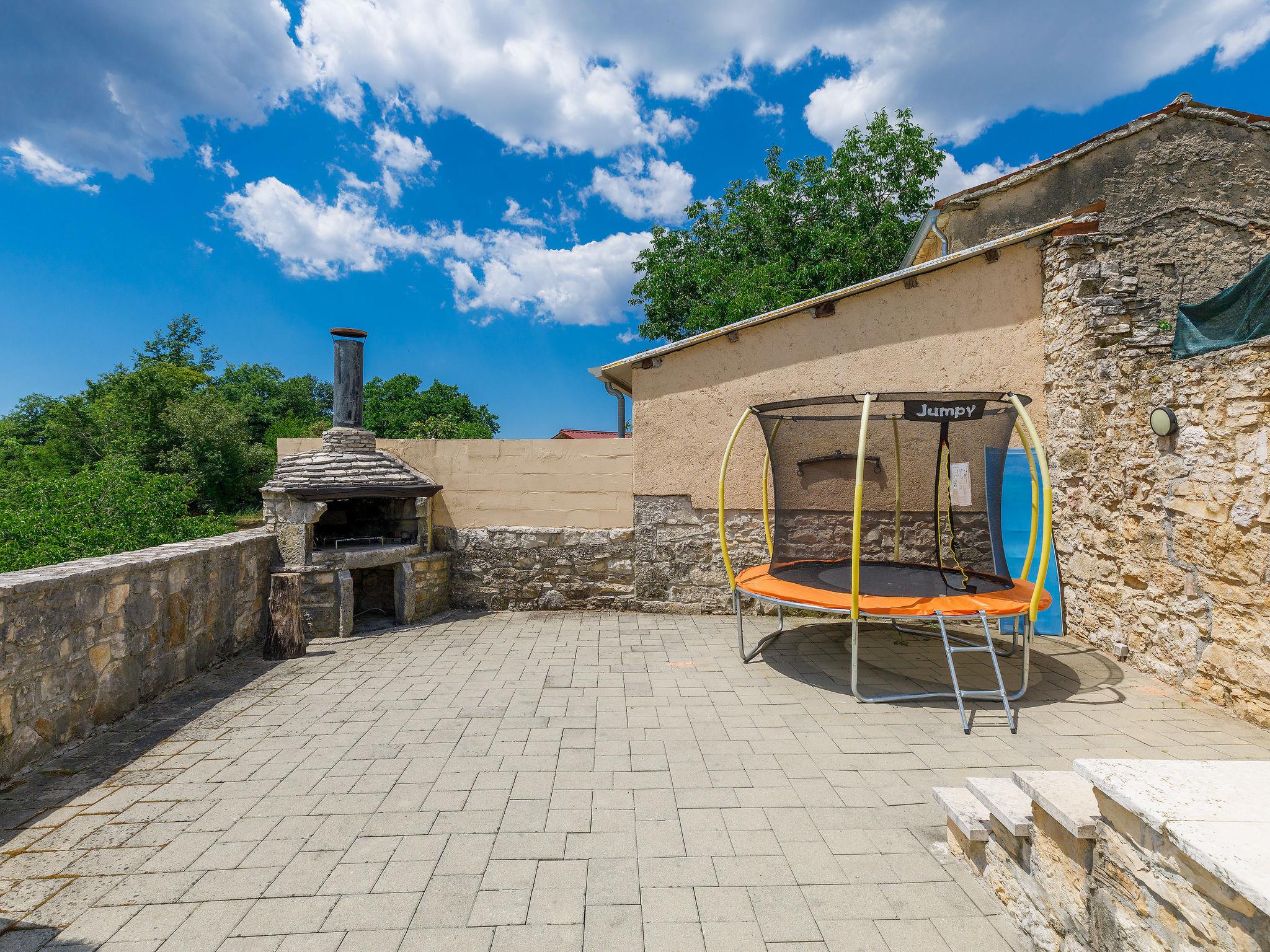 Frankovici 10 km from Motovun: Single-family house "Šterna", 2 storeys. In the hamlet Frankovici 8 km from the centre of Pazin, 30 km from the sea, in the countryside. Private: property 300 m2 (fenced), swimming pool angular (7 x 3 m, 24 m2, depth 140 cm, seasonal availability: 20.Apr. - 30.Sep.) with internal staircase. Shower/WC in the pool area, terrace, barbecue. In the house: internet access, table football, washing machine. Parking at the house on the premises. Shop 3 km, restaurant 3 km, bus stop 5 km, pebble beach 30 km. Please note: animals in the neighbourhood. Village with farms and domestic animals.
