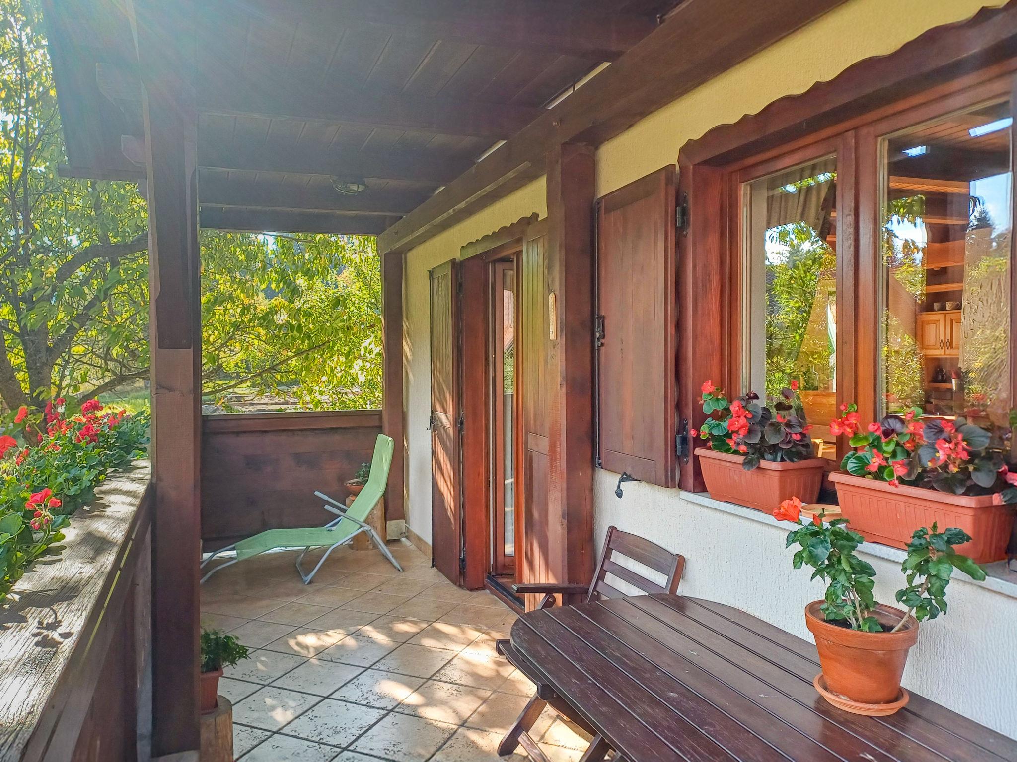 3-room chalet 140 m2 on 2 levels. Wooden furniture furnishings: living/dining room with open-hearth fireplace (only for decoration), dining table and satellite TV. Exit to the balcony. Open kitchen (1 hot plate, oven, dishwasher, Gas stove, 3 gas rings, toaster, freezer, electric coffee machine). Shower/WC. Upper floor: 2 rooms with sloping ceilings, ceiling height 120 - 200 cm, each room with 2 french beds (180 cm, length 200 cm). Exit to the balcony with 1 sofabed (120 cm, length 200 cm). Shower/bidet/WC, double hand-basin. Floor heating. 2 balconies 10 m2. Terrace furniture, balcony furniture, barbecue, deck chairs (2). Facilities: hair dryer. Please note: non-smoking house. Maximum 1 pet/ dog allowed. Fire extinguisher.