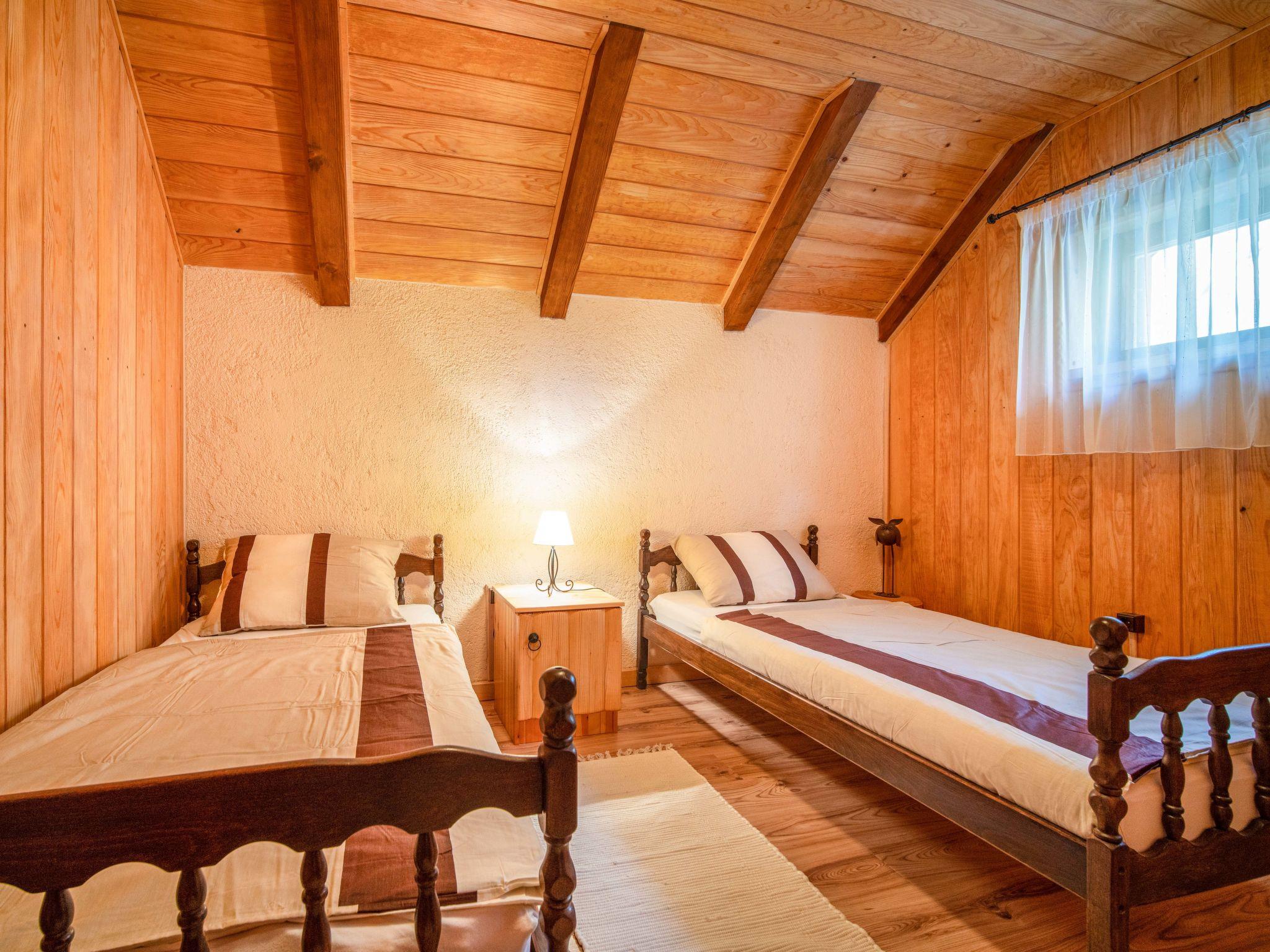 Lukovo 13 km from Fužine: Single-family house "Bazak", 2 storeys, surrounded by trees. In the hamlet Ravno, in a quiet, sunny position, 24 km from the sea, 14 km from the lake. Private: property 2'000 m2 with lawn 130 m2. Hot tub, barbecue house (swing). In the house: internet access, infrared sauna. Motor access (800 m via unmade road). Parking (for 3 cars) at the house on the premises. Shop 11 km, restaurant 1 km, bus stop 14.1 km, pebble beach 24 km, public bathing area 24 km. Riding stable 17 km, walking paths from the house 600 m, cycle lane 650 m. Well-known lakes can easily be reached: Bajer 14 km. The tap water has no drinking water quality.
