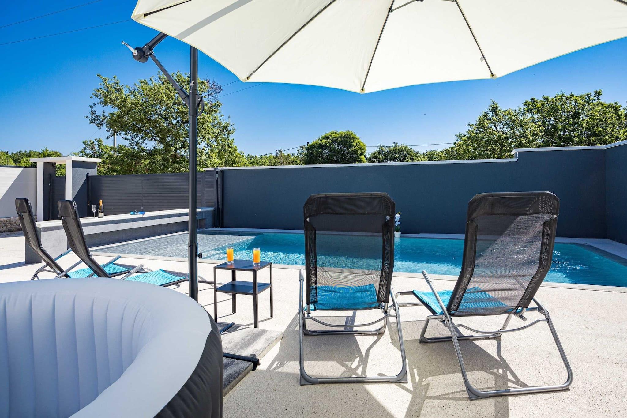Denne charmerende villa, beliggende i den fredfyldte landsby Batvaci nær Vodnjan, tilbyder et ideelt tilflugtssted for familier, der søger afslapning. Det har to soveværelser, et badeværelse, et fuldt udstyret køkken og en hyggelig stue med en sovesofa, der kan rumme op til 4 voksne og 2 børn. Gæsterne vil nyde en smuk indhegnet gård med en opvarmet swimmingpool, udendørs bruser og jacuzzi, perfekt til at slappe af i privatlivets fred. Det udendørs køkken og spiseplads, sammen med en grill, er beliggende ved poolen under et tag, og tilbyder behagelig skygge på de varme sommerdage. Villaen tilbyder gratis privat parkering til to biler, og kæledyr er velkomne mod et tillægsgebyr. Villaen er bekvemt placeret i nærheden af Vodnjan, en by rig på historie, med attraktioner såsom St. Blaž-kirken, som har det højeste klokketårn i Istrien og en samling af helgenrelikvier og mumier. Vodnjan tilbyder også et museum i et palads fra det 14. århundrede og en oliemølle, hvor besøgende kan købe lokalt fremstillet olivenolie. Den nærmeste strand, Barbariga, ligger kun 2,5 kilometer væk og byder på muligheder for svømning, snorkling, kajaksejlads og dykning. Fažana, der ligger et par kilometer syd, giver færgeadgang til Brijuni National Park, kendt for sin fantastiske nedsænkede flora og fauna, safaripark, museer og romerske ruiner. Yderligere faciliteter omfatter aircondition, internetadgang og mulighed for at opvarme poolen mod et gebyr. Der opkræves et refunderbart depositum ved ankomsten. Gæsterne kan nyde en afslappende familieferie i private og fredelige omgivelser med adskillige aktiviteter og attraktioner i nærheden, herunder kulturelle vartegn og udendørs eventyr.