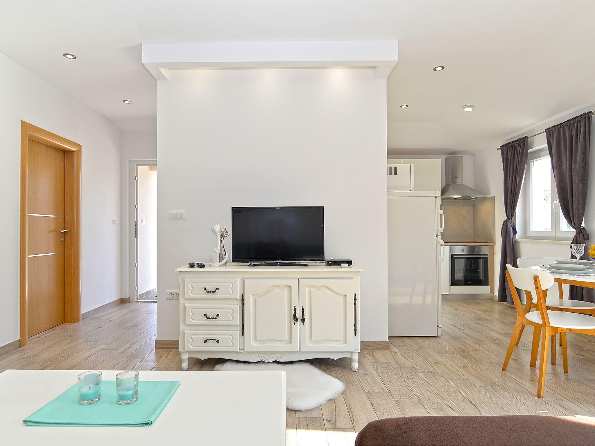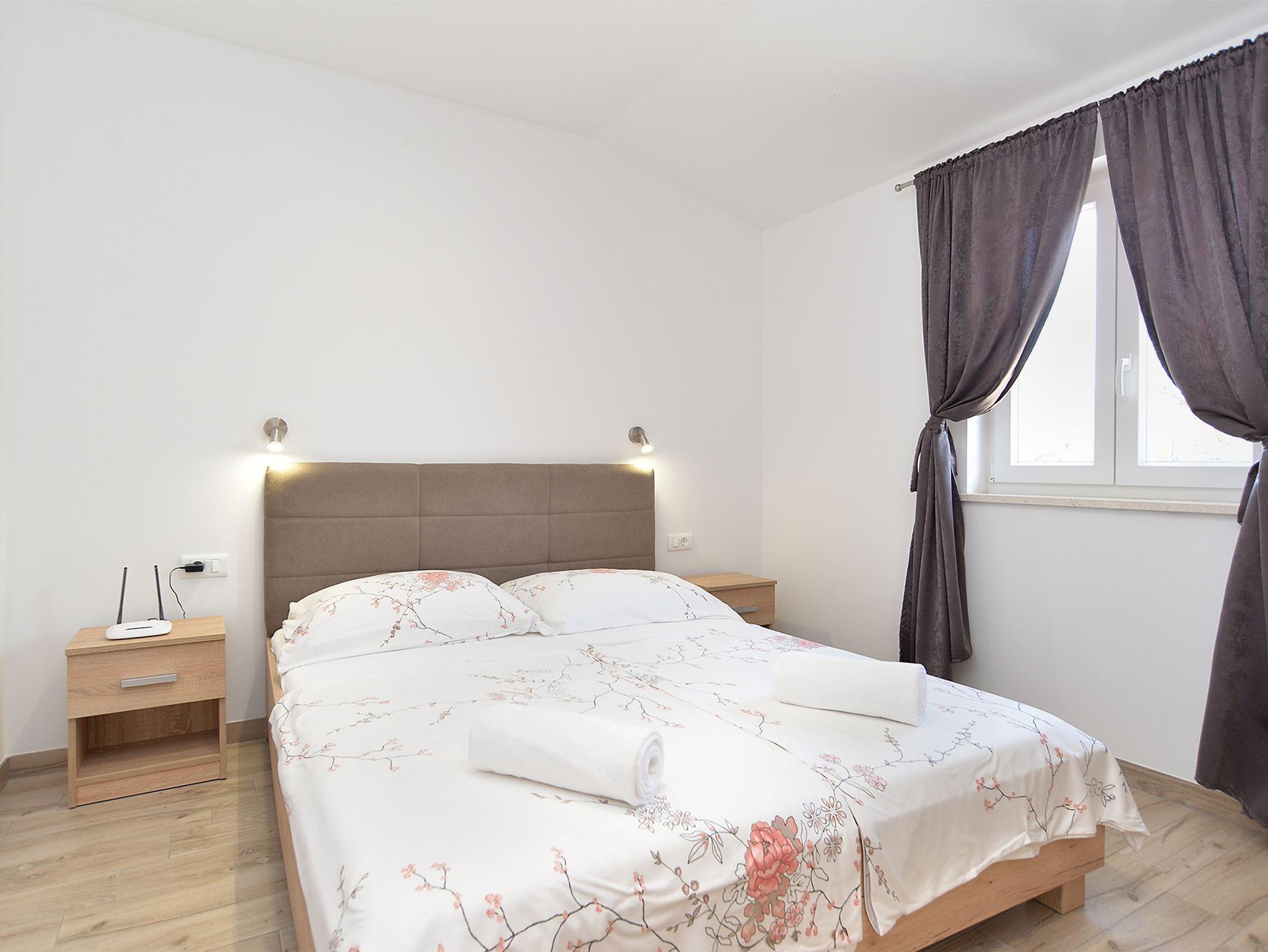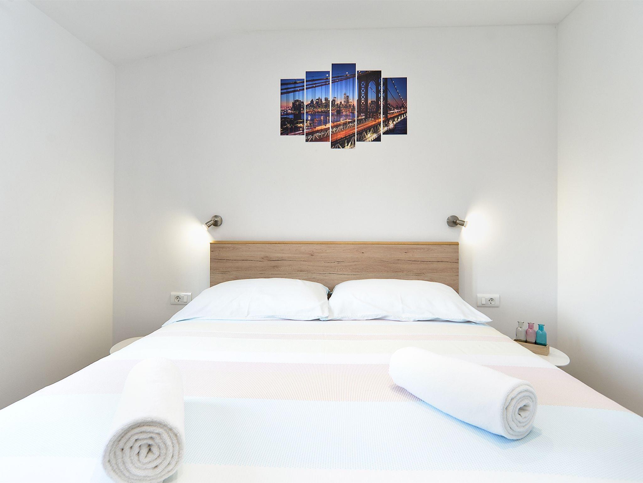 Haus bietet Platz für 6 Gäste. Die Betten sind in Schlafzimmern, die es 2 gibt, und in Wohnzimmer, innerhalb einer Gesamtfläche von 51m2, angeordnet. Die Gäste haben eine eigene Terrasse zur Verfügung, auf der sie in warmen Sommernächten genießen können. Für vollen Genuss und Entspannung gibt es einen privaten Grill für Gäste dieser Unterkunft. IM PREIS INBEGRIFFEN: Kurtaxe, Endreinigung, Klimatisierung, Parkplatz, Internet, Bügeleisen. Die Verfügbarkeit zusätzlicher Dienstleistungen in Ihrem reservierten Termin und die Preise derselben (falls nicht aufgeführt) müssen im Voraus überprüft werden. Zusätzliche Dienstleistungen die in der Zahlungsaufforderung nicht aufgeführt sind werden direkt beim Vermieter bezahlt, angenommen der Gast nutzt auch diese.