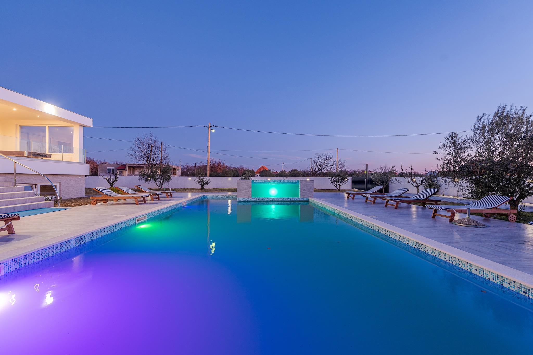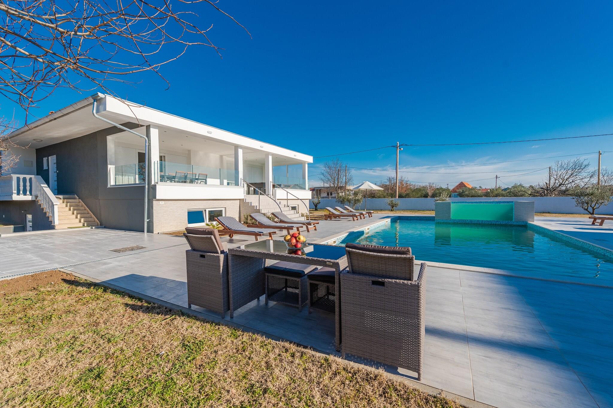 Denne smukke nybyggede sommerhus ligger kun 15 km fra Zadar i en fredelig landsby Galovac. Feriehus Giovanni er en perfekt indkvartering til op til 12 personer, der tilbyder sine gæster 2 smukke villaer, enestående, privat swimmingpool med jacuzzi og rummelig 2800 indhegnet have med grillfaciliteter. Huset har en moderne stue / spisestue med fuldt udstyret køkken, 3 komfortable soveværelser og 2 moderne badeværelser. Der er en dejlig overdækket terrasse godt udstyret med udendørs møbler. Anden villa tilbyder fuldt udstyret lejlighed med to soveværelser, dejlig spisestue med stort træbord og åben pejs samt stor privat terrasse. Rummelig have med 72m pool og udendørs jacuzzi , solterrasse med liggestole og solskin, charmerende terrasse med grill er ideel til dine afslappende øjeblikke med venner og familie. Du kan nå Adriaterhavet i kort en 10 minutters kørsel med bil; her kan du vælge mellem sand-, sten- eller stenstrande. På mindre end 45 minutters kørsel kan du besøge to nationalparker: Krka vandfald og Paklenica. Daglige udflugter til Kornati National Park er organiseret fra Zadar, som også er et attraktivt turistmål værd at besøge for sine gamle kirker, interessante museer og gode restauranter.