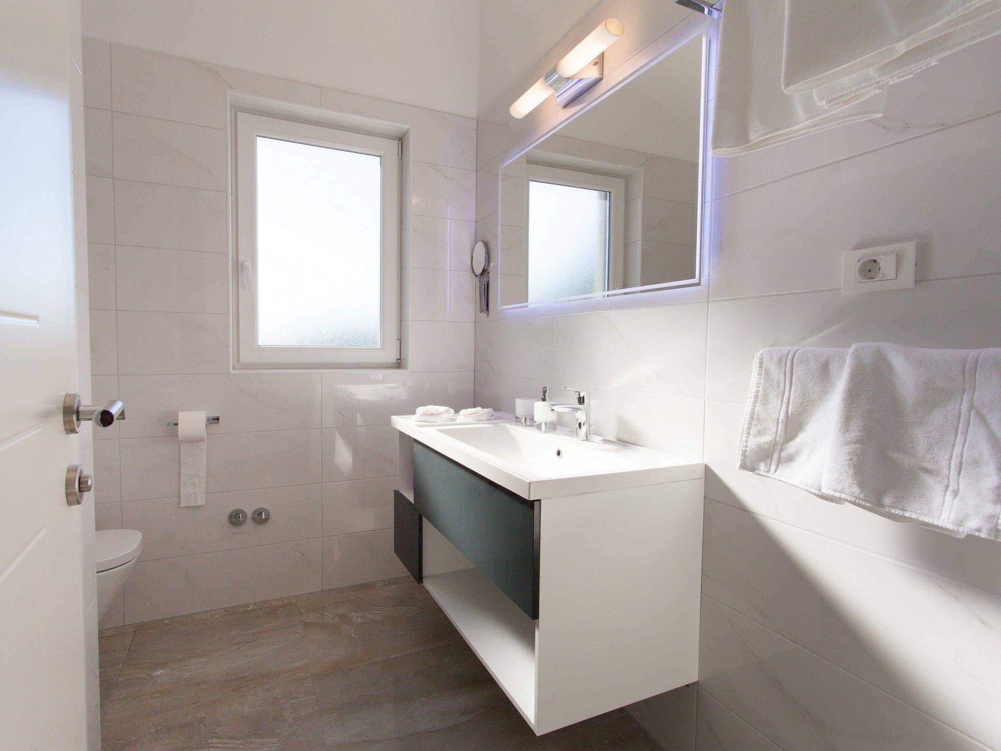 This beautifully furnished modern house surrounded by greenery is situated in Risika, a small village close to Vrbnik, in a quiet environment, ideal for a relaxing holiday. In a 1000 m2 courtyard is situated a spacious house on 180 m2 with swimming pool, bower with grill and gathering place. A spacious terrace is linked to a comfortable living room with a fireplace, dining area and fully equipped kitchen. On the ground floor, there is an extra toilet as well as one bedroom with a private bathroom. On the first floor, there is the sleeping area where are two double bedrooms, two bathrooms with showers and a sleeping sofa for two children. Guests have on disposal a parking place. All rooms are air-conditioned whilst guests on disposal have also WI-FI, TV-SAT, dishwasher and washing machine. Distance from the sandy beach Sveti Marak in Risika is approx. 2000 m. Pets are allowed on a request and additional charge.