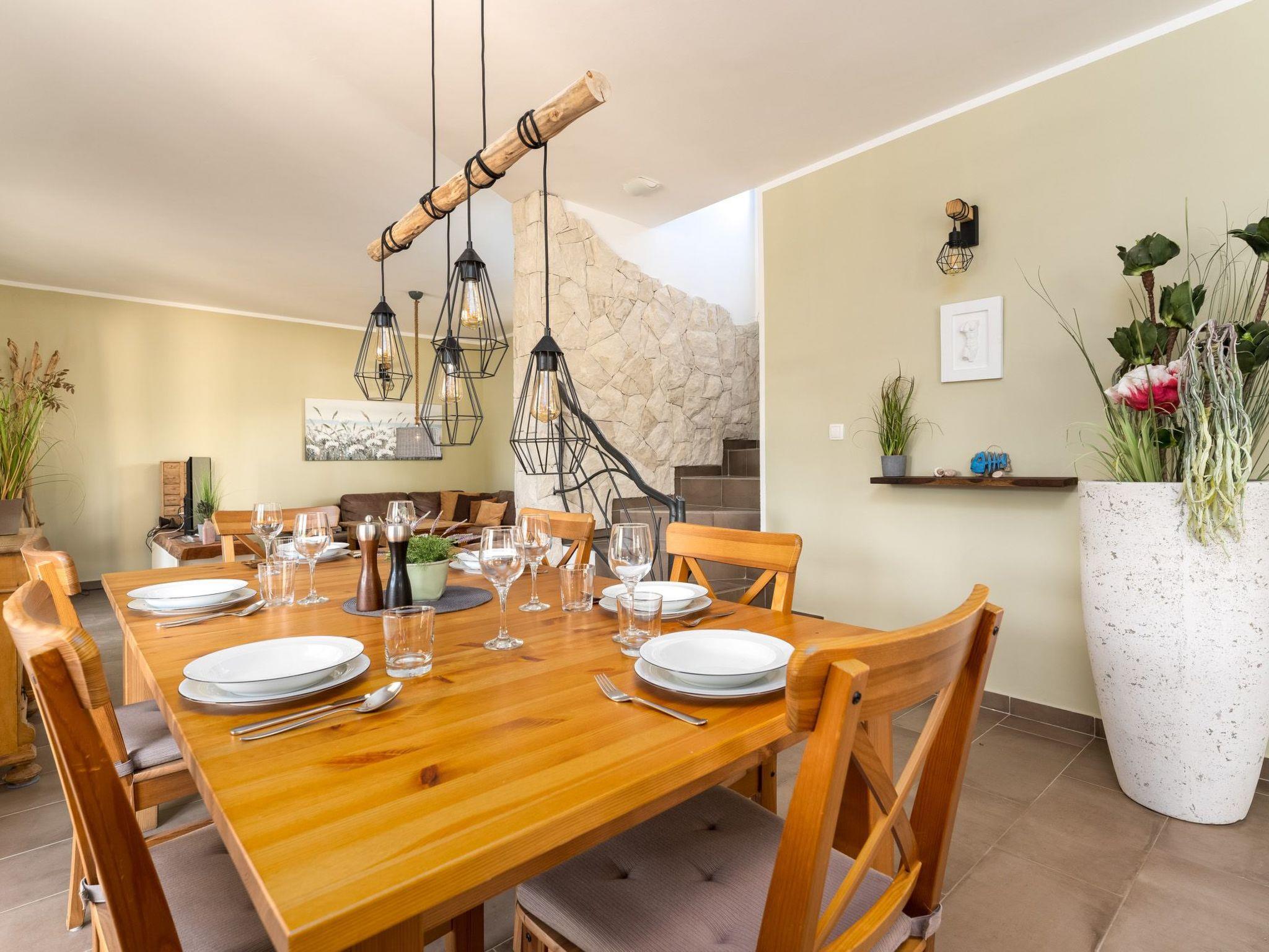 This luxuriously furnished villa is located in the center of the island of Krk, in the village of Garica. The total area is 150 m2. On the ground floor there is a living room, a dining room, a fully equipped kitchen and a toilet. Upstairs there are three bedrooms each with private bathroom, air conditioning and TV.