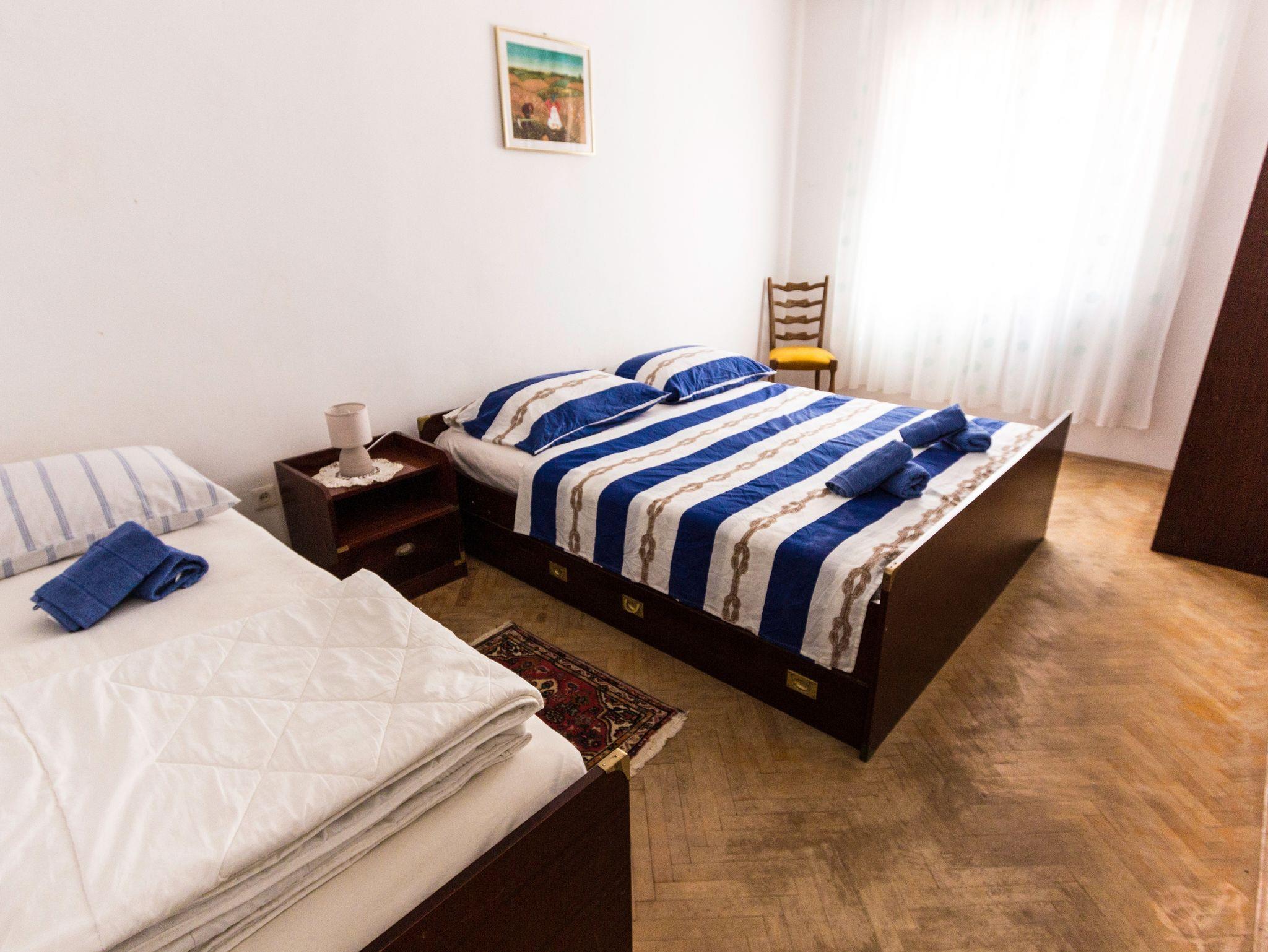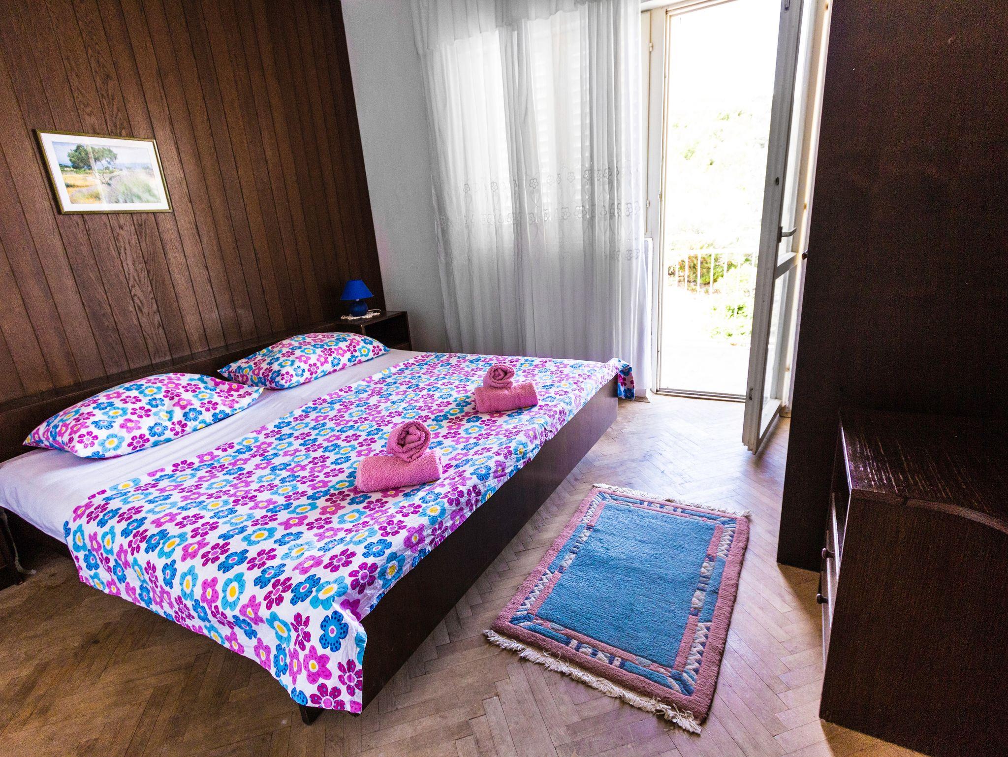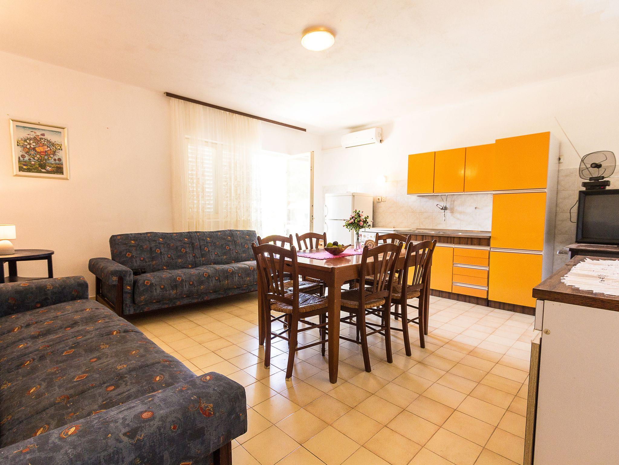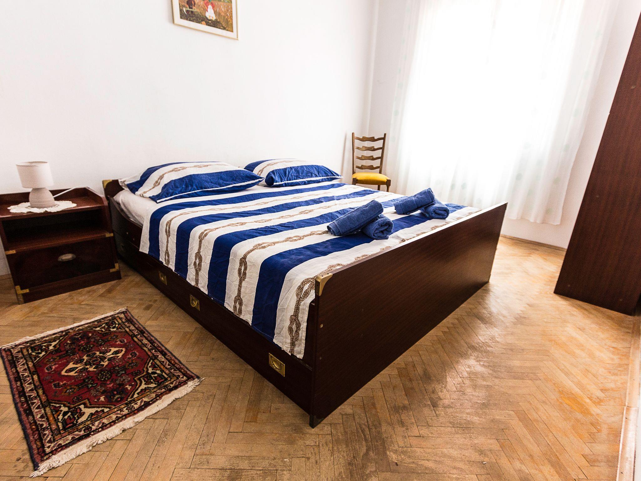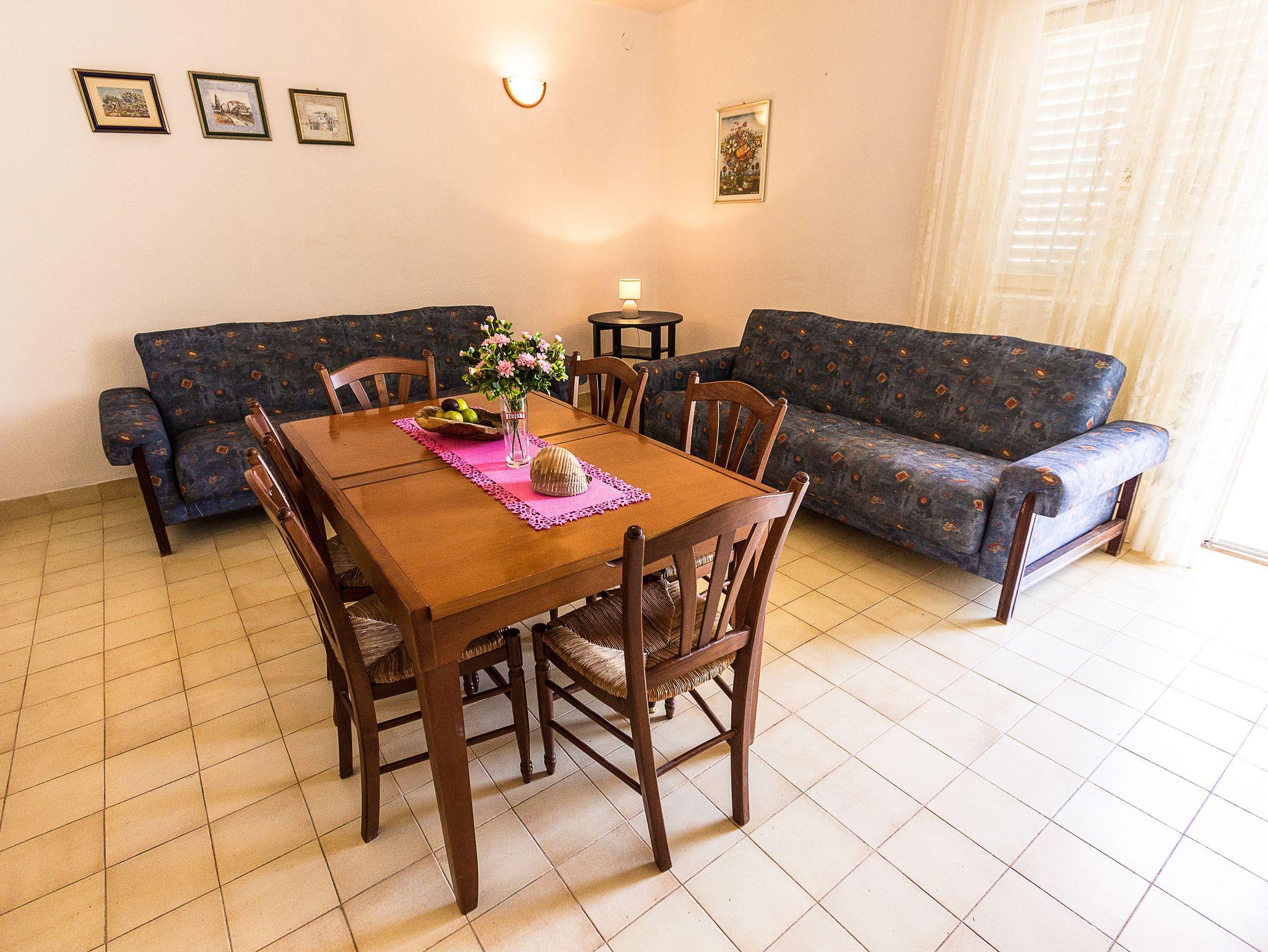 Ferienwohnung bietet Platz für 6 Gäste. Die Betten sind in Schlafzimmern, die es 2 gibt, und in Esszimmer, innerhalb einer Gesamtfläche von 62m2, angeordnet. Die Gäste haben einen eigenen Balkon zur Verfügung, auf der sie in warmen Sommernächten genießen können. Das Apartment bietet Meerblick. In der Unterkunftseinheit besteht die Möglichkeit des Mitbringens von Haustieren gegen Aufpreis. IM PREIS INBEGRIFFEN: Kurtaxe, Endreinigung, Klimatisierung, Parkplatz, Internet, Bootsanlegeplatz, Bügeleisen, Föhn. VERBINDLICHE ZUSÄTZLICHE KOSTEN: Aufzahlung für Kurzaufenthalte (prozentualer Zuschlag pro Nächtigungsanzahl: 30% - 1, 20% - 2, 10% - 3). UNVERBINDLICHE ZUSÄTZLICHE KOSTEN: Haustiere (10,00 € pro Nacht). Die Verfügbarkeit zusätzlicher Dienstleistungen in Ihrem reservierten Termin und die Preise derselben (falls nicht aufgeführt) müssen im Voraus überprüft werden. Zusätzliche Dienstleistungen die in der Zahlungsaufforderung nicht aufgeführt sind werden direkt beim Vermieter bezahlt, angenommen der Gast nutzt auch diese.