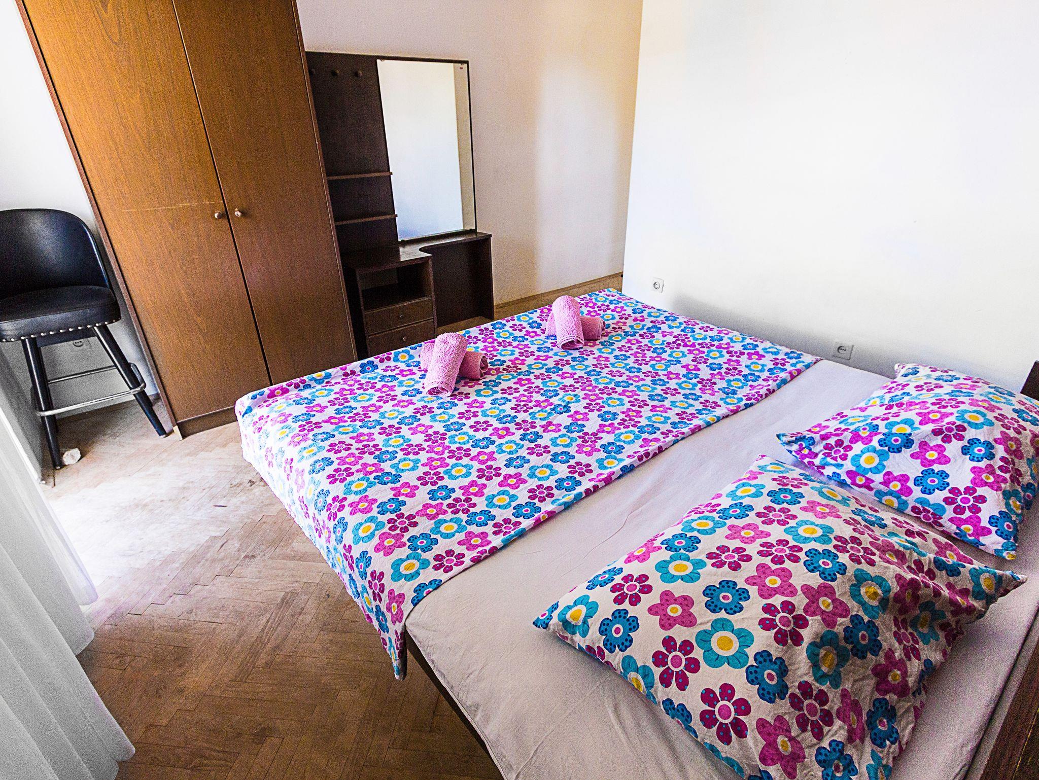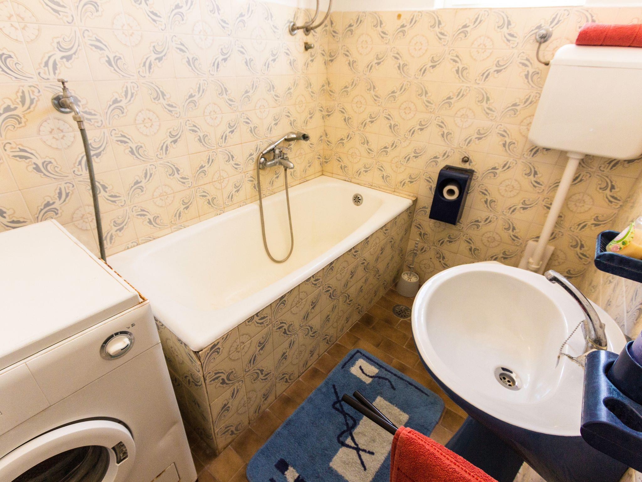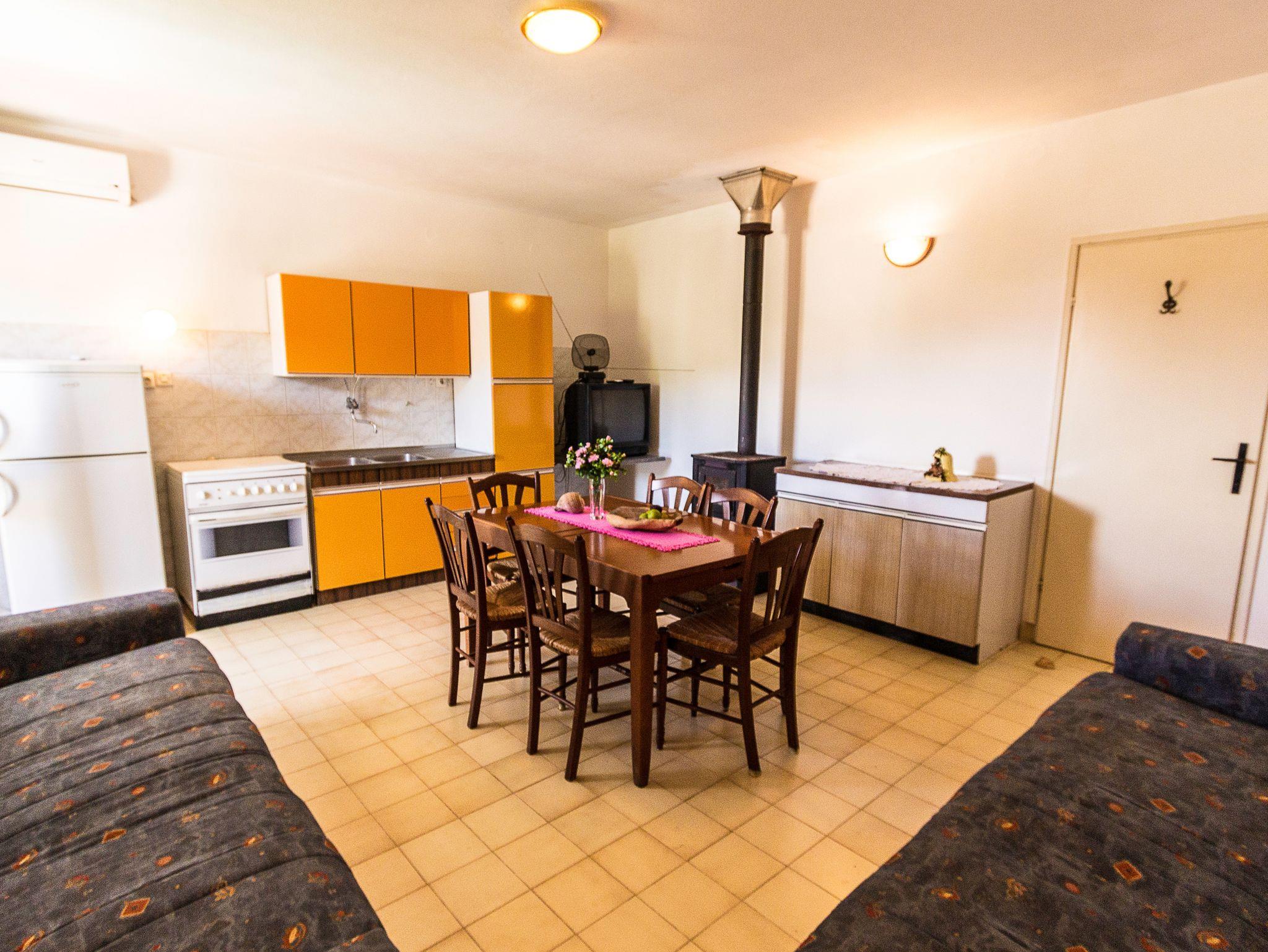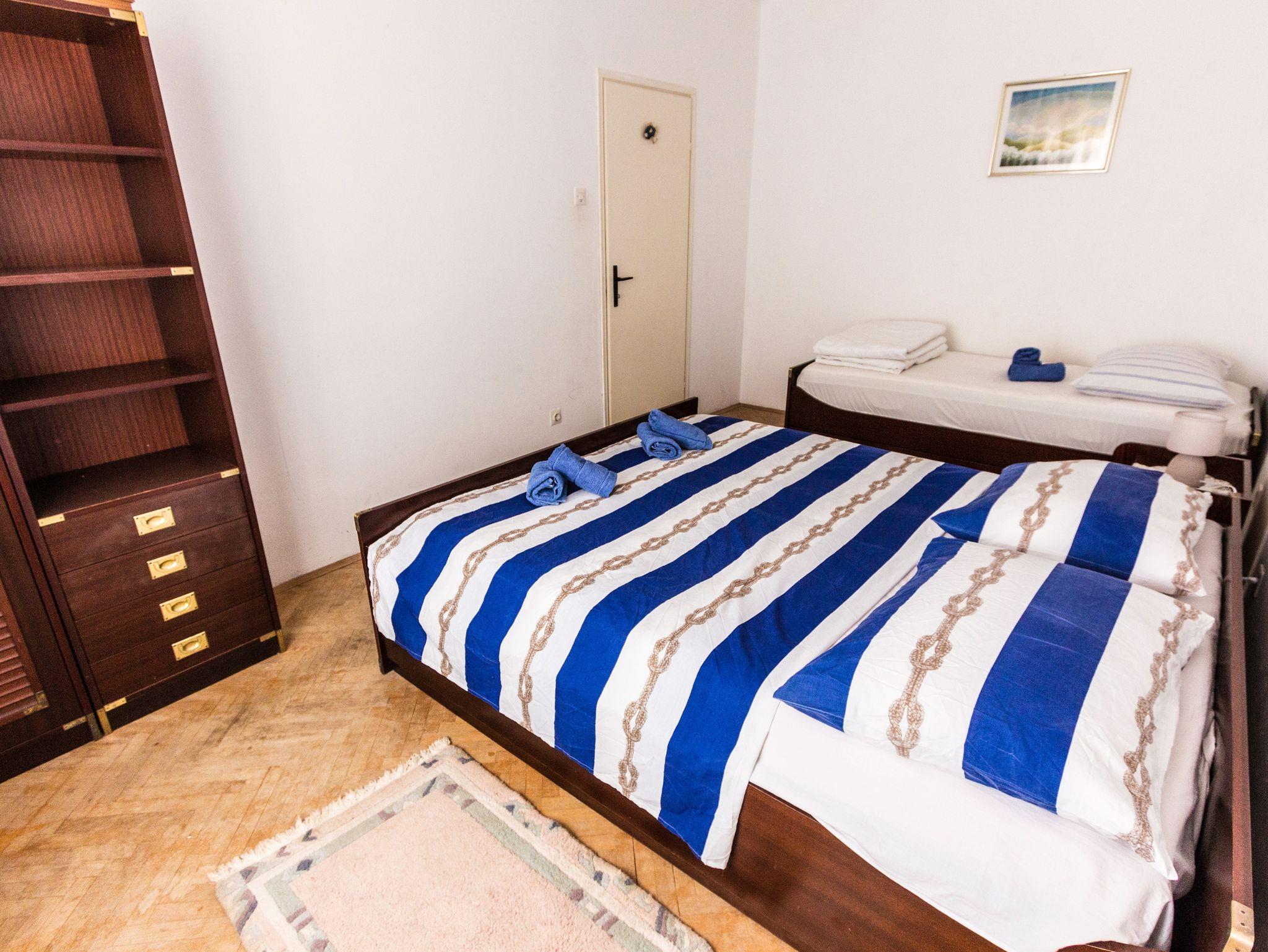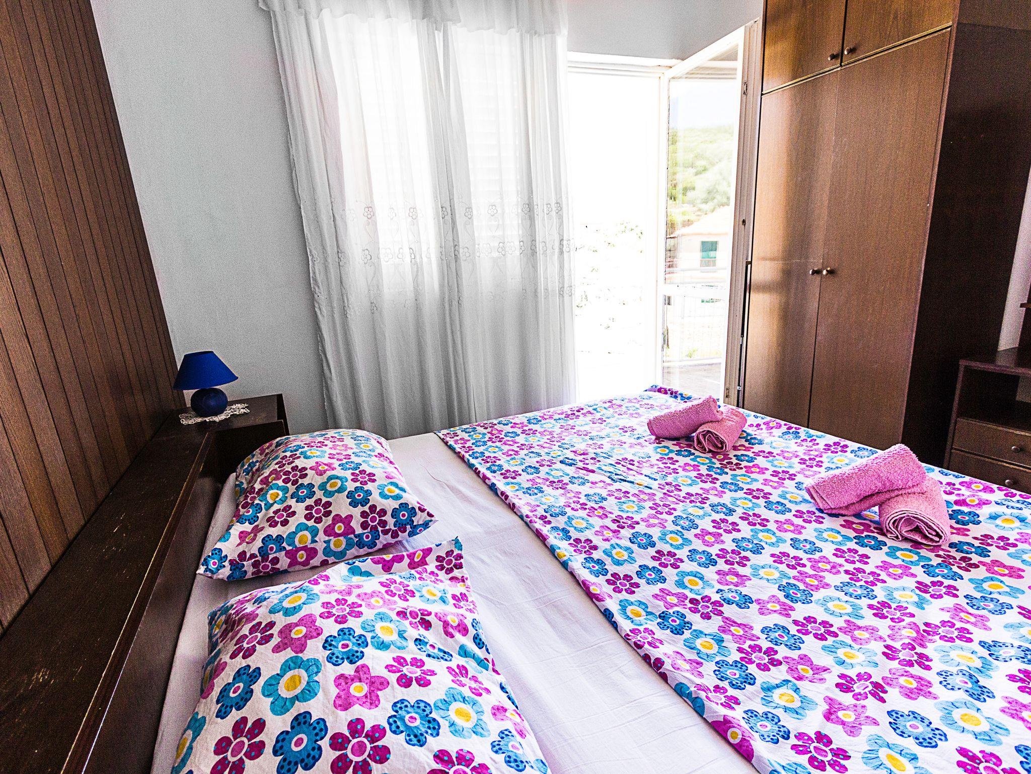 Ferienwohnung bietet Platz für 6 Gäste. Die Betten sind in Schlafzimmern, die es 2 gibt, und in Esszimmer, innerhalb einer Gesamtfläche von 62m2, angeordnet. Die Gäste haben einen eigenen Balkon zur Verfügung, auf der sie in warmen Sommernächten genießen können. Das Apartment bietet Meerblick. In der Unterkunftseinheit besteht die Möglichkeit des Mitbringens von Haustieren gegen Aufpreis. IM PREIS INBEGRIFFEN: Kurtaxe, Endreinigung, Klimatisierung, Parkplatz, Internet, Bootsanlegeplatz, Bügeleisen, Föhn. VERBINDLICHE ZUSÄTZLICHE KOSTEN: Aufzahlung für Kurzaufenthalte (prozentualer Zuschlag pro Nächtigungsanzahl: 30% - 1, 20% - 2, 10% - 3). UNVERBINDLICHE ZUSÄTZLICHE KOSTEN: Haustiere (10,00 € pro Nacht). Die Verfügbarkeit zusätzlicher Dienstleistungen in Ihrem reservierten Termin und die Preise derselben (falls nicht aufgeführt) müssen im Voraus überprüft werden. Zusätzliche Dienstleistungen die in der Zahlungsaufforderung nicht aufgeführt sind werden direkt beim Vermieter bezahlt, angenommen der Gast nutzt auch diese.