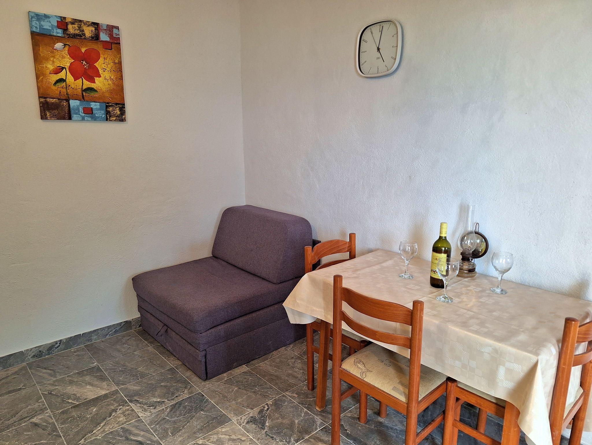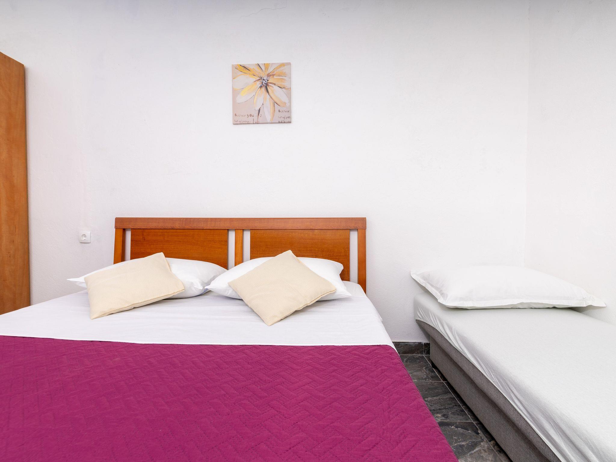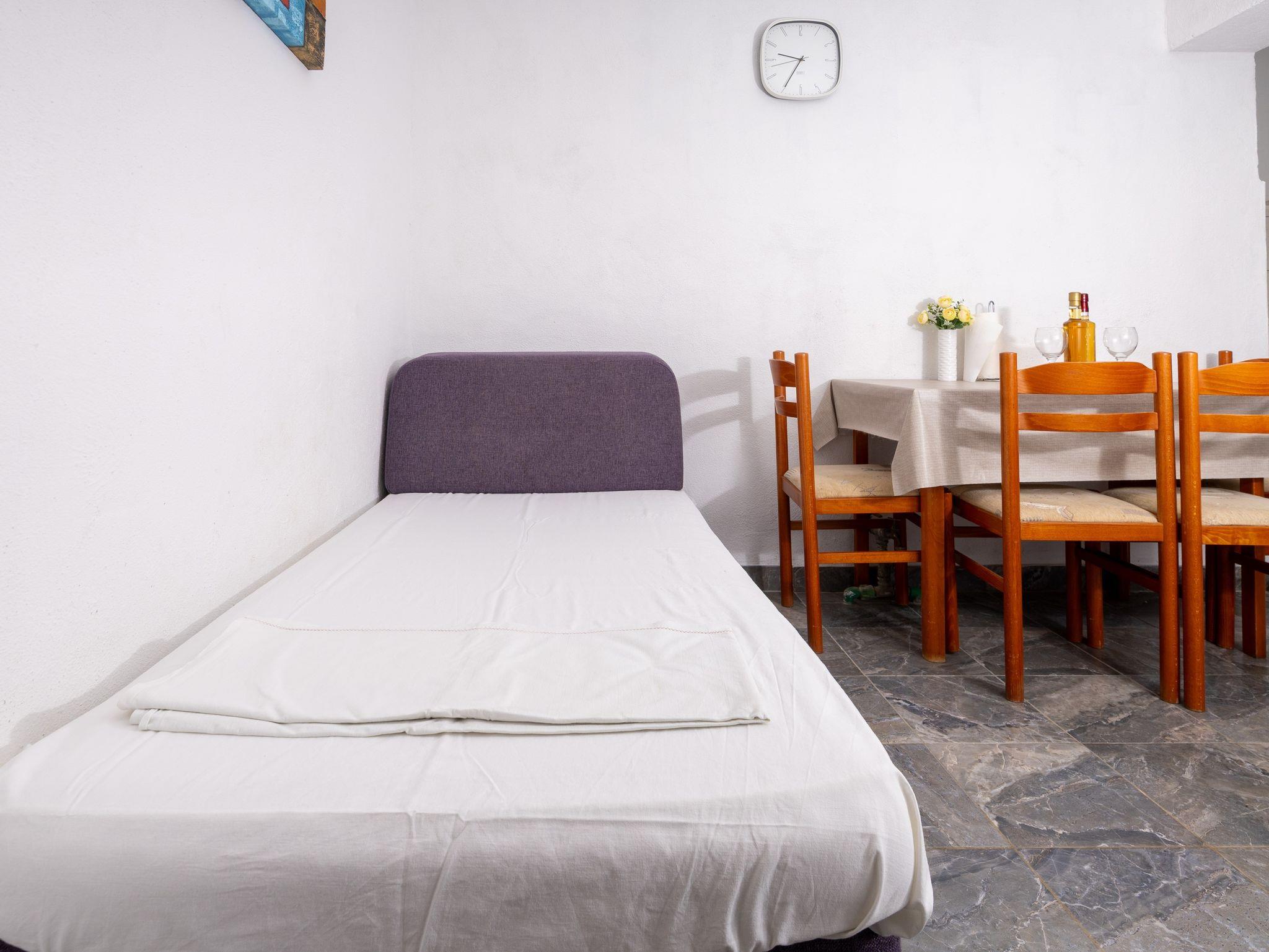 Ferienwohnung bietet Platz für 4 Gäste. Die Betten sind in Schlafzimmern, die es 1 gibt, und in Esszimmer, innerhalb einer Gesamtfläche von 34m2, angeordnet. Die Gäste haben eine eigene Terrasse zur Verfügung, auf der sie in warmen Sommernächten genießen können. Das Apartment bietet Meerblick. Es ist erlaubt, Speisen auf dem Gemeinschafts-Grill vorzubereiten. IM PREIS INBEGRIFFEN: Kurtaxe, Endreinigung, Parkplatz, Internet, Bootsanlegeplatz, Kinderbett. VERBINDLICHE ZUSÄTZLICHE KOSTEN: Aufzahlung für Kurzaufenthalte (prozentualer Zuschlag pro Nächtigungsanzahl: 30% - 1, 20% - 2, 10% - 3). Die Verfügbarkeit zusätzlicher Dienstleistungen in Ihrem reservierten Termin und die Preise derselben (falls nicht aufgeführt) müssen im Voraus überprüft werden. Zusätzliche Dienstleistungen die in der Zahlungsaufforderung nicht aufgeführt sind werden direkt beim Vermieter bezahlt, angenommen der Gast nutzt auch diese.