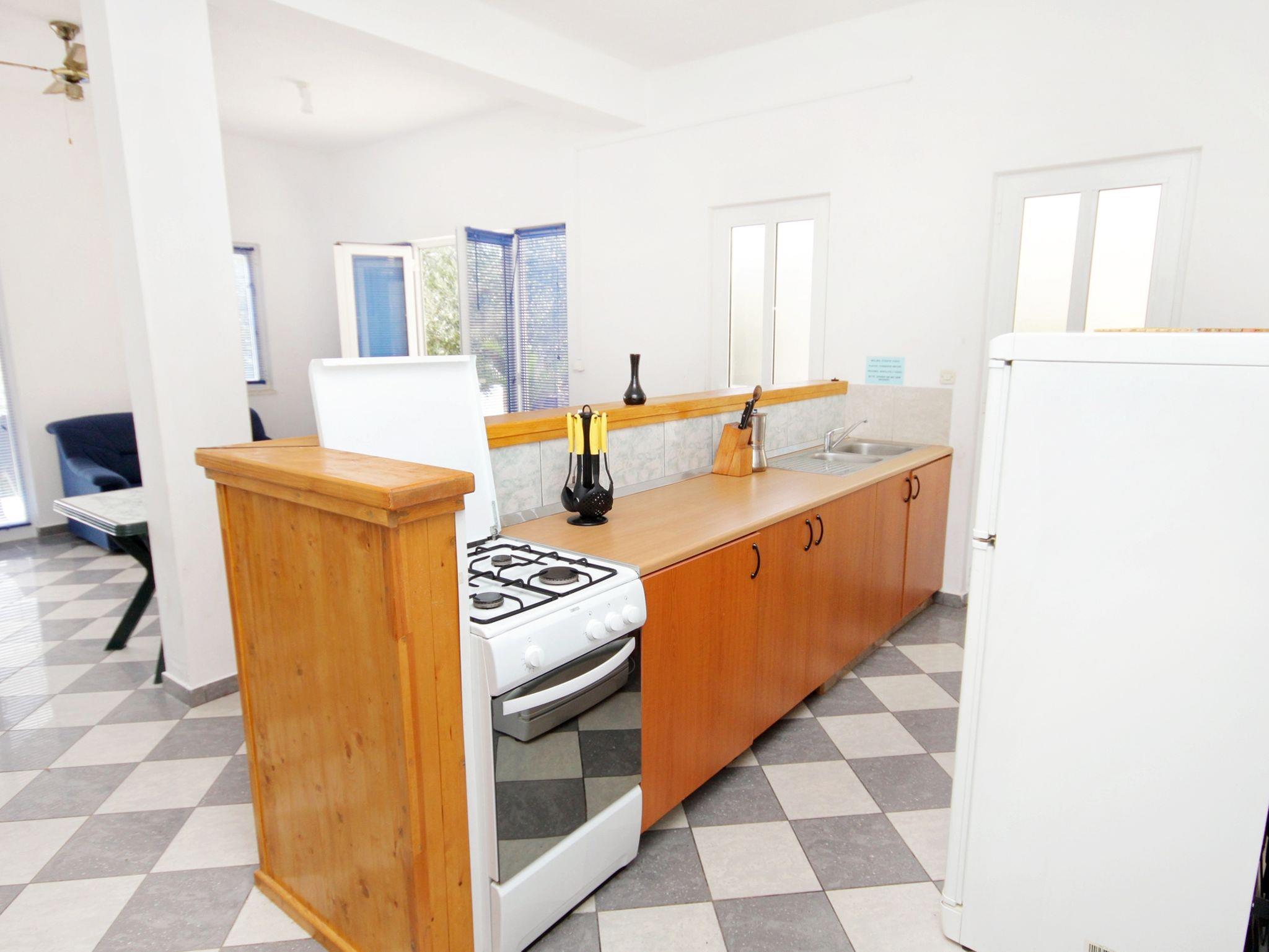 Ferienwohnung bietet Platz für 4 Gäste. Die Betten sind in Schlafzimmern, die es 1 gibt, und in Wohnzimmer, innerhalb einer Gesamtfläche von 53m2, angeordnet. Die Gäste haben eine eigene Terrasse zur Verfügung, auf der sie in warmen Sommernächten genießen können. Das Apartment bietet Meerblick. Es ist erlaubt, Speisen auf dem Gemeinschafts-Grill vorzubereiten. IM PREIS INBEGRIFFEN: Kurtaxe, Endreinigung, Parkplatz, Internet, Kinderbett, Föhn, Liegestühle. VERBINDLICHE ZUSÄTZLICHE KOSTEN: Aufzahlung für Kurzaufenthalte (prozentualer Zuschlag pro Nächtigungsanzahl: 30% - 1, 20% - 2, 10% - 3). UNVERBINDLICHE ZUSÄTZLICHE KOSTEN: Wäschewaschen (5,00 € Waschen), Bootsanlegeplatz (10,00 € pro Nacht), Zusatzbett (10,00 € pro Nacht). Die Verfügbarkeit zusätzlicher Dienstleistungen in Ihrem reservierten Termin und die Preise derselben (falls nicht aufgeführt) müssen im Voraus überprüft werden. Zusätzliche Dienstleistungen die in der Zahlungsaufforderung nicht aufgeführt sind werden direkt beim Vermieter bezahlt, angenommen der Gast nutzt auch diese.