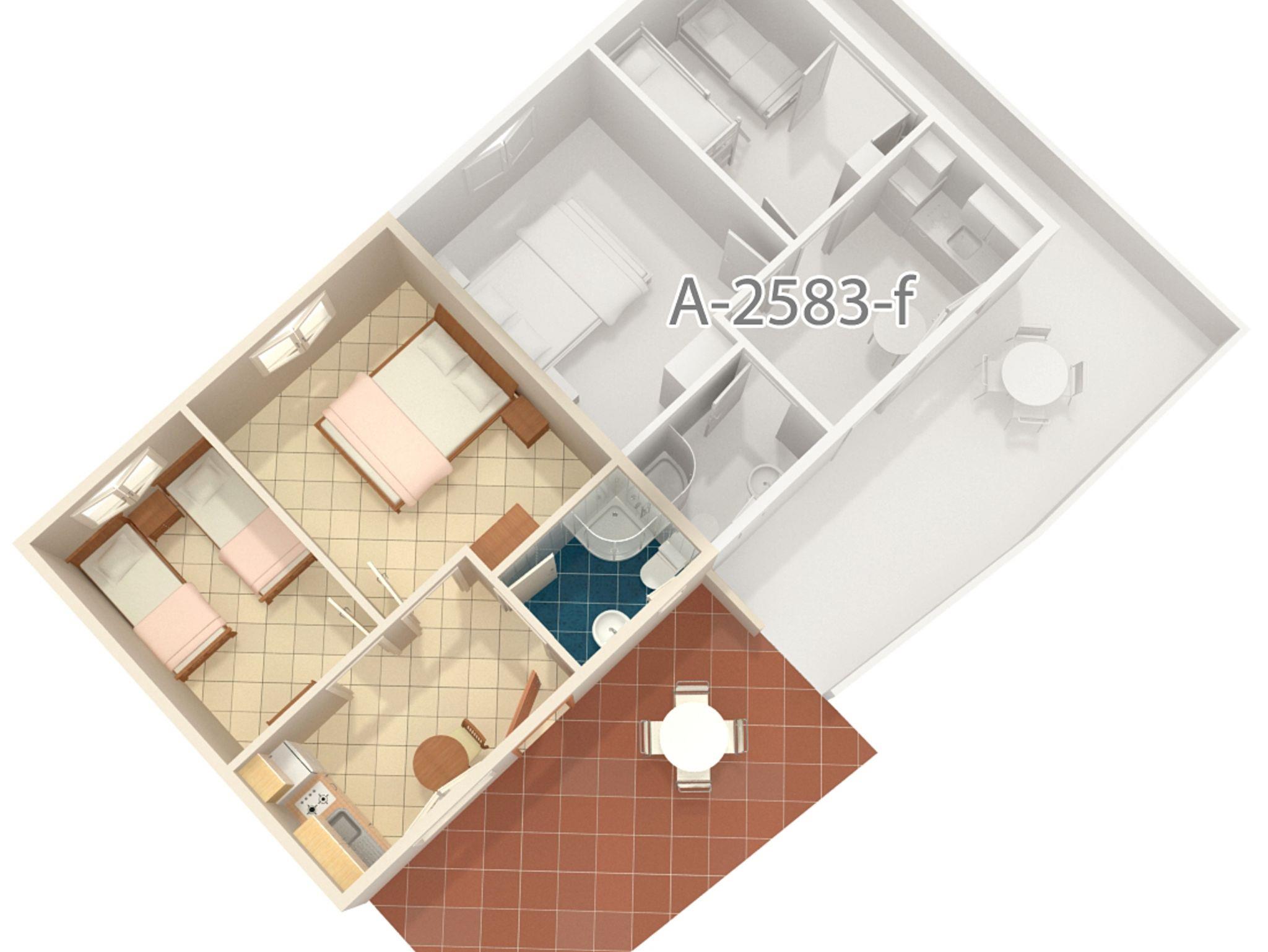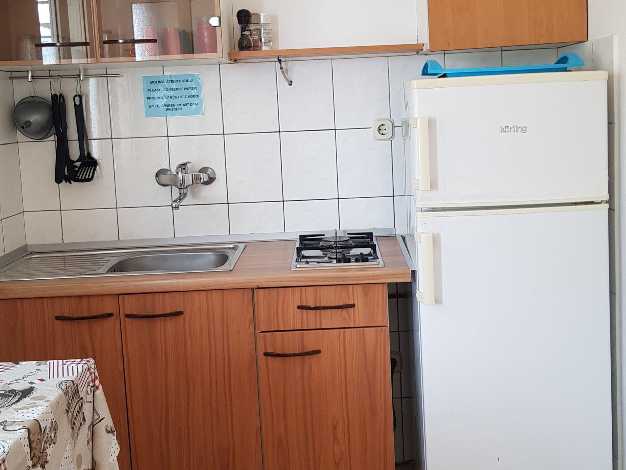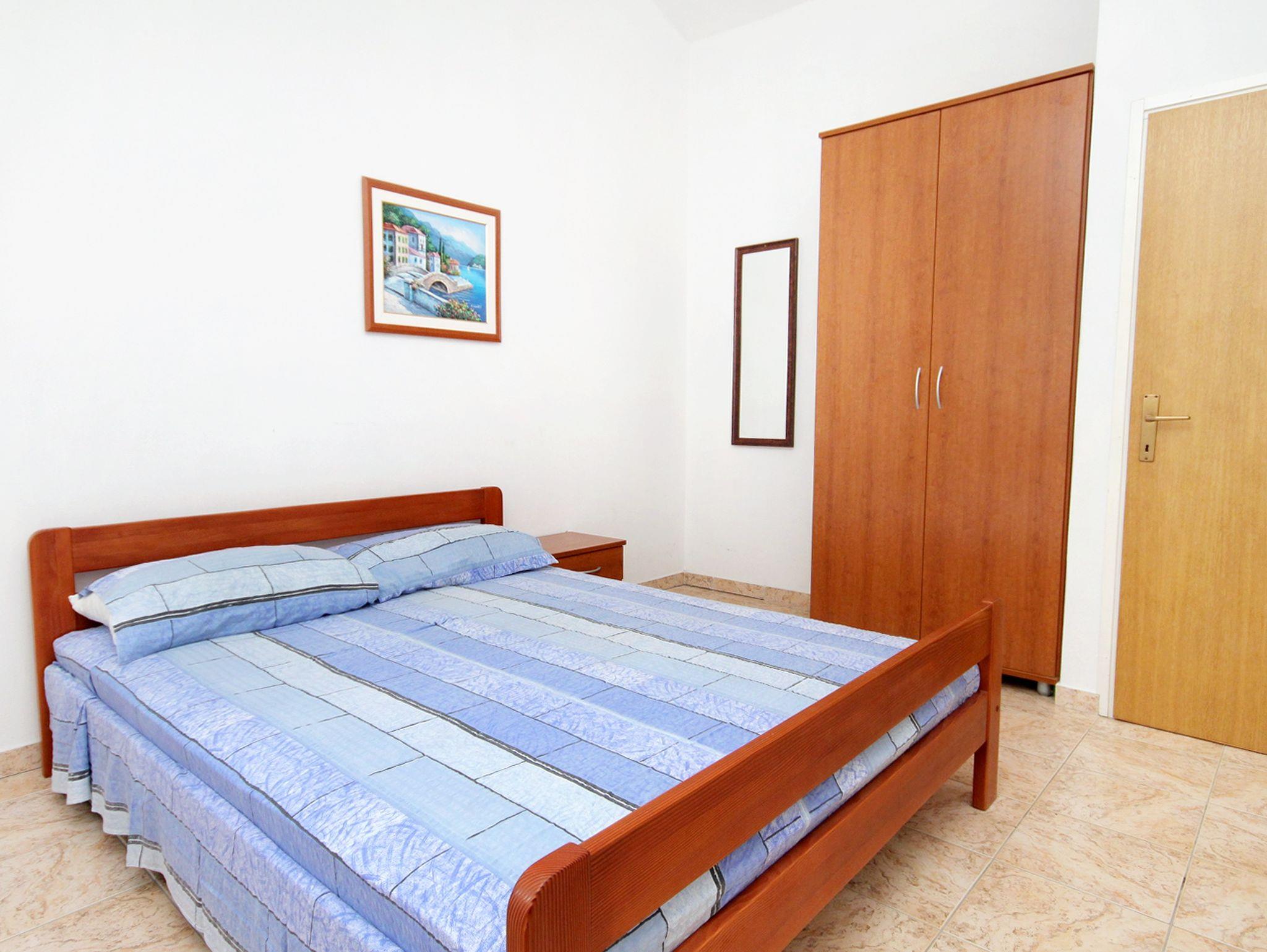 Ferienwohnung bietet Platz für 4 Gäste. Die Betten sind in Schlafzimmern, die es 2 gibt, innerhalb einer Gesamtfläche von 33m2, angeordnet. Die Gäste haben eine eigene Terrasse zur Verfügung, auf der sie in warmen Sommernächten genießen können. Das Apartment bietet Meerblick. Es ist erlaubt, Speisen auf dem Gemeinschafts-Grill vorzubereiten. Durch die Terrasse der gebuchten Unterkunftseinheit gehen auch andere Gäste oder Vermieter. IM PREIS INBEGRIFFEN: Kurtaxe, Endreinigung, Parkplatz, Internet, Kinderbett, Föhn, Liegestühle. VERBINDLICHE ZUSÄTZLICHE KOSTEN: Aufzahlung für Kurzaufenthalte (prozentualer Zuschlag pro Nächtigungsanzahl: 30% - 1, 20% - 2, 10% - 3). UNVERBINDLICHE ZUSÄTZLICHE KOSTEN: Wäschewaschen (5,00 € Waschen), Bootsanlegeplatz (10,00 € pro Nacht), Zusatzbett (10,00 € pro Nacht). Die Verfügbarkeit zusätzlicher Dienstleistungen in Ihrem reservierten Termin und die Preise derselben (falls nicht aufgeführt) müssen im Voraus überprüft werden. Zusätzliche Dienstleistungen die in der Zahlungsaufforderung nicht aufgeführt sind werden direkt beim Vermieter bezahlt, angenommen der Gast nutzt auch diese.