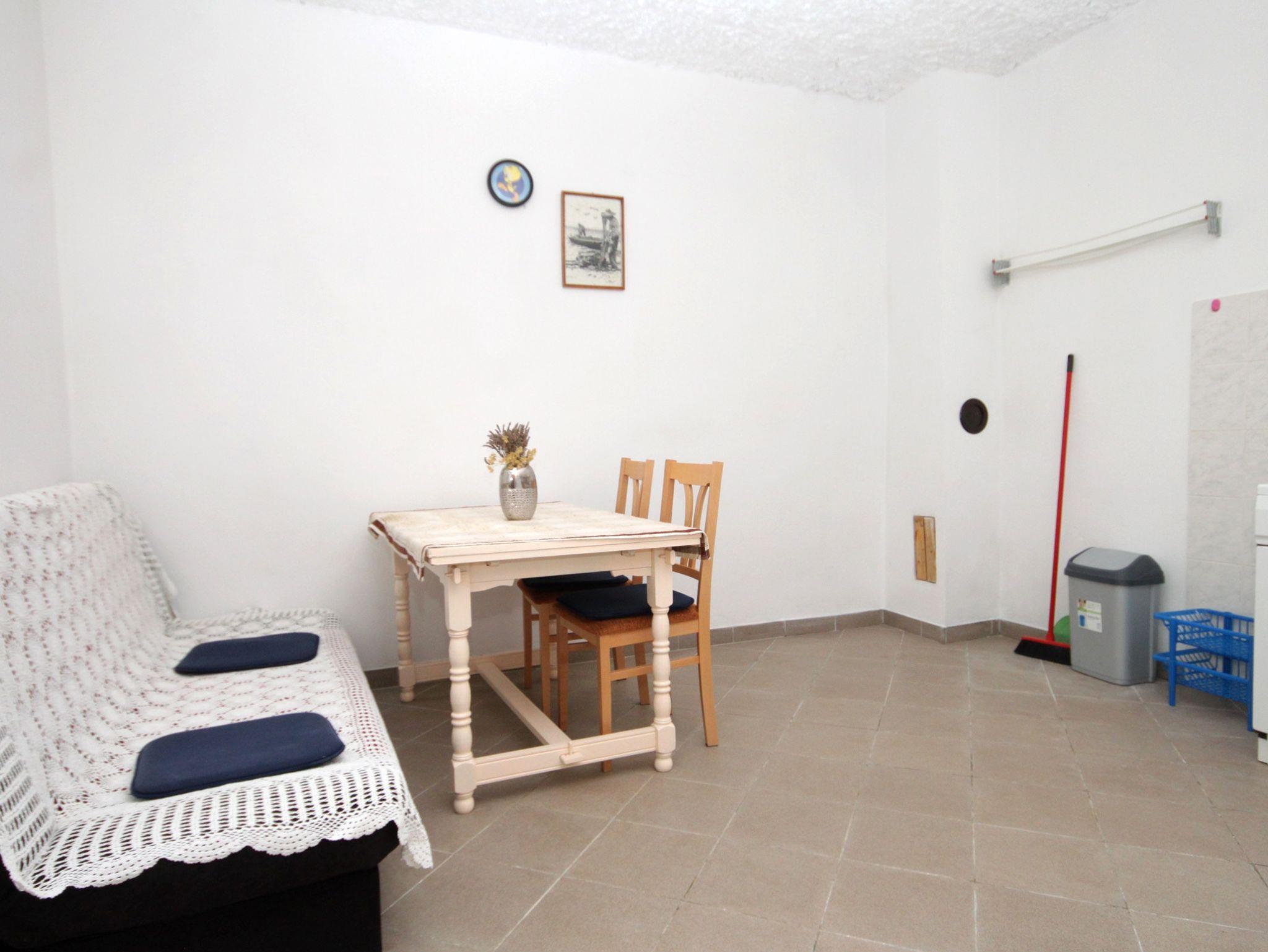 Ferienwohnung bietet Platz für 4 Gäste. Die Betten sind in Schlafzimmern, die es 1 gibt, innerhalb einer Gesamtfläche von 39m2, angeordnet. Die Gäste haben eine eigene Terrasse zur Verfügung, auf der sie in warmen Sommernächten genießen können. Das Apartment bietet Meerblick. Es ist erlaubt, Speisen auf dem Gemeinschafts-Grill vorzubereiten. Unterkunftseinheit hat Räume, die von dem Rest der Einheit abgetrennt werden. IM PREIS INBEGRIFFEN: Kurtaxe, Endreinigung, Parkplatz. VERBINDLICHE ZUSÄTZLICHE KOSTEN: Aufzahlung für Kurzaufenthalte (prozentualer Zuschlag pro Nächtigungsanzahl: 30% - 1, 20% - 2, 10% - 3). UNVERBINDLICHE ZUSÄTZLICHE KOSTEN: 2 Kinderbettchen (5,00 € Person/Tag). Die Verfügbarkeit zusätzlicher Dienstleistungen in Ihrem reservierten Termin und die Preise derselben (falls nicht aufgeführt) müssen im Voraus überprüft werden. Zusätzliche Dienstleistungen die in der Zahlungsaufforderung nicht aufgeführt sind werden direkt beim Vermieter bezahlt, angenommen der Gast nutzt auch diese. Ermäßigung auf den Grundpreis: Gratistag 28=25 (bei einem Aufenthalt von 28 oder mehr Tagen erhalten Sie 3 kostenlose Tage für den Aufenthalt bis 31.12.26).