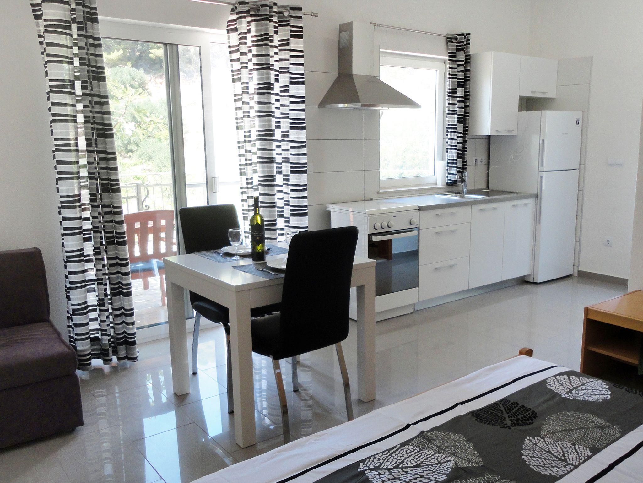Studio bietet Platz für 2 Gäste. Die Betten sind in Schlafzimmern, die es 1 gibt, innerhalb einer Gesamtfläche von 24m2, angeordnet. Die Gäste haben eine eigene Terrasse zur Verfügung, auf der sie in warmen Sommernächten genießen können. Das Studio-Apartment bietet Meerblick. Es ist erlaubt, Speisen auf dem Gemeinschafts-Grill vorzubereiten. IM PREIS INBEGRIFFEN: Kurtaxe, Endreinigung, Parkplatz, Internet, Kinderbett, tragbarer Grill, 1 Bett für Kinder (im Preis enthalten). Die Verfügbarkeit zusätzlicher Dienstleistungen in Ihrem reservierten Termin und die Preise derselben (falls nicht aufgeführt) müssen im Voraus überprüft werden. Zusätzliche Dienstleistungen die in der Zahlungsaufforderung nicht aufgeführt sind werden direkt beim Vermieter bezahlt, angenommen der Gast nutzt auch diese.