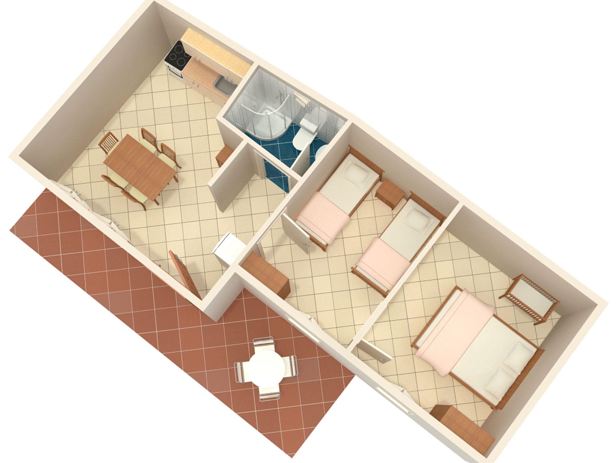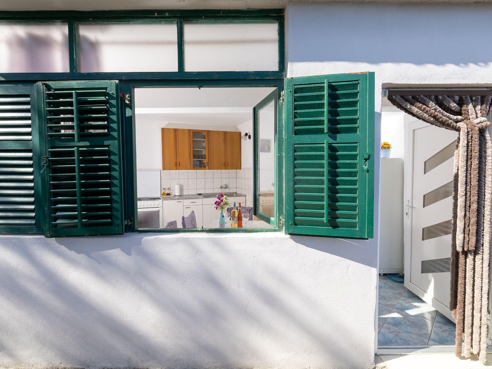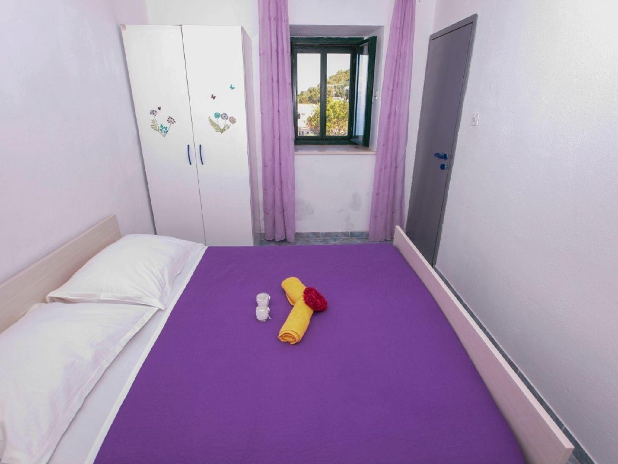 Ferienwohnung bietet Platz für 5 Gäste. Die Betten sind in Schlafzimmern, die es 2 gibt, und in Esszimmer, innerhalb einer Gesamtfläche von 37m2, angeordnet. Die Gäste haben eine eigene Terrasse zur Verfügung, auf der sie in warmen Sommernächten genießen können. Das Apartment bietet Meerblick. Es ist erlaubt, Speisen auf dem Gemeinschafts-Grill vorzubereiten. Durch das Schlafzimmer der gebuchten Unterkunftseinheit geht man in die andere Räume der Einheit. IM PREIS INBEGRIFFEN: Kurtaxe, Endreinigung, Parkplatz, Internet, Bootsanlegeplatz, Kinderbett. VERBINDLICHE ZUSÄTZLICHE KOSTEN: Aufzahlung für Kurzaufenthalte (prozentualer Zuschlag pro Nächtigungsanzahl: 30% - 1, 20% - 2, 10% - 3). Die Verfügbarkeit zusätzlicher Dienstleistungen in Ihrem reservierten Termin und die Preise derselben (falls nicht aufgeführt) müssen im Voraus überprüft werden. Zusätzliche Dienstleistungen die in der Zahlungsaufforderung nicht aufgeführt sind werden direkt beim Vermieter bezahlt, angenommen der Gast nutzt auch diese.