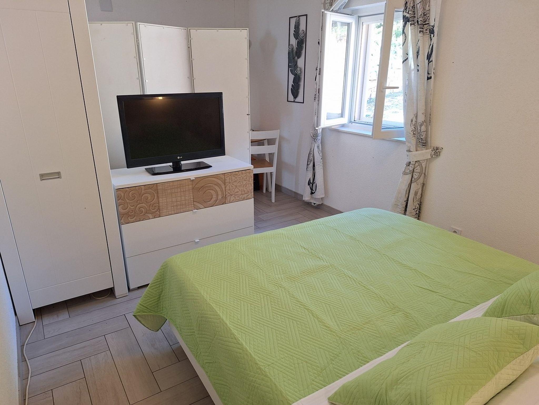 Haus bietet Platz für 4 Gäste. Die Betten sind in Schlafzimmern, die es 2 gibt, innerhalb einer Gesamtfläche von 61m2, angeordnet. Die Gäste haben eine eigene Terrasse zur Verfügung, auf der sie in warmen Sommernächten genießen können. Das Haus bietet Meerblick. Es ist erlaubt, Speisen auf dem Gemeinschafts-Grill vorzubereiten. Räume der gebuchten Unterkunftseinheit werden nicht in eine Ganze verbunden. IM PREIS INBEGRIFFEN: Kurtaxe, Endreinigung, Parkplatz, Internet, Bootsanlegeplatz, Zusatzbett, Föhn, tragbarer Grill. Die Verfügbarkeit zusätzlicher Dienstleistungen in Ihrem reservierten Termin und die Preise derselben (falls nicht aufgeführt) müssen im Voraus überprüft werden. Zusätzliche Dienstleistungen die in der Zahlungsaufforderung nicht aufgeführt sind werden direkt beim Vermieter bezahlt, angenommen der Gast nutzt auch diese.