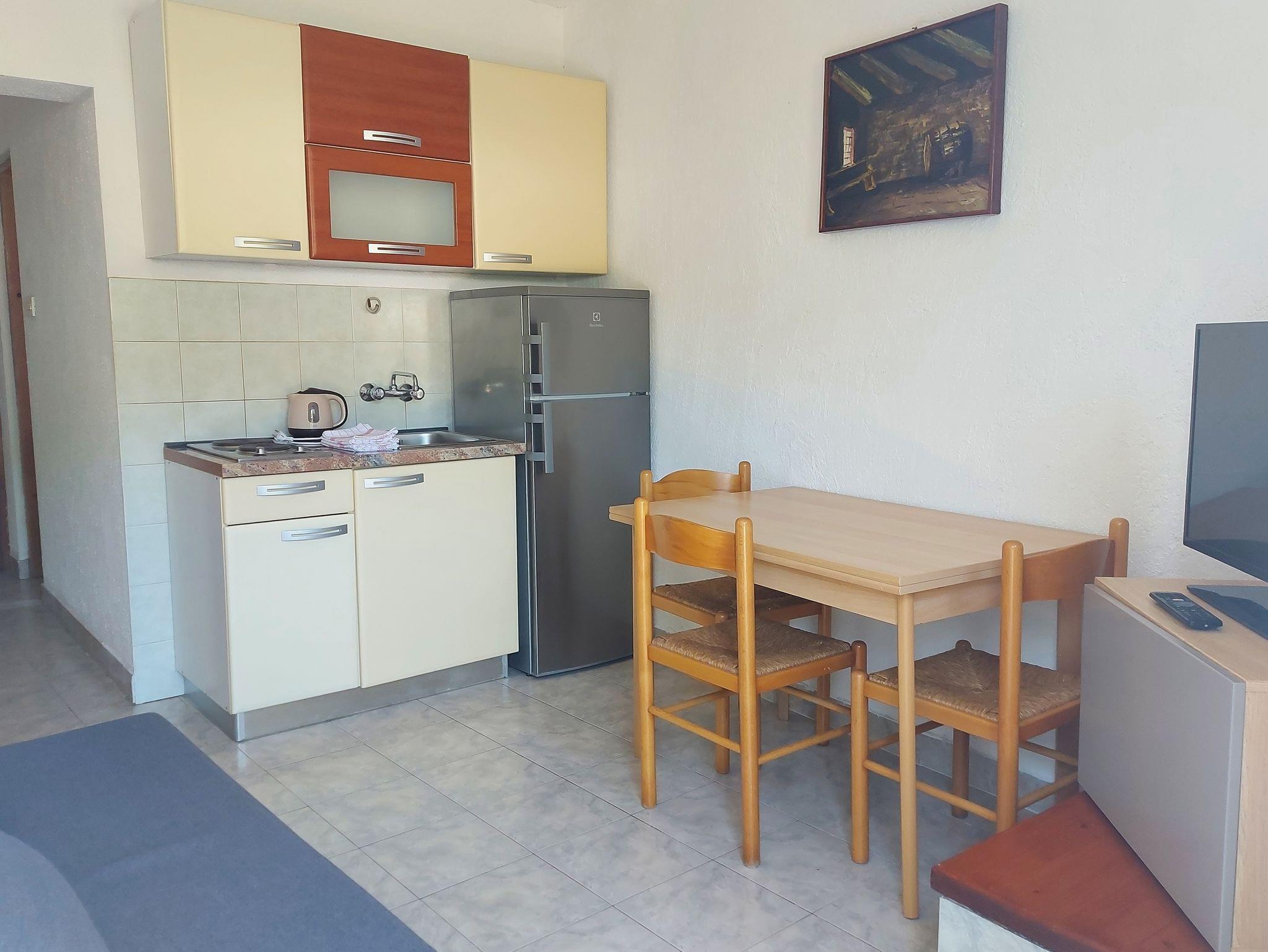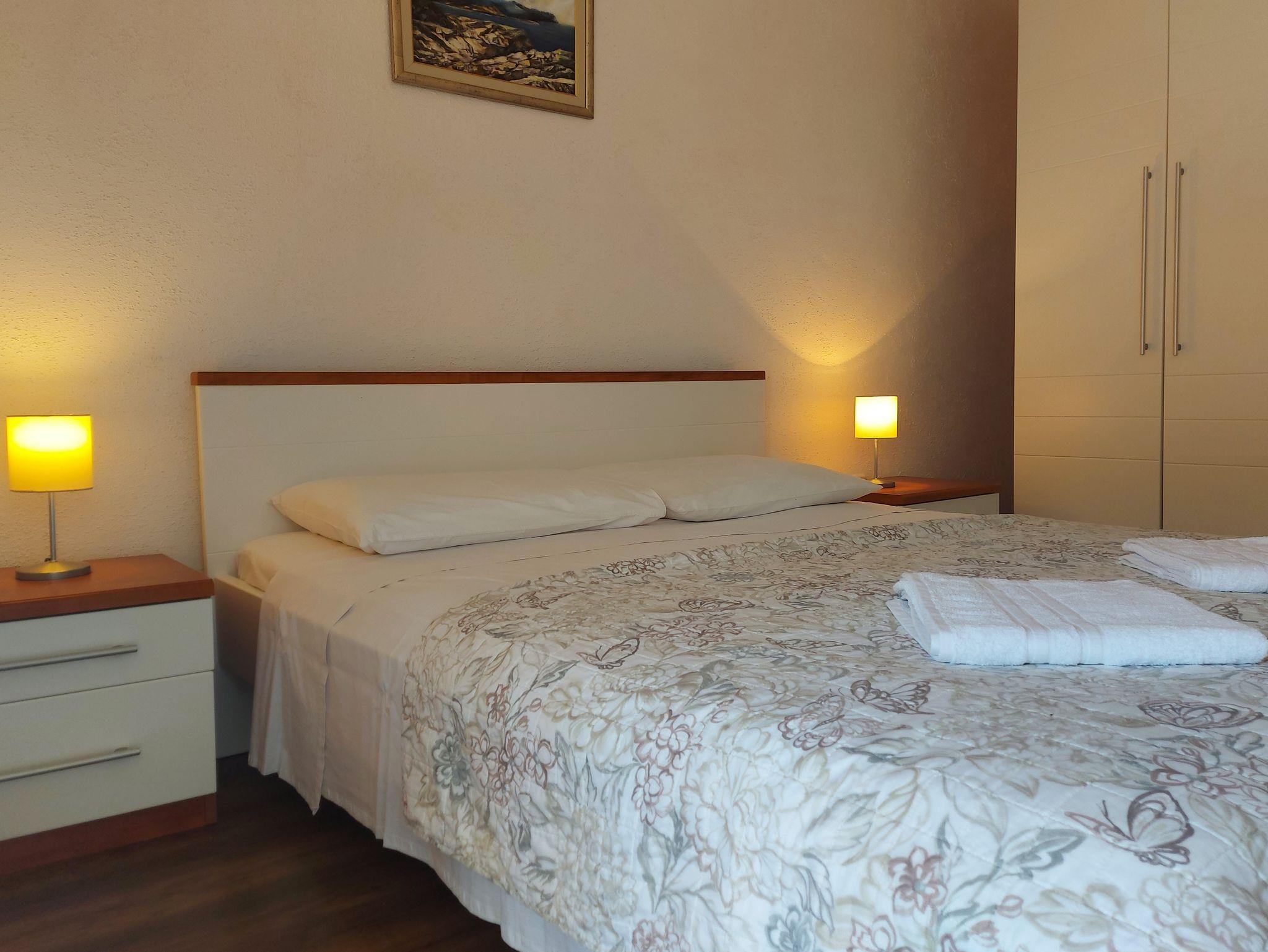 Ferienwohnung bietet Platz für 3 Gäste. Die Betten sind in Schlafzimmern, die es 1 gibt, und in Wohnzimmer, innerhalb einer Gesamtfläche von 32m2, angeordnet. Die Gäste haben eine eigene Terrasse zur Verfügung, auf der sie in warmen Sommernächten genießen können. Das Apartment bietet Meerblick. Es ist erlaubt, Speisen auf dem Gemeinschafts-Grill vorzubereiten. IM PREIS INBEGRIFFEN: Kurtaxe, Endreinigung, Klimatisierung, Parkplatz, Internet, Bootsanlegeplatz. Die Verfügbarkeit zusätzlicher Dienstleistungen in Ihrem reservierten Termin und die Preise derselben (falls nicht aufgeführt) müssen im Voraus überprüft werden. Zusätzliche Dienstleistungen die in der Zahlungsaufforderung nicht aufgeführt sind werden direkt beim Vermieter bezahlt, angenommen der Gast nutzt auch diese.