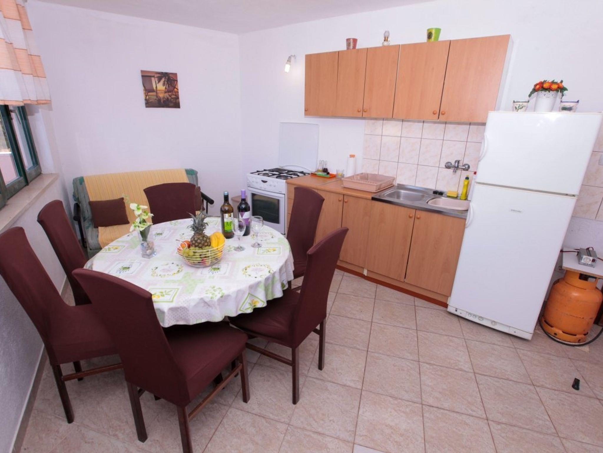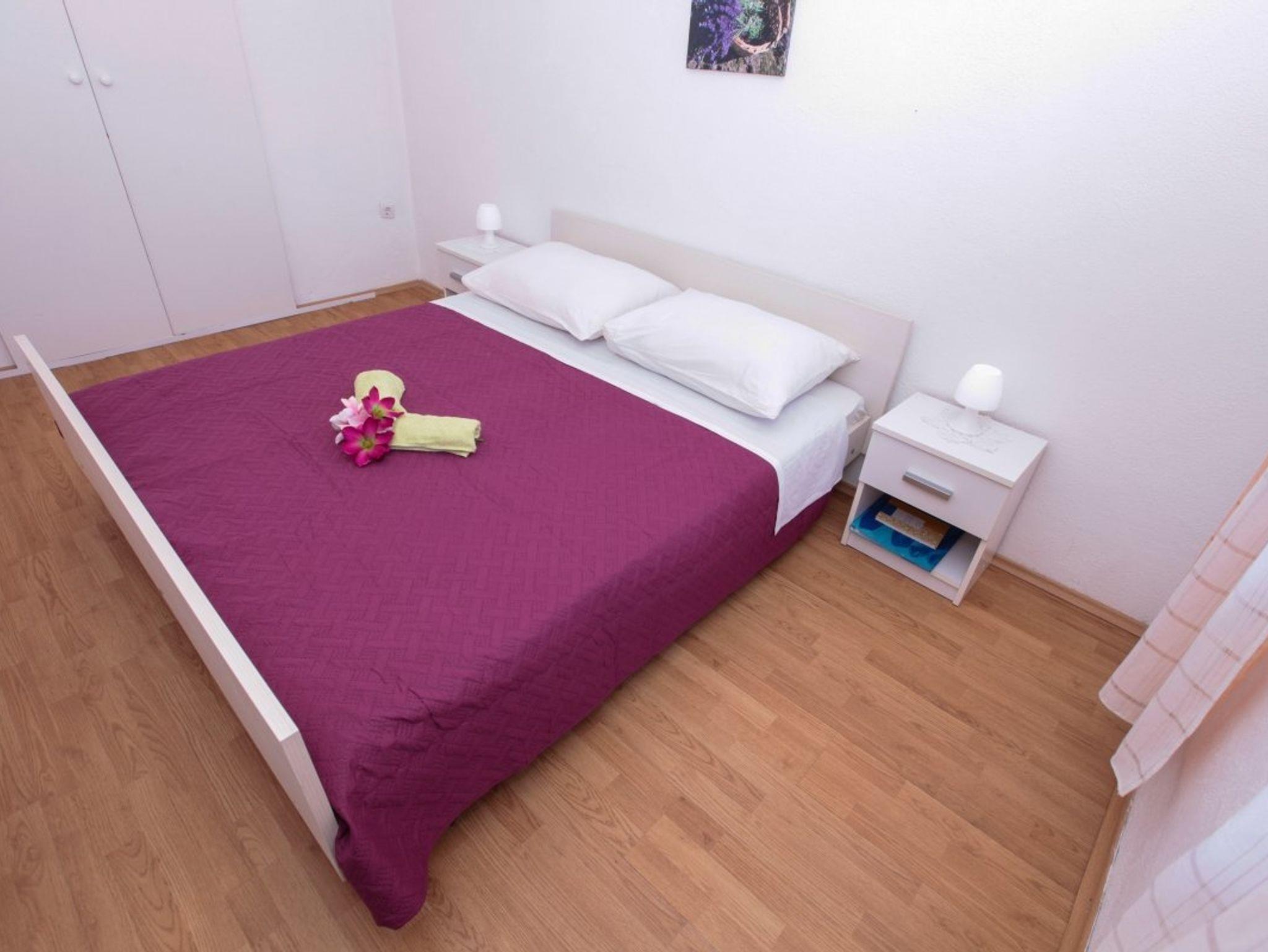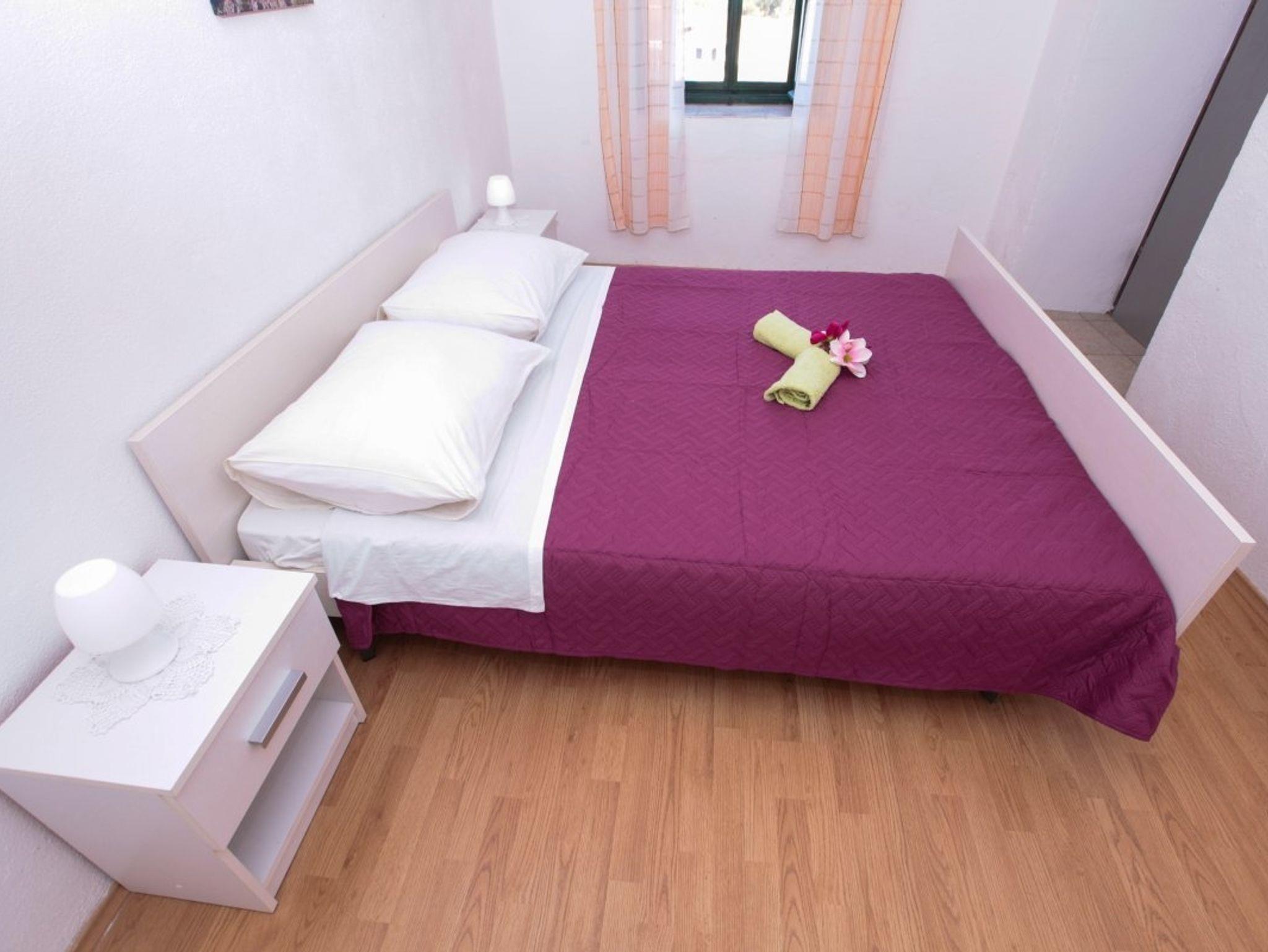 Ferienwohnung bietet Platz für 5 Gäste. Die Betten sind in Schlafzimmern, die es 2 gibt, und in Esszimmer, innerhalb einer Gesamtfläche von 33m2, angeordnet. Die Gäste haben einen eigenen Balkon zur Verfügung, auf der sie in warmen Sommernächten genießen können. Das Apartment bietet Meerblick. Es ist erlaubt, Speisen auf dem Gemeinschafts-Grill vorzubereiten. IM PREIS INBEGRIFFEN: Kurtaxe, Endreinigung, Parkplatz, Internet, Bootsanlegeplatz, Kinderbett. VERBINDLICHE ZUSÄTZLICHE KOSTEN: Aufzahlung für Kurzaufenthalte (prozentualer Zuschlag pro Nächtigungsanzahl: 30% - 1, 20% - 2, 10% - 3). Die Verfügbarkeit zusätzlicher Dienstleistungen in Ihrem reservierten Termin und die Preise derselben (falls nicht aufgeführt) müssen im Voraus überprüft werden. Zusätzliche Dienstleistungen die in der Zahlungsaufforderung nicht aufgeführt sind werden direkt beim Vermieter bezahlt, angenommen der Gast nutzt auch diese.