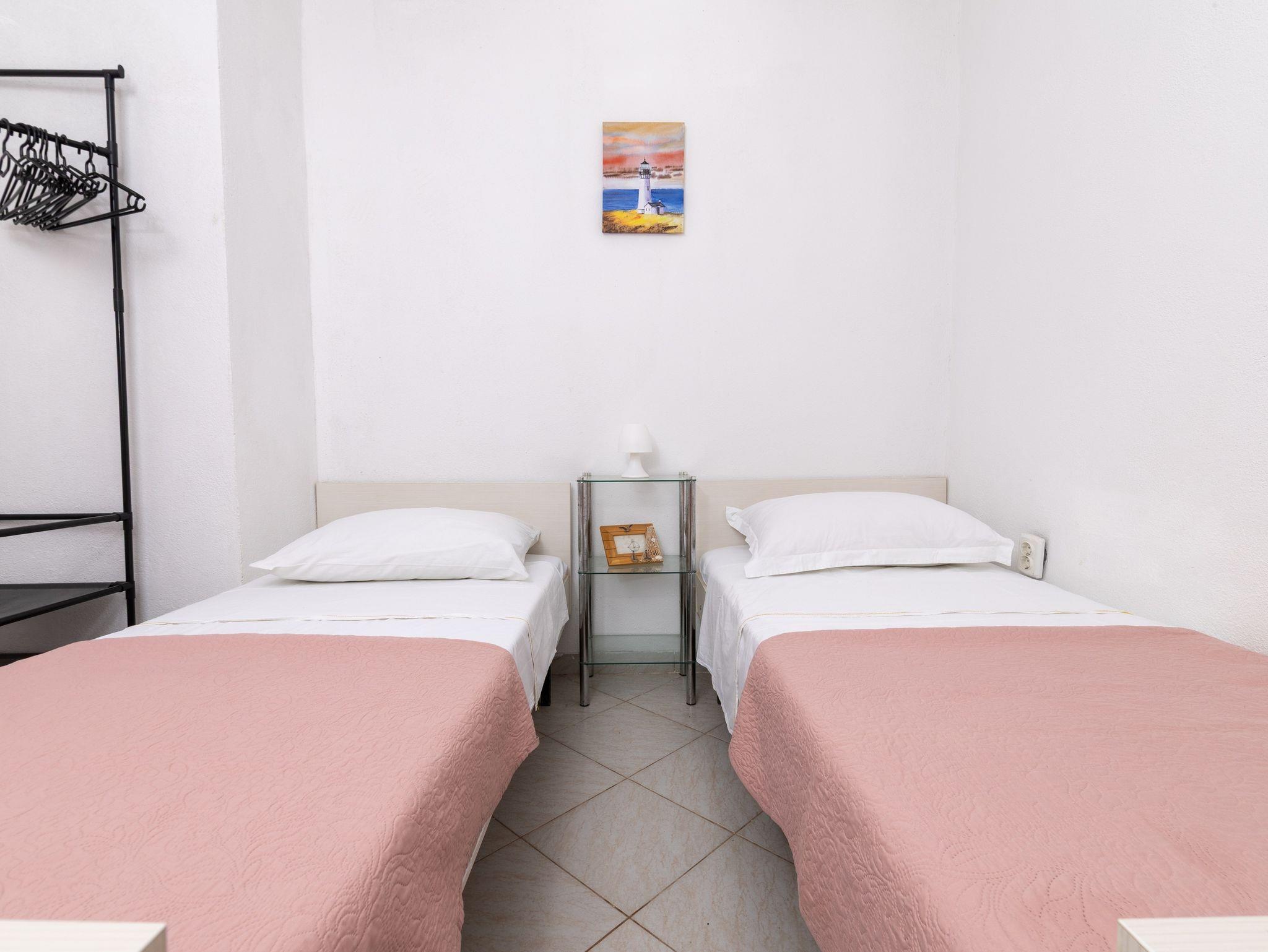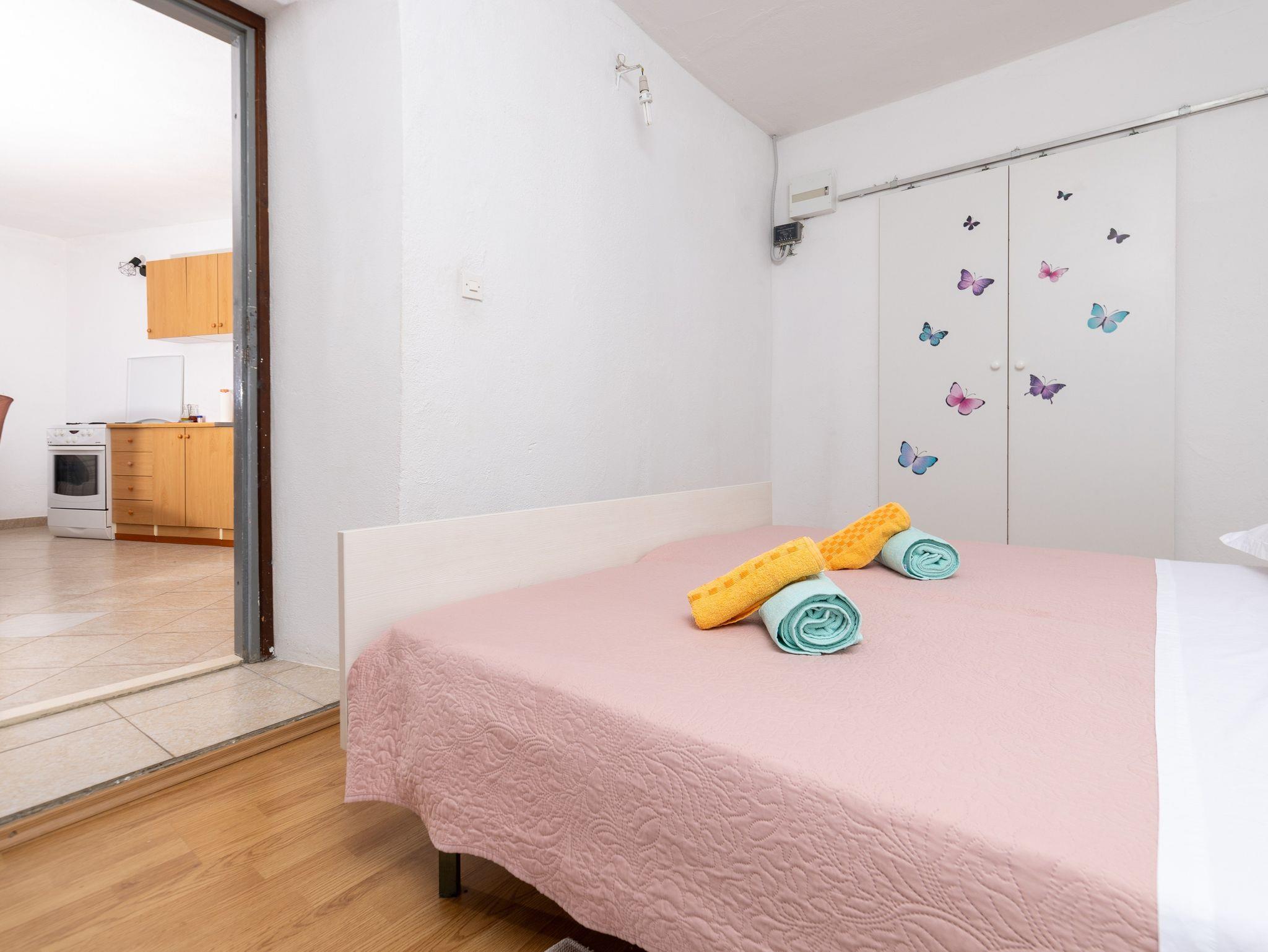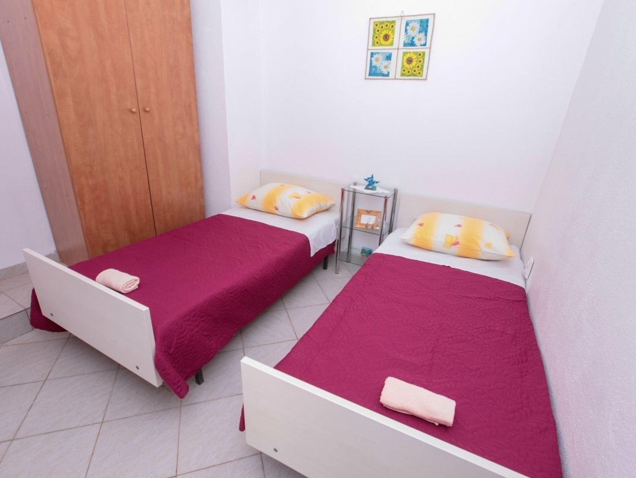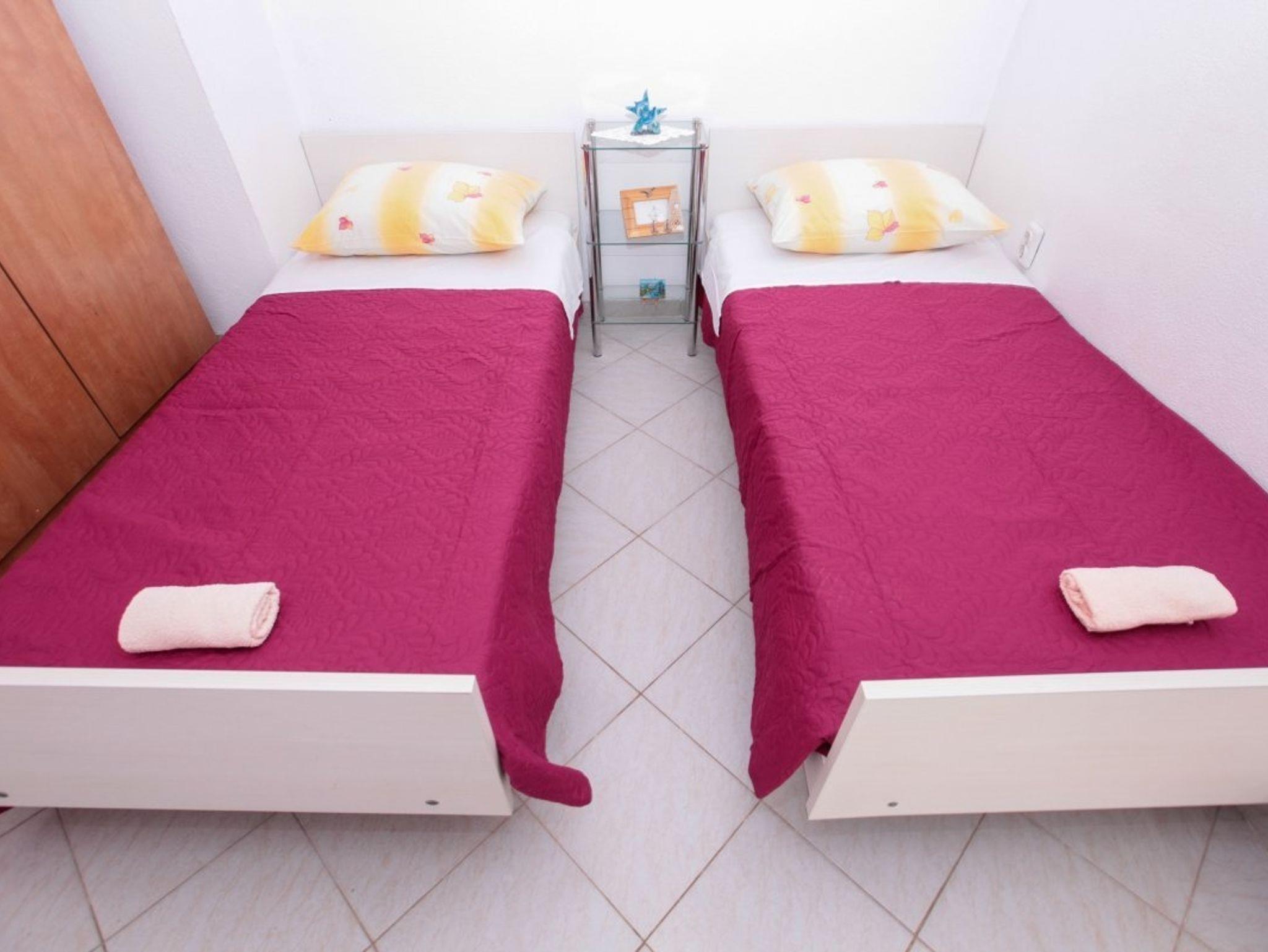 Ferienwohnung bietet Platz für 5 Gäste. Die Betten sind in Schlafzimmern, die es 2 gibt, und in Esszimmer, innerhalb einer Gesamtfläche von 33m2, angeordnet. Die Gäste haben einen eigenen Balkon zur Verfügung, auf der sie in warmen Sommernächten genießen können. Das Apartment bietet Meerblick. Es ist erlaubt, Speisen auf dem Gemeinschafts-Grill vorzubereiten. IM PREIS INBEGRIFFEN: Kurtaxe, Endreinigung, Parkplatz, Internet, Bootsanlegeplatz, Kinderbett. VERBINDLICHE ZUSÄTZLICHE KOSTEN: Aufzahlung für Kurzaufenthalte (prozentualer Zuschlag pro Nächtigungsanzahl: 30% - 1, 20% - 2, 10% - 3). Die Verfügbarkeit zusätzlicher Dienstleistungen in Ihrem reservierten Termin und die Preise derselben (falls nicht aufgeführt) müssen im Voraus überprüft werden. Zusätzliche Dienstleistungen die in der Zahlungsaufforderung nicht aufgeführt sind werden direkt beim Vermieter bezahlt, angenommen der Gast nutzt auch diese.