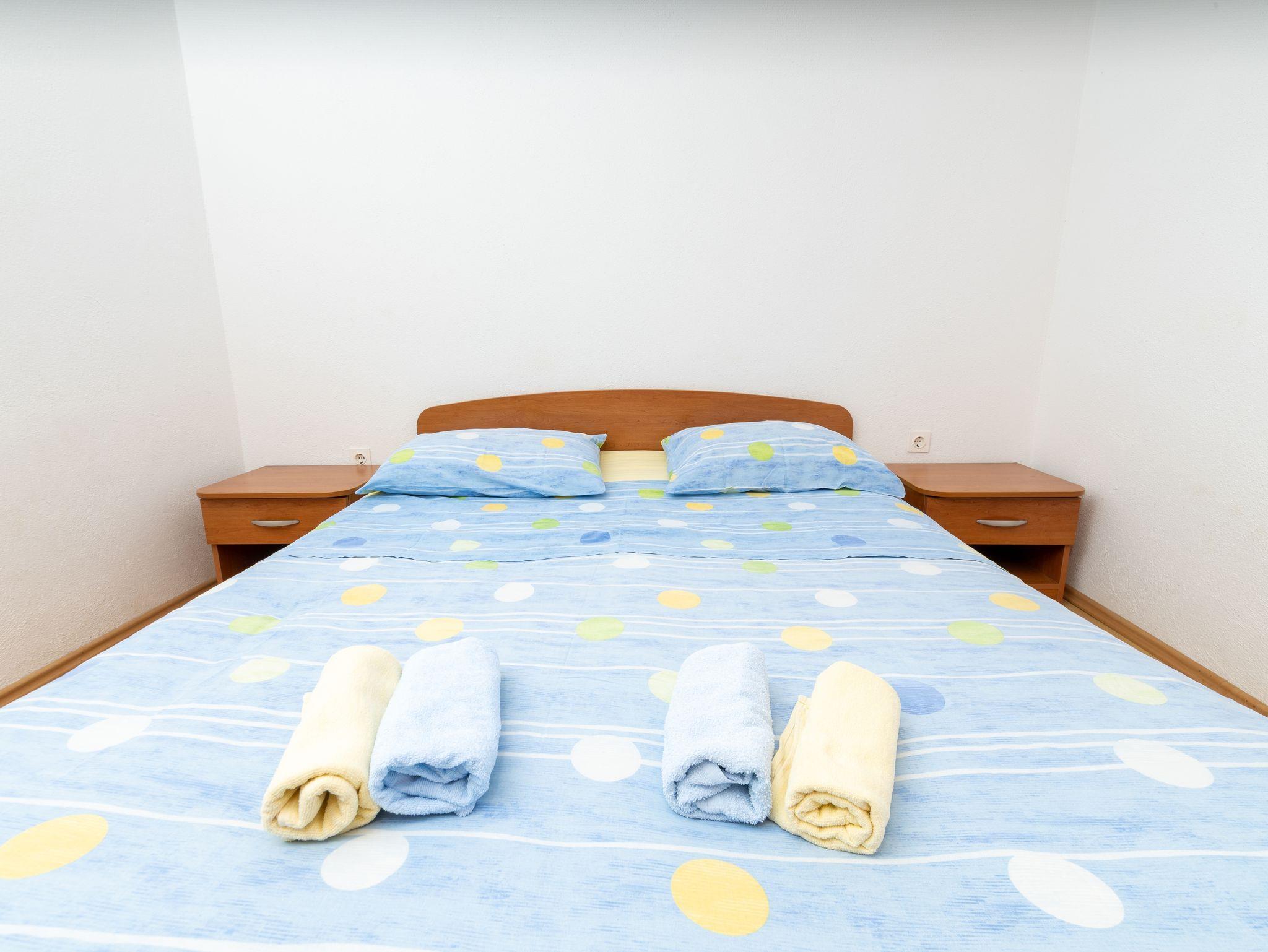 Ferienwohnung bietet Platz für 5 Gäste. Die Betten sind in Schlafzimmern, die es 3 gibt, innerhalb einer Gesamtfläche von 42m2, angeordnet. Die Gäste haben eine eigene Terrasse zur Verfügung, auf der sie in warmen Sommernächten genießen können. IM PREIS INBEGRIFFEN: Kurtaxe, Endreinigung, Parkplatz, Internet, Bootsanlegeplatz. Die Verfügbarkeit zusätzlicher Dienstleistungen in Ihrem reservierten Termin und die Preise derselben (falls nicht aufgeführt) müssen im Voraus überprüft werden. Zusätzliche Dienstleistungen die in der Zahlungsaufforderung nicht aufgeführt sind werden direkt beim Vermieter bezahlt, angenommen der Gast nutzt auch diese. Ermäßigung auf den Grundpreis: Gratistag 14=13 (bei einem Aufenthalt von 14 Tagen oder mehr erhalten Sie einen Gratistag für den Aufenthalt bis 31.12.26).