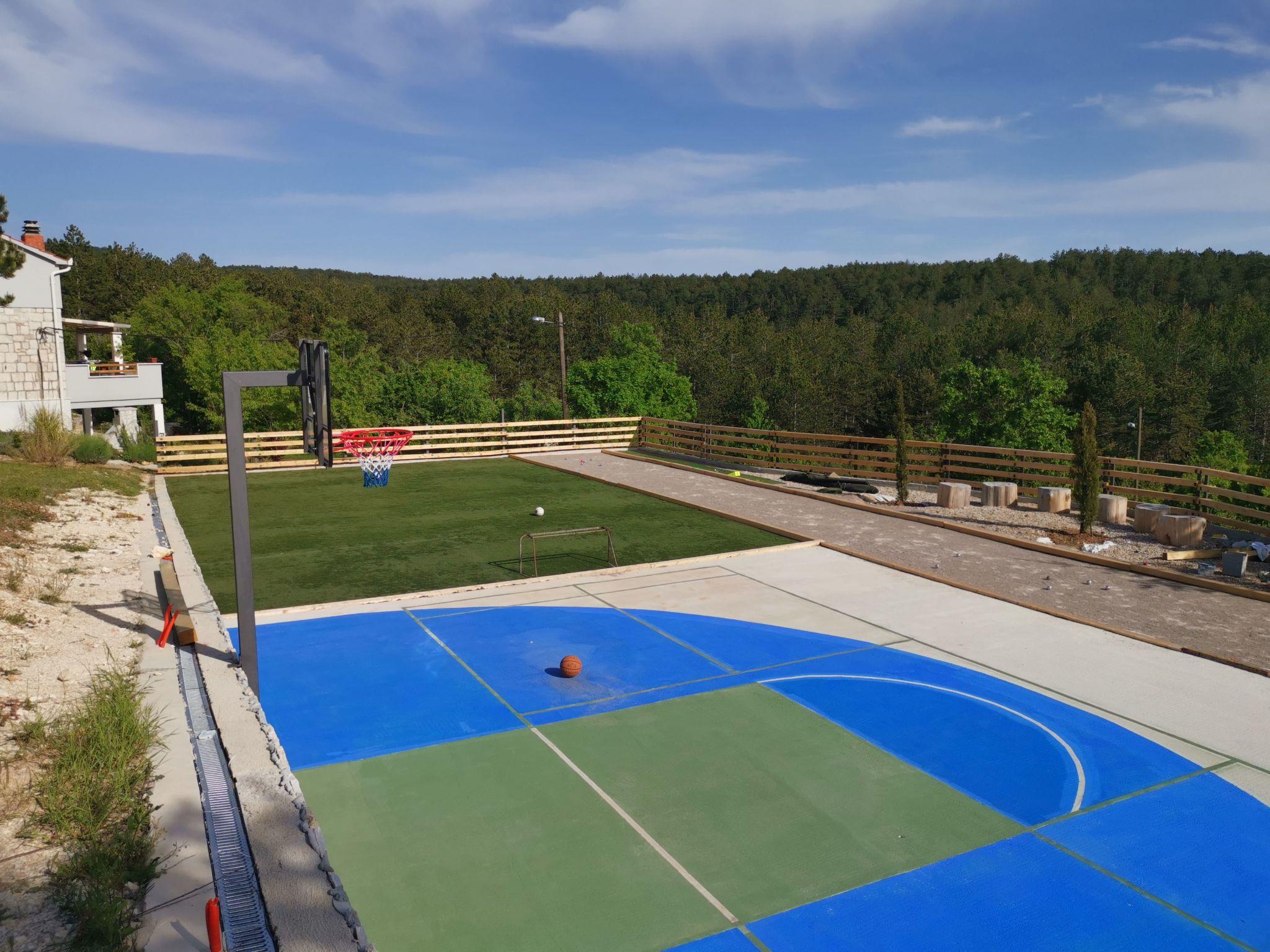 Beautiful heritage , stone built and luxury decorated Villa HEAVEN No.2 is placed in village Muc Donji, near Split, in beautiful pine forest environment. Remote and isolated Villa is placed in very private area. Villa has 240m2, with fully equipped kitchen, 5 bedrooms, 3 bathrooms, 2 living rooms ( 75m2 + 20m2 ) and balcony. Plot around Villa has 3000 m2. In center part of plot there is a large heated swimming pool ( 10m x 4.3 m) that is offering swimming in +25 Celsius heated water temperature, from early April till late October. Pool is surrounded by large sun terrace with deck chairs and also by 2 large outdoor terraces with bar and garden furniture. Both terraces offer beautiful view on pool and mountain view . Villa has its private sports terrain on 550 m2, composed of : basketball court 140 m2, football court on 160 m2, bocce court, badminton & volley ball court plus small mini golf course . Also, there is separate playground for small children, placed in beautiful flower garden with lots of trees ,that is surrounding Villa . Villa is just outside of a village , mind and body relaxing with lots of privacy for our guests and lots of outdoor activities on site. 6 mountain bikes in Villa are free for use on more than 65 km of superb mountain bike/quad forest routes that are placed just next to Villa. Walks in forest are daily routine for our guests, mind and body relaxing in hot Summer days because of freshness that pine forest is offering. Place is just 30 min drive to Split and local beach. We offer our local food and vine for our guests.