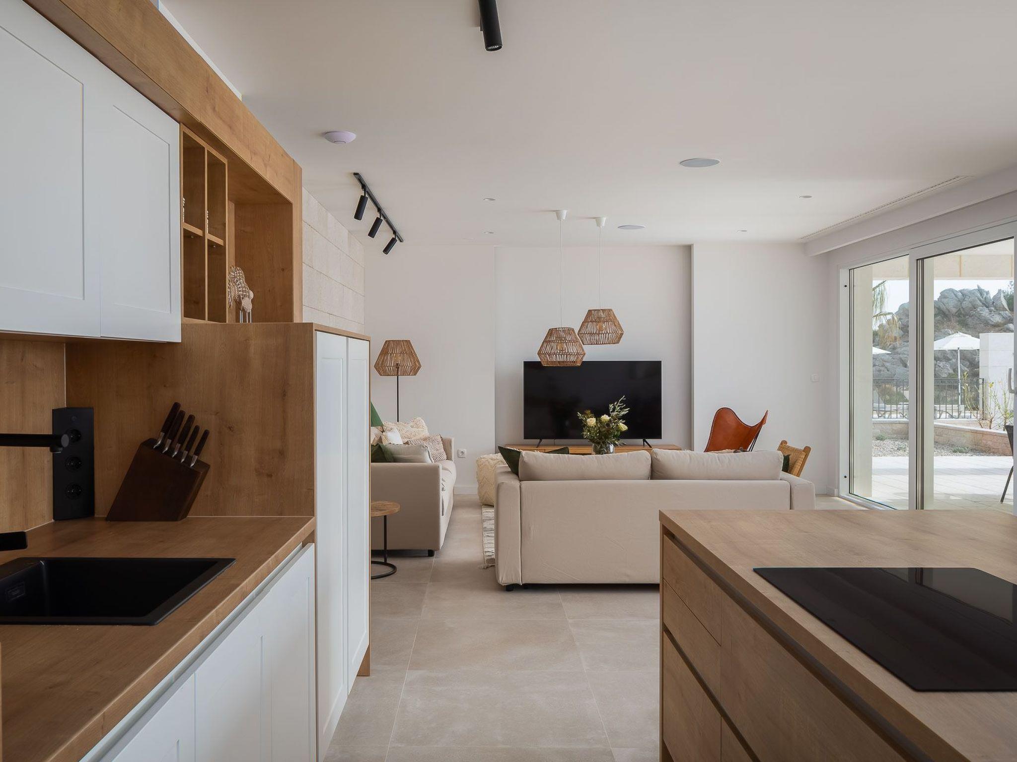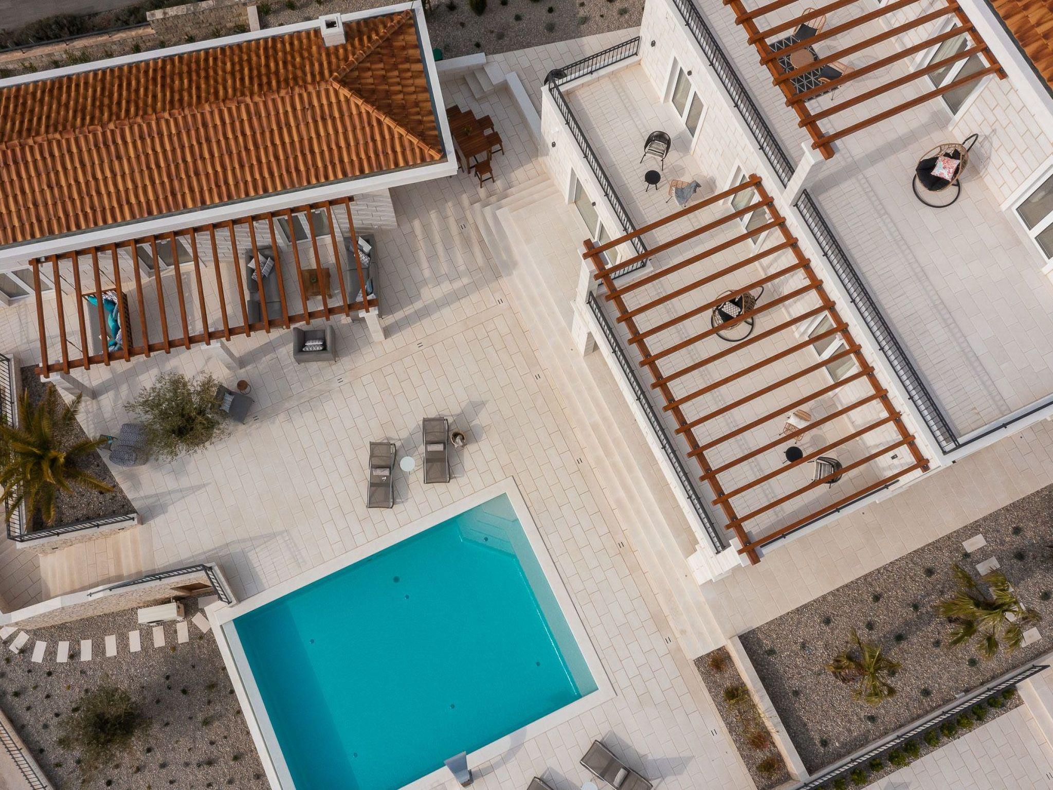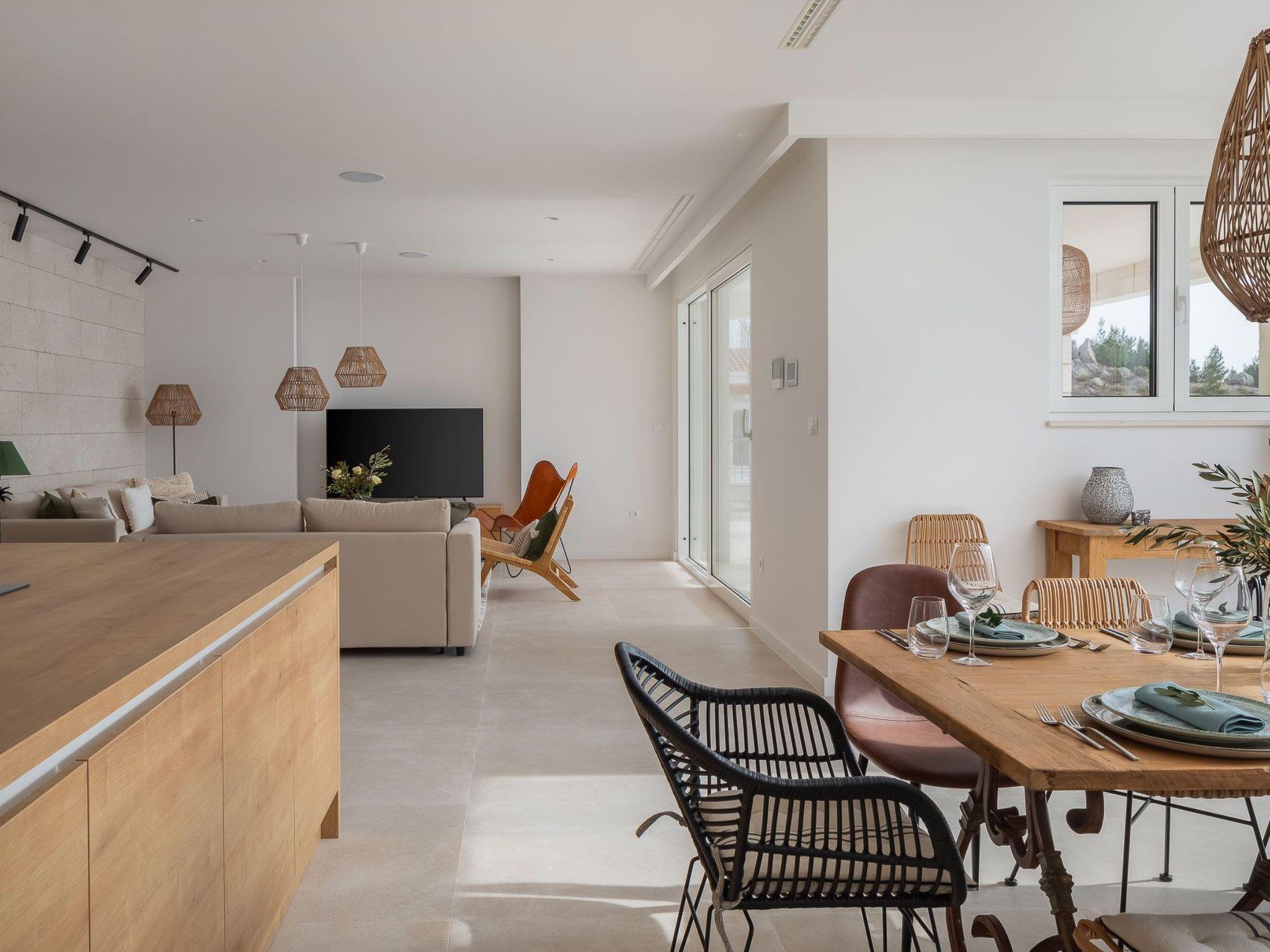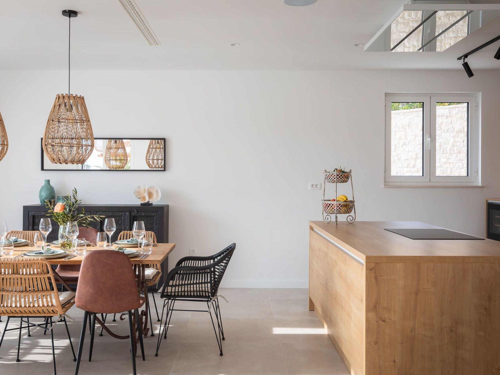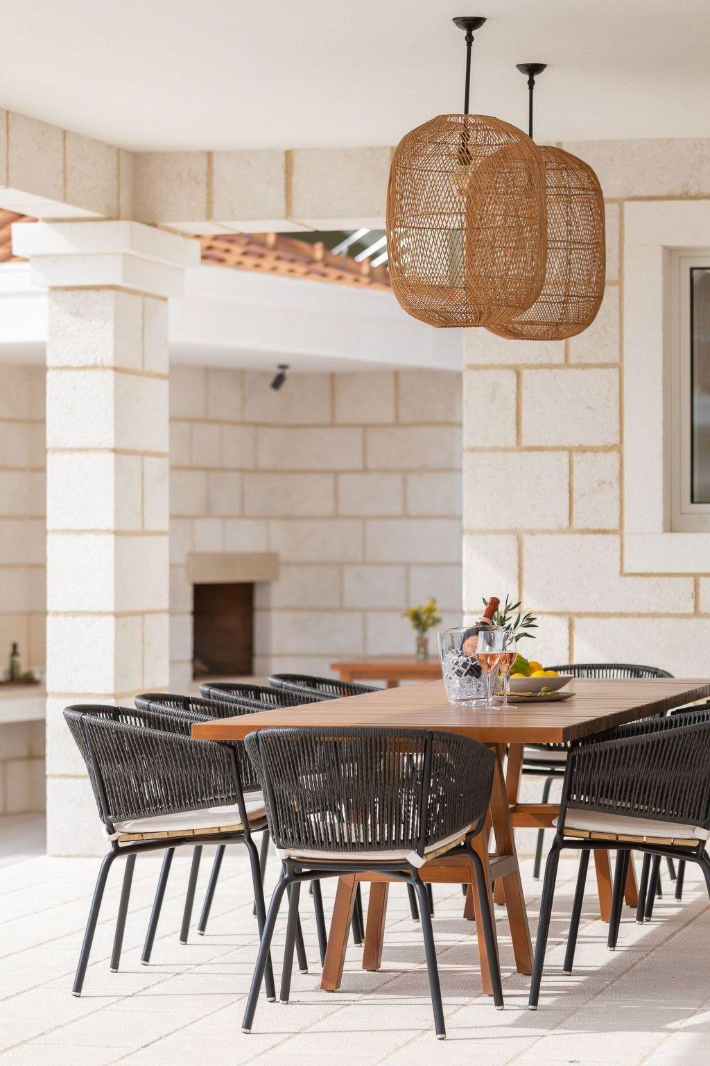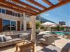The area surrounding the villa is fully fenced, ensuring complete privacy for up to 14 guests, so if you have a large family, this villa is the perfect choice for you. There are 6 bedrooms in the villa, each with an en-suite bathroom, air conditioning, and a TV, as well as a baby cot. A fully equipped kitchen and a spacious living room are also available for use after lunch. In the pool house next to the villa you have a bedroom, living room and kitchen.