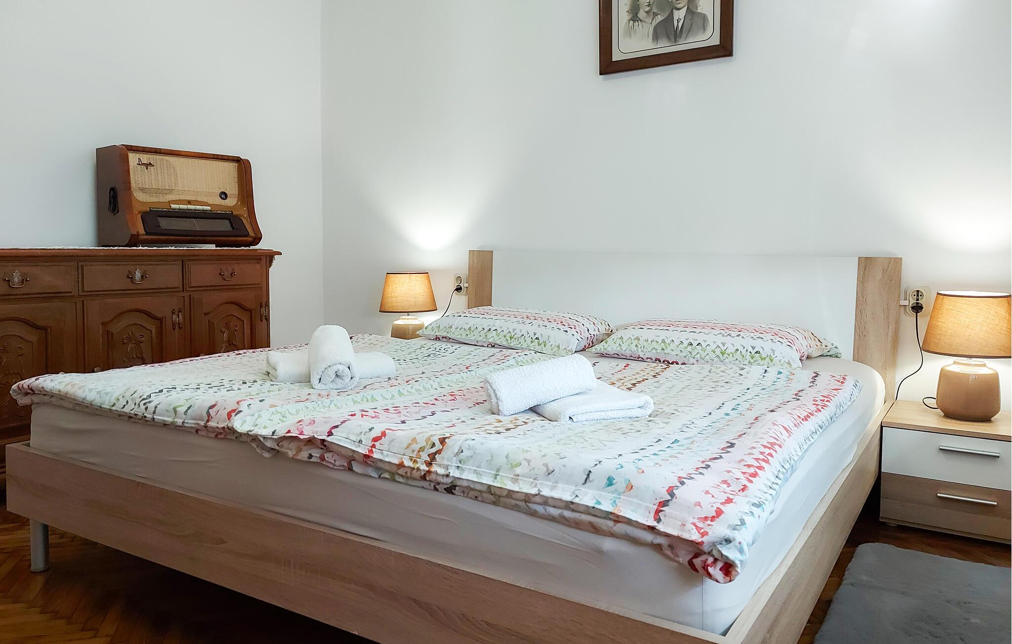 Denne velholdte og rummelige lejlighed ligger i gåafstand fra restauranter og butikker og er perfekt til en varieret familieferie tæt på attraktive destinationer. Tilbered lækre retter, planlæg jeres udflugter til afslappende måltider, og stream en film, som alle vil nyde efter en lang dag.