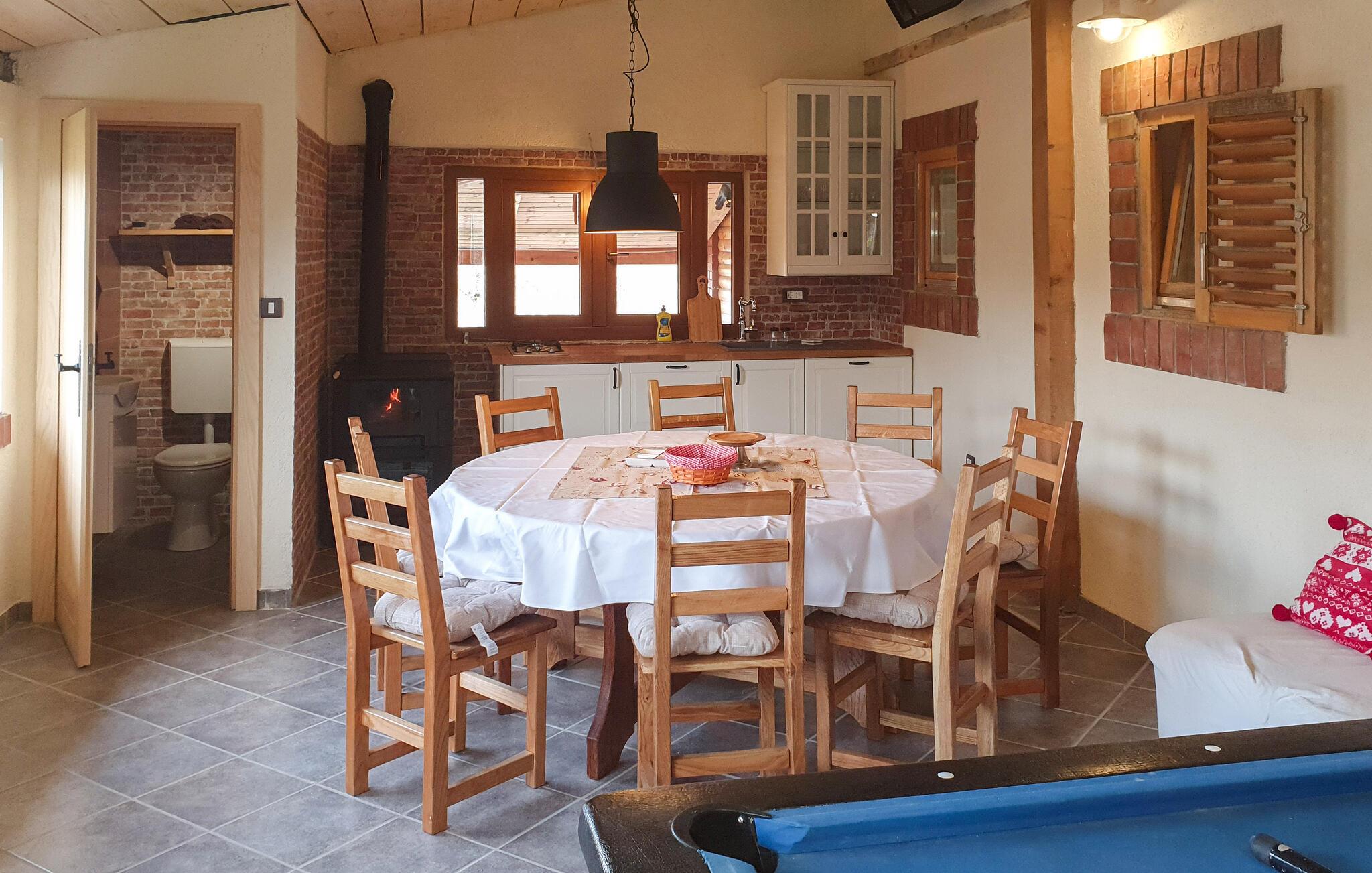 Beliggende tæt på en duftende skov forkæler dette feriehus jer med et rummeligt og hyggeligt interiør, hvor afslapning er i højsædet. Nyd hyggelige måltider, spil billard, mens pejsen knitrer sagte i baggrunden, forkæl jer selv med afslappende øjeblikke i saunaen eller spabadet og find sammen i den behagelige sofa til en fængslende tv-serie.