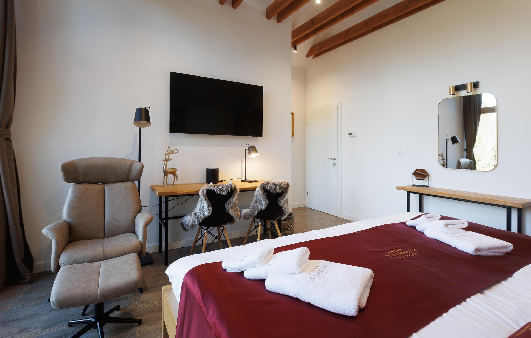 Forkæl jer selv med en drømmeferie i dette luksuriøse feriehus med pool, spabad og sauna, og nyd adskillige ekstrafunktioner.